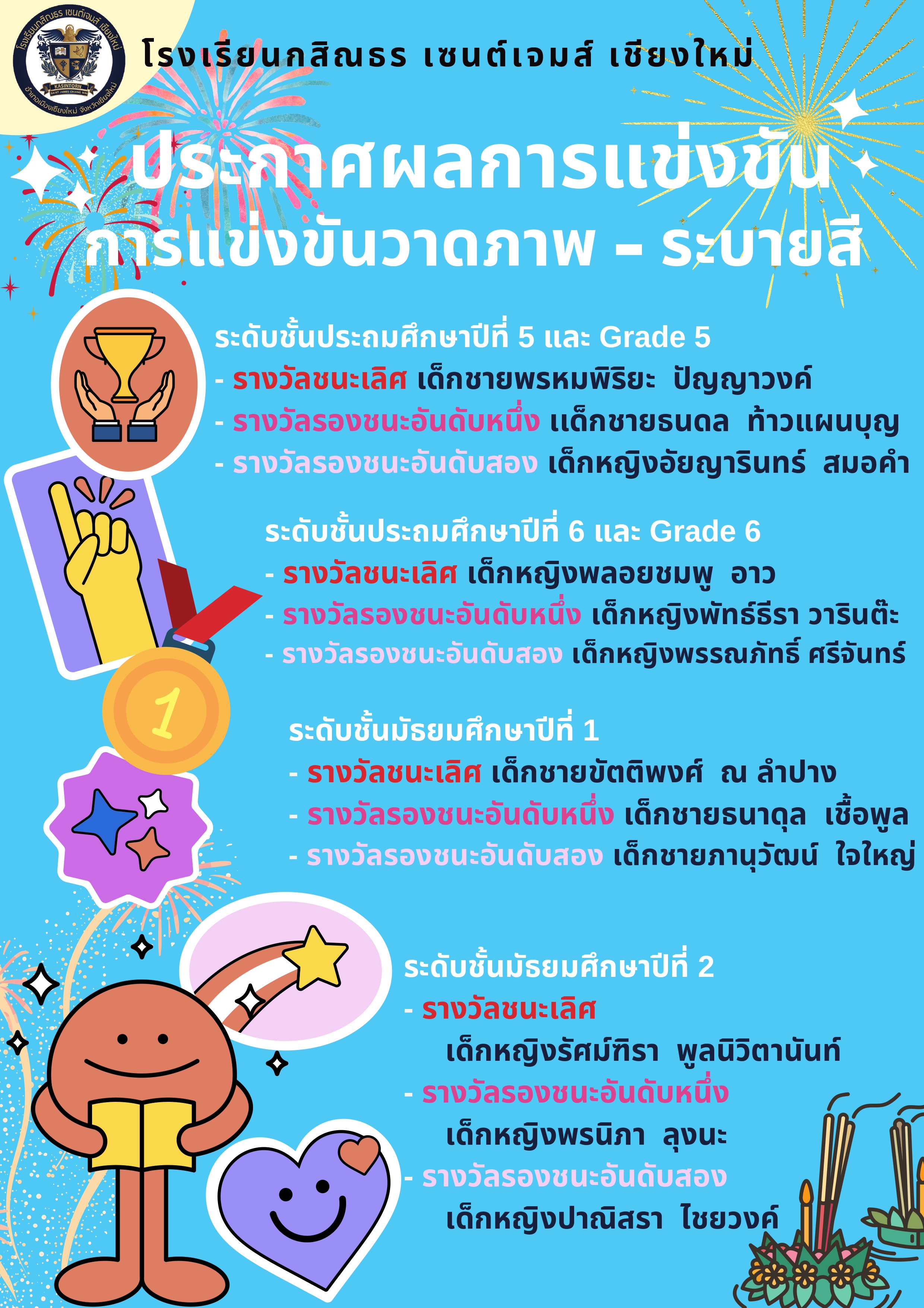 ประกาศผลการแข่งขันวาดภาพ ระบายสี เนื่องในเทศกาลวันลอยกระทง กิจกรรมสืบสานป๋าเพณียี่เป็ง