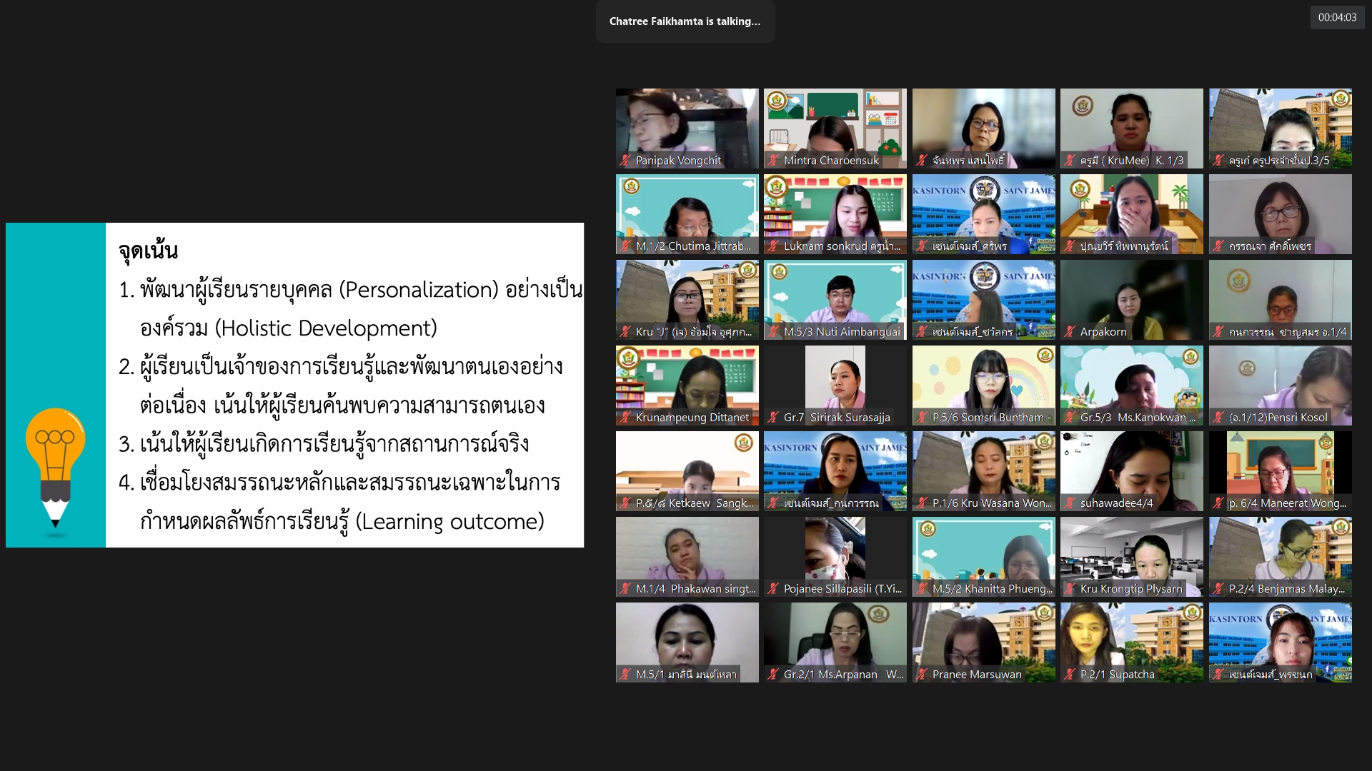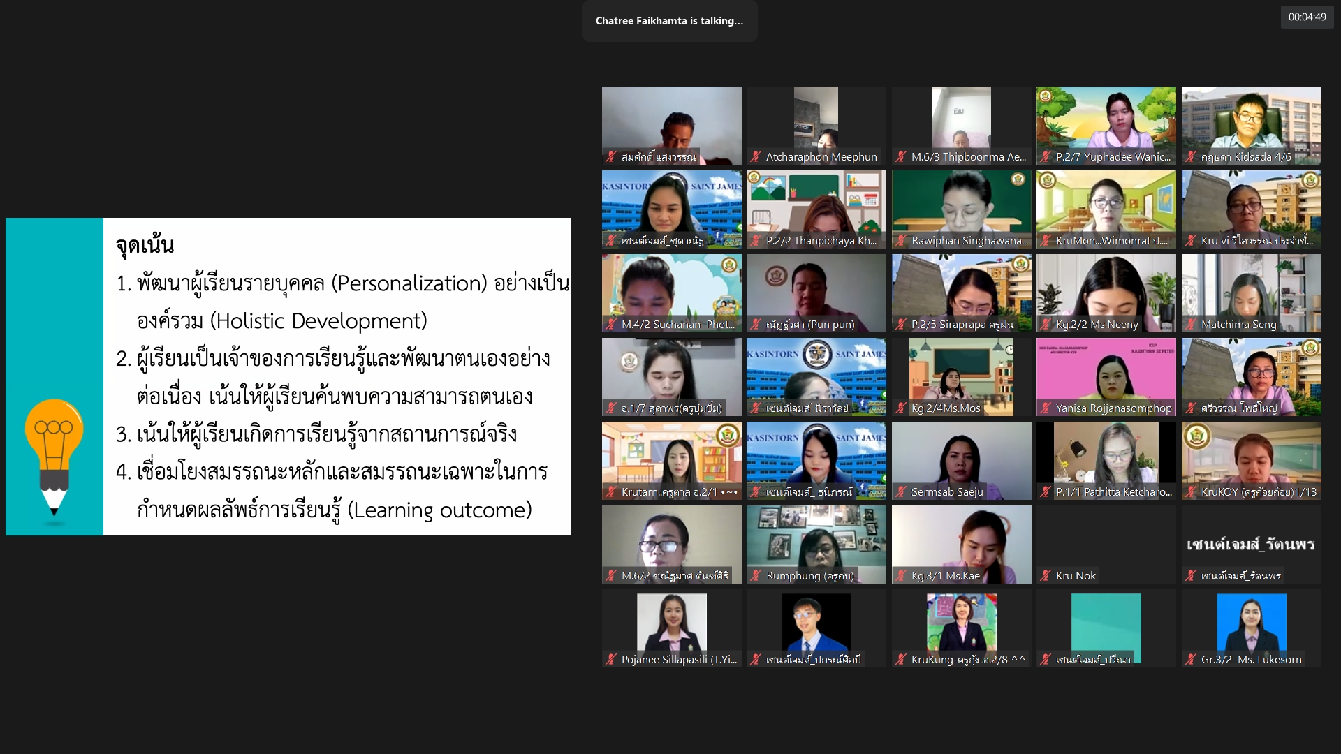 โรงเรียนกสิณธร เซนต์เจมส์ เชียงใหม่ ได้จัดการอบรมครูและบุคลากร ในเรื่อง การสร้างความเข้าใจและเตรียมความพร้อมครู สู่หลักสูตรฐานสมรรถนะ ด้วยการจัดการเรียนรู้ฐานสมรรถนะ ร่วมกับโรงเรียนกสิณธรเซนต์ปีเตอร์ เพื่อเพิ่มศักยภาพการจัดการเรียนการสอน โดยเน้นการพัฒนาสมรรถนะของผู้เรียน โดย วิทยากร รศ.ดร.ชาตรี ฝ่ายคำตา อาจารย์ประจำสาขาวิชาวิทยาศาสตร์ศึกษา ภาควิชาการศึกษา คณะศึกษาศาสตร์ มหาวิทยาลัยเกษตรศาสตร์ และบริษัท อักษรเจริญทัศน์ ในวันเสาร์ที่ 18 ธันวาคม 2564