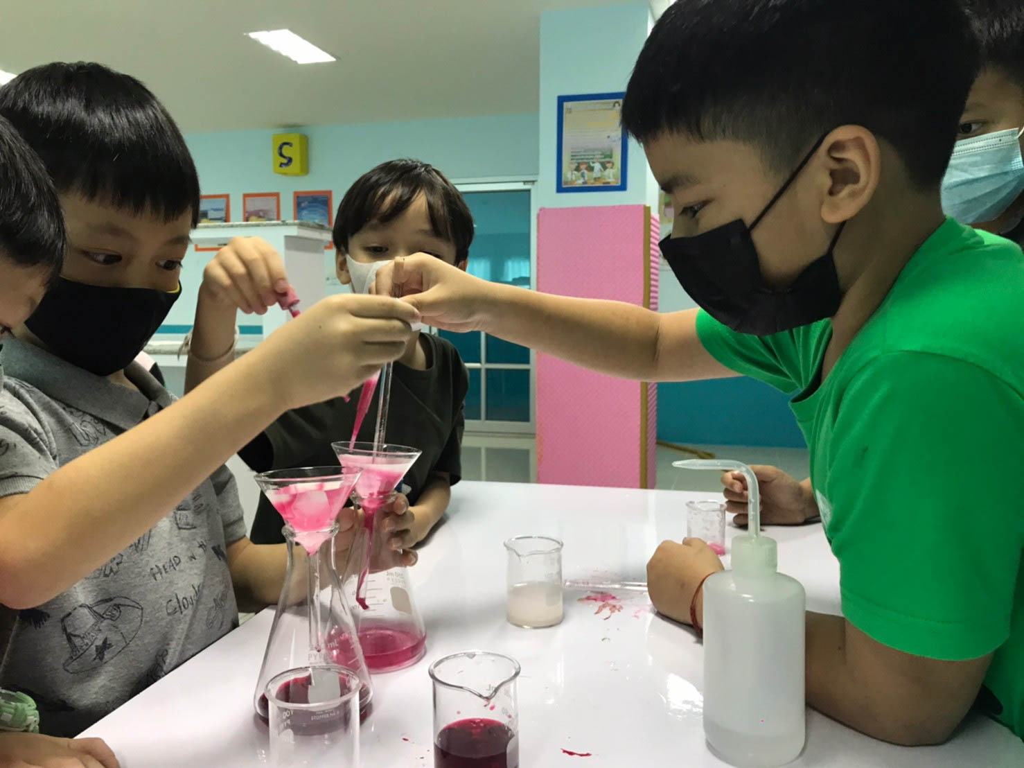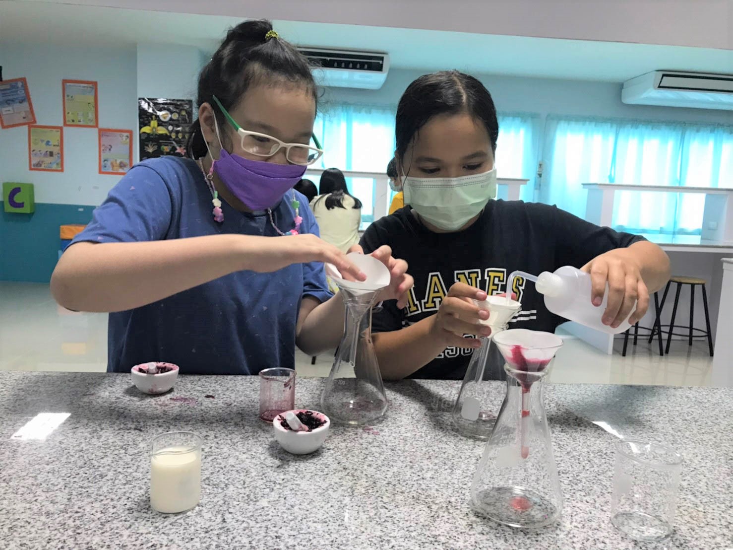 Skill-building activities during the Summer Course "Science Experiment" encourages students to learn from experiments through fun activities to promote critical thinking skills.