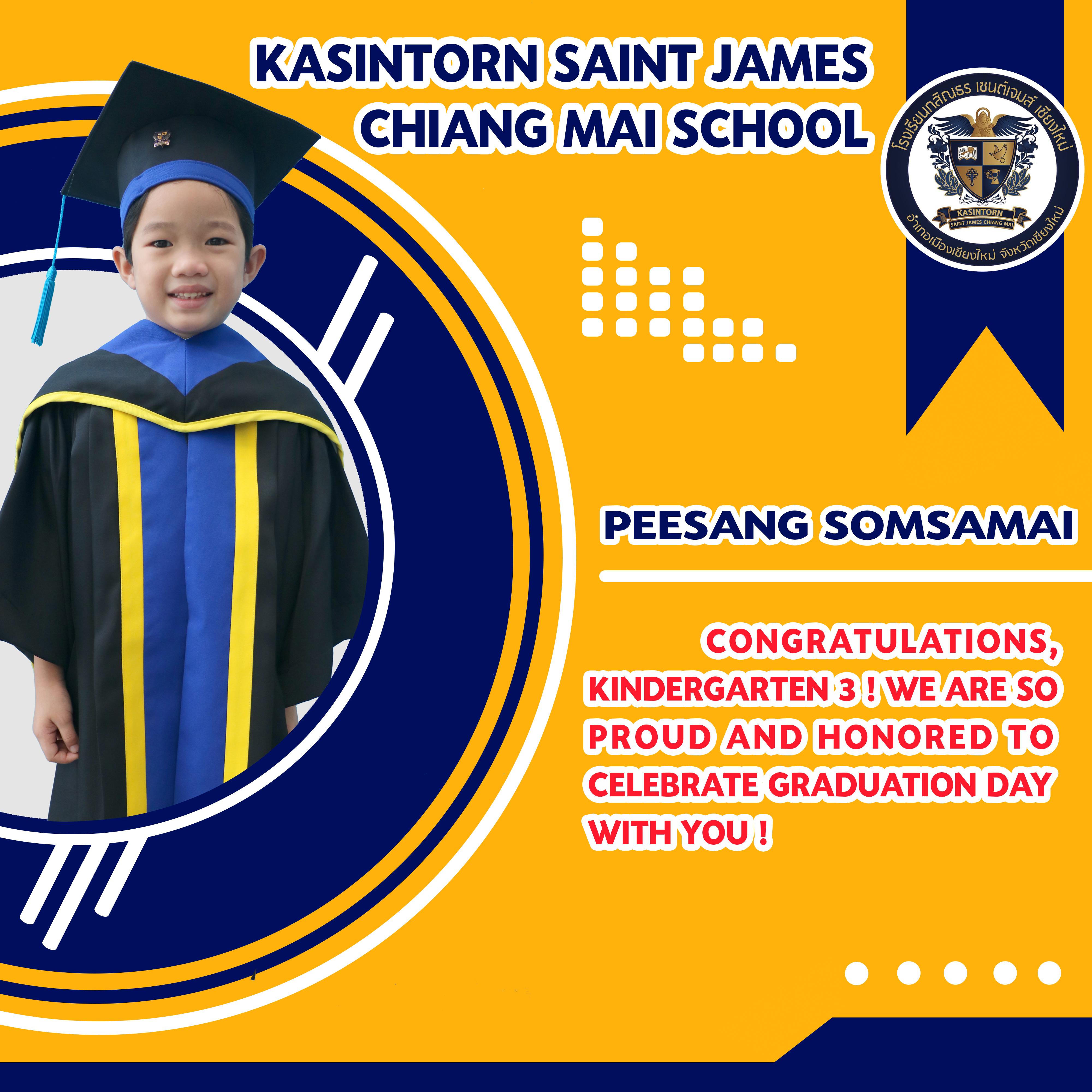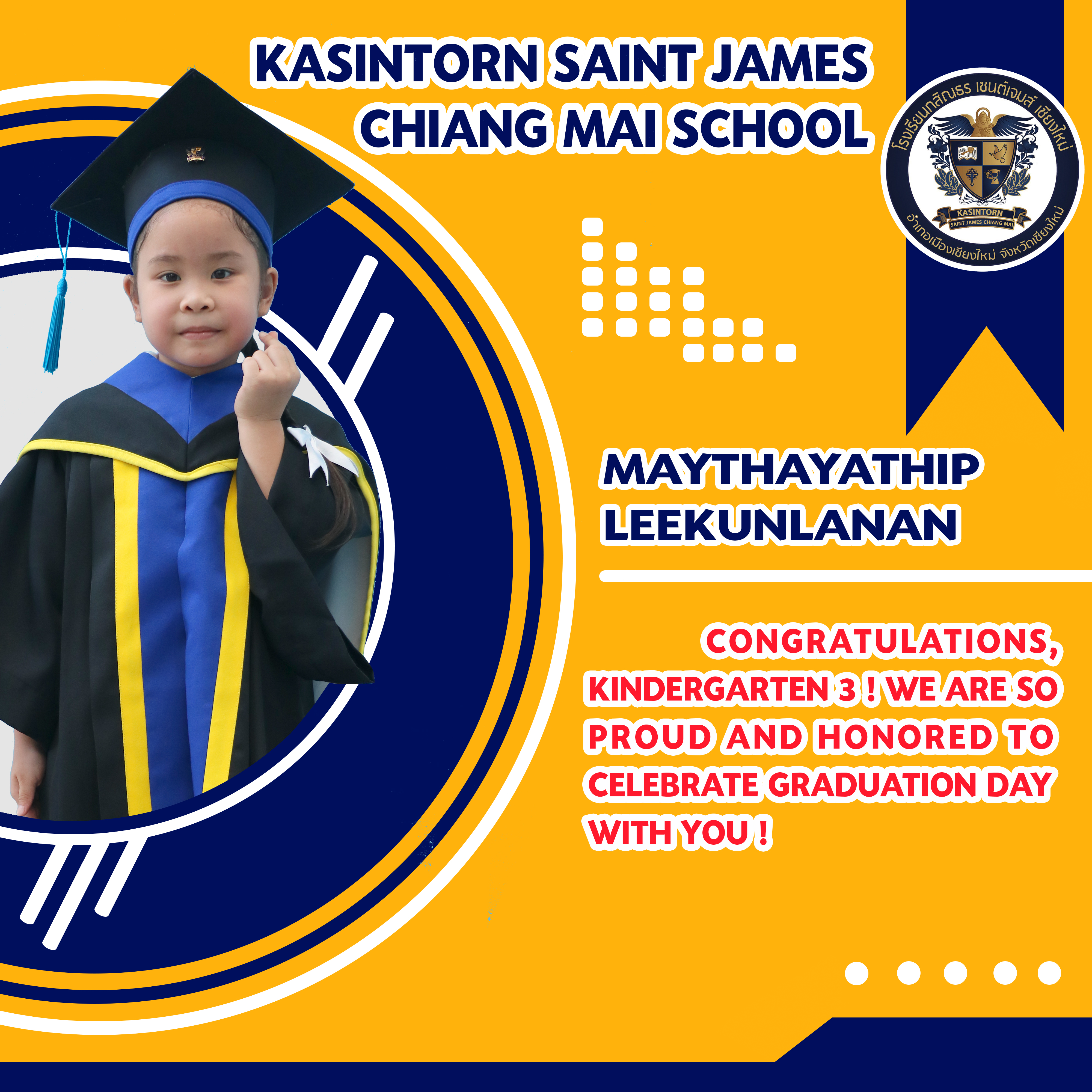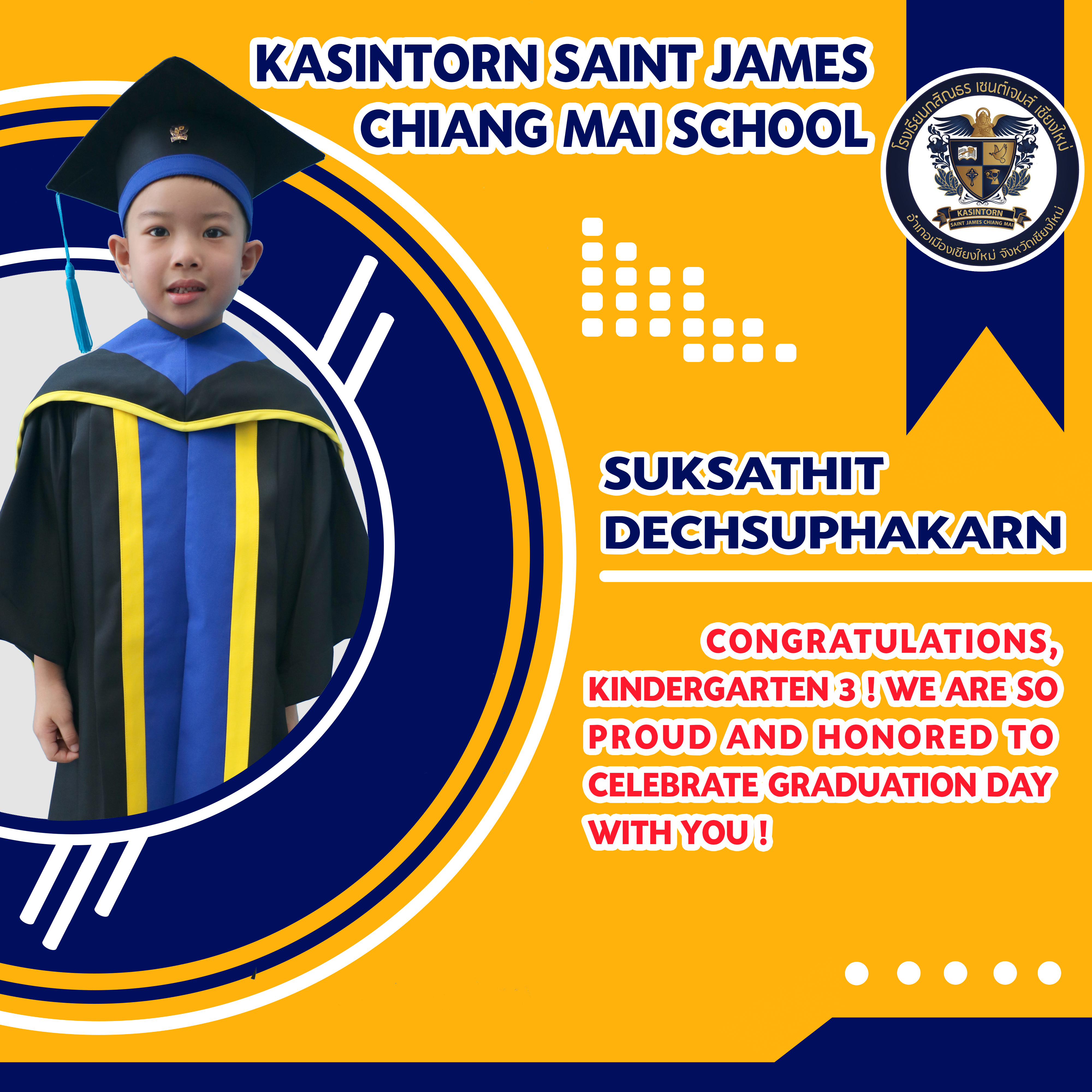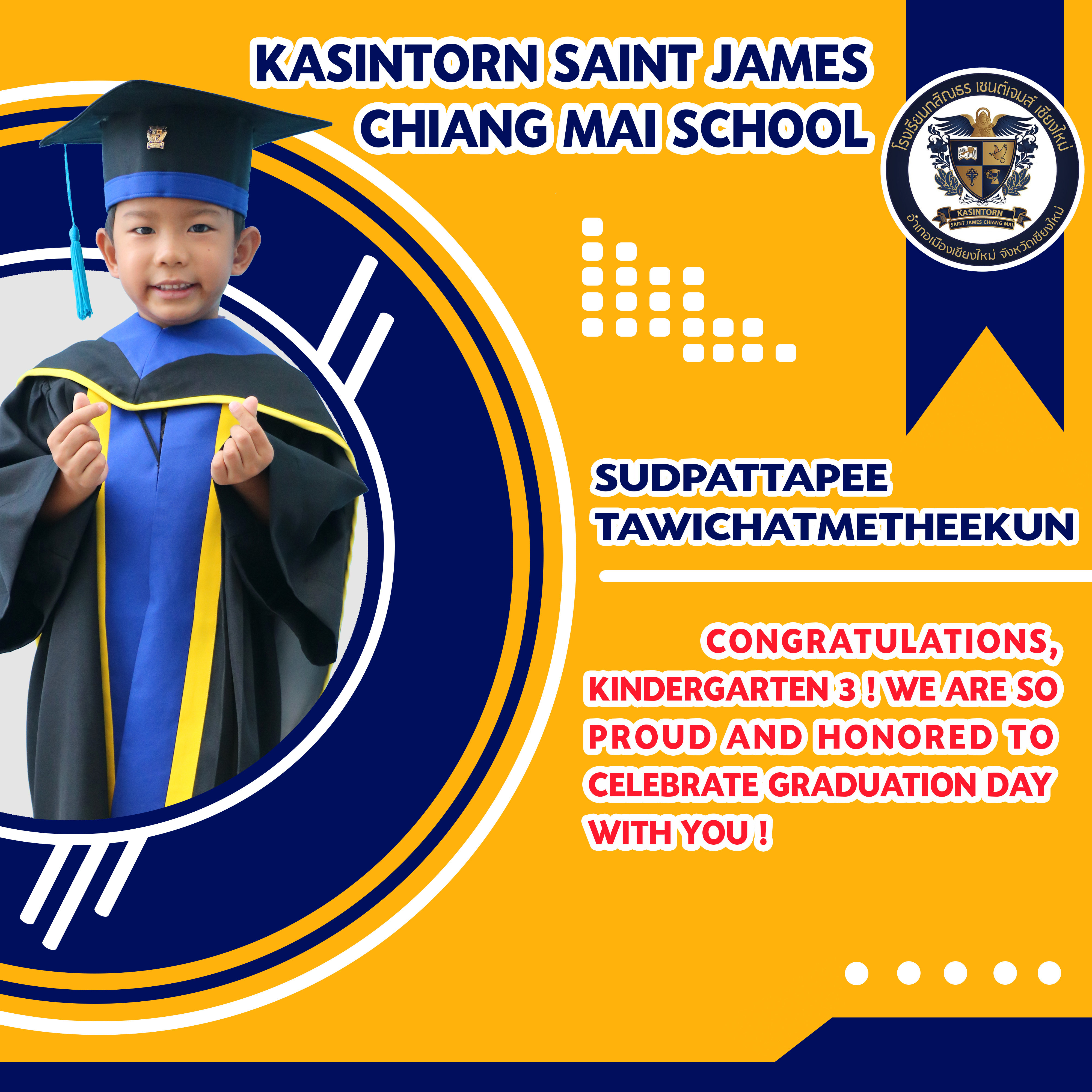 ขอแสดงความยินดีกับนักเรียนในระดับชั้นอนุบาล 3โรงเรียนกสิณธร เซนต์เจมส์ เชียงใหม่ทุกคน ที่สำเร็จการศึกษาขั้นปฐมวัย ระดับชั้นอนุบาล 3 ขอให้นักเรียนทุกคน จงตั้งใจเรียน มีความพากเพียรพยายามในการศึกษาในระดับที่สูงขึ้นไป
