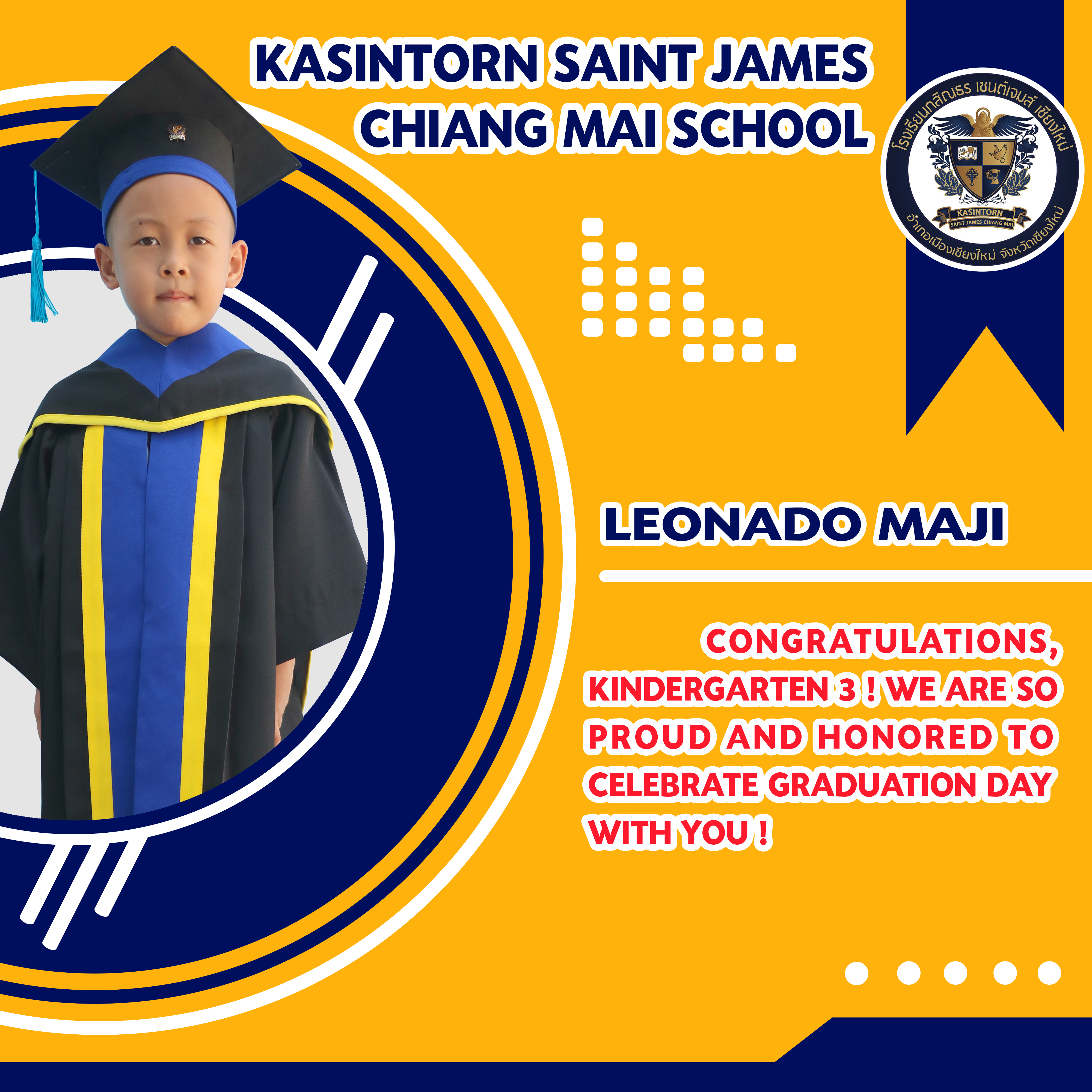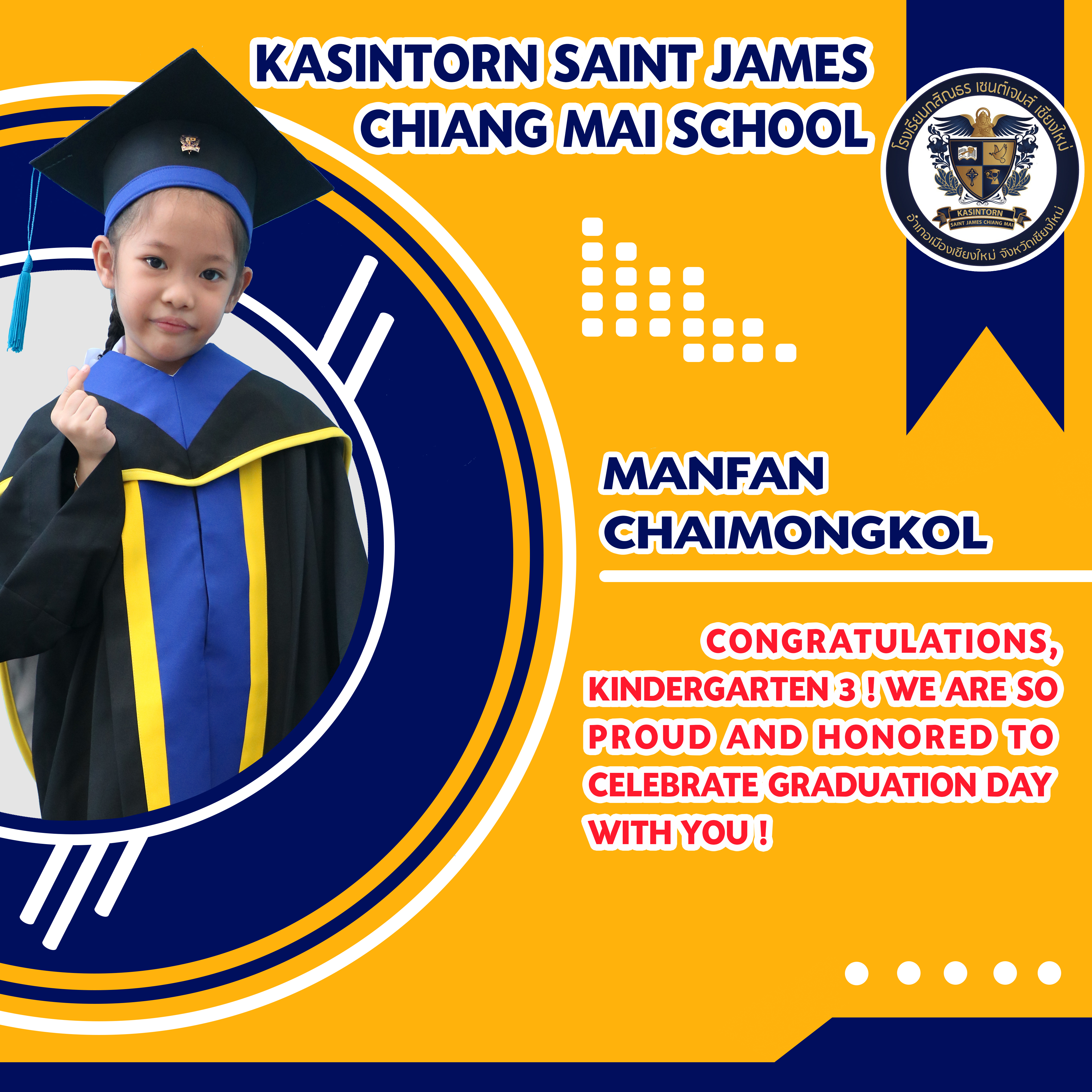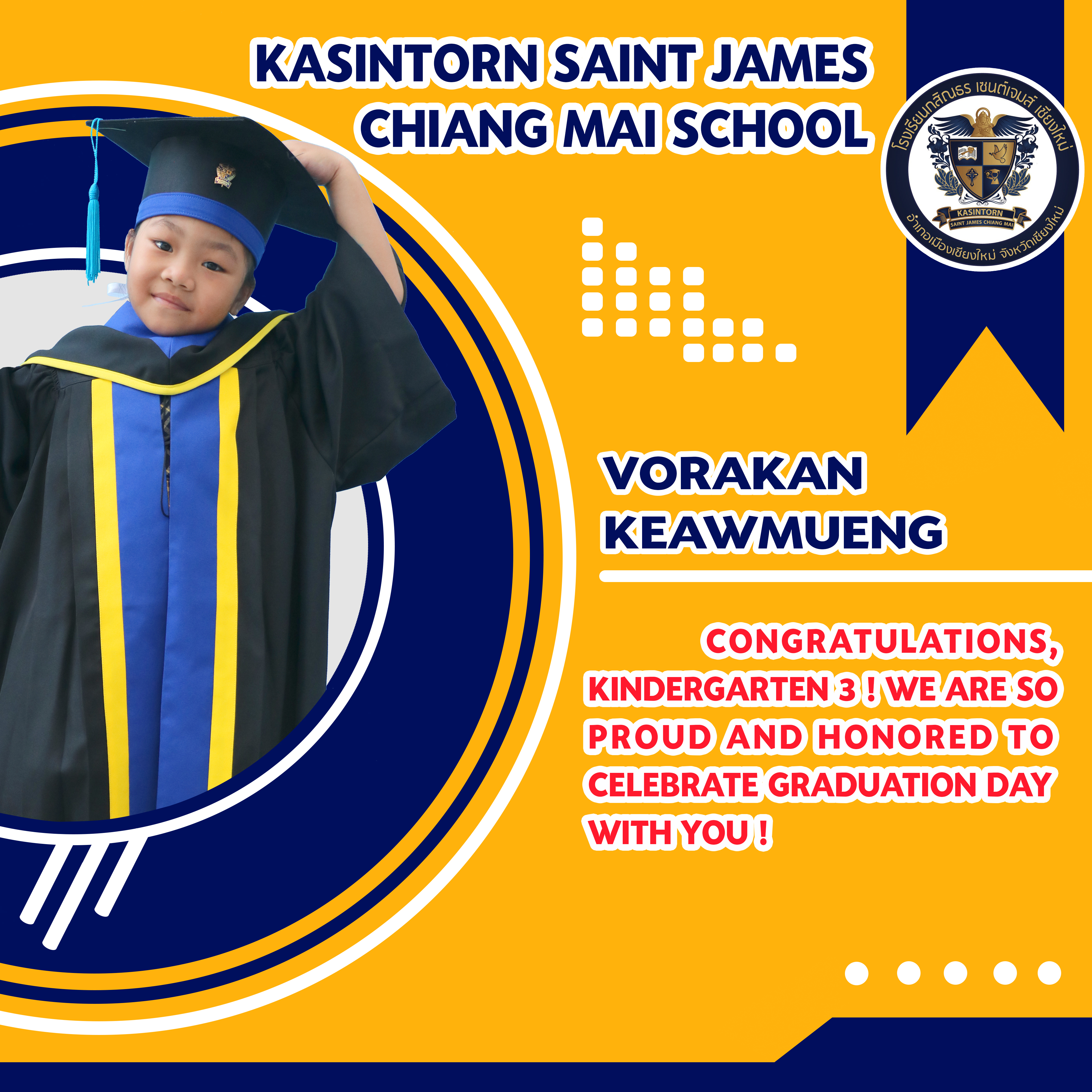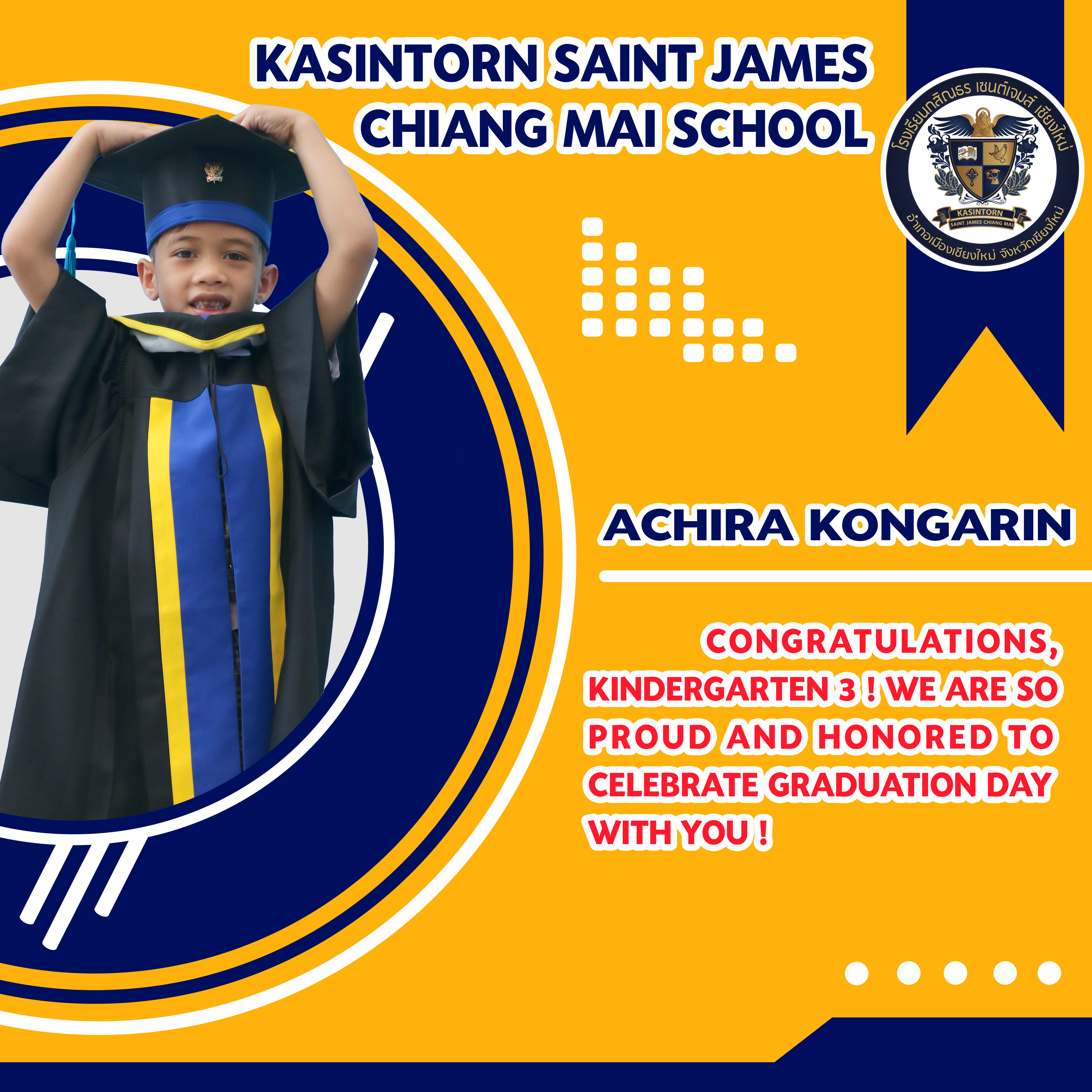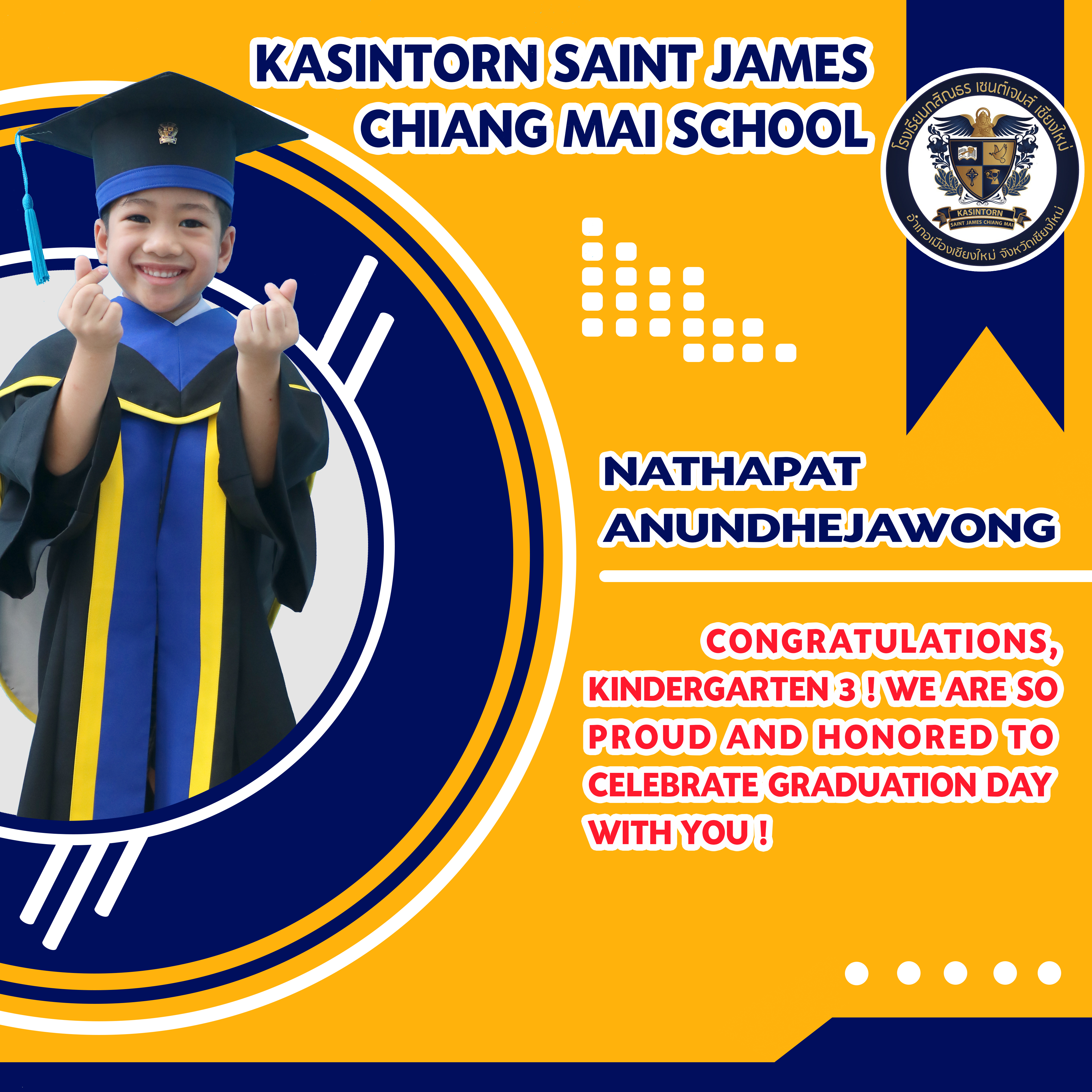 ขอแสดงความยินดีกับนักเรียนในระดับชั้นอนุบาล 3โรงเรียนกสิณธร เซนต์เจมส์ เชียงใหม่ทุกคน ที่สำเร็จการศึกษาขั้นปฐมวัย ระดับชั้นอนุบาล 3 ขอให้นักเรียนทุกคน จงตั้งใจเรียน มีความพากเพียรพยายามในการศึกษาในระดับที่สูงขึ้นไป