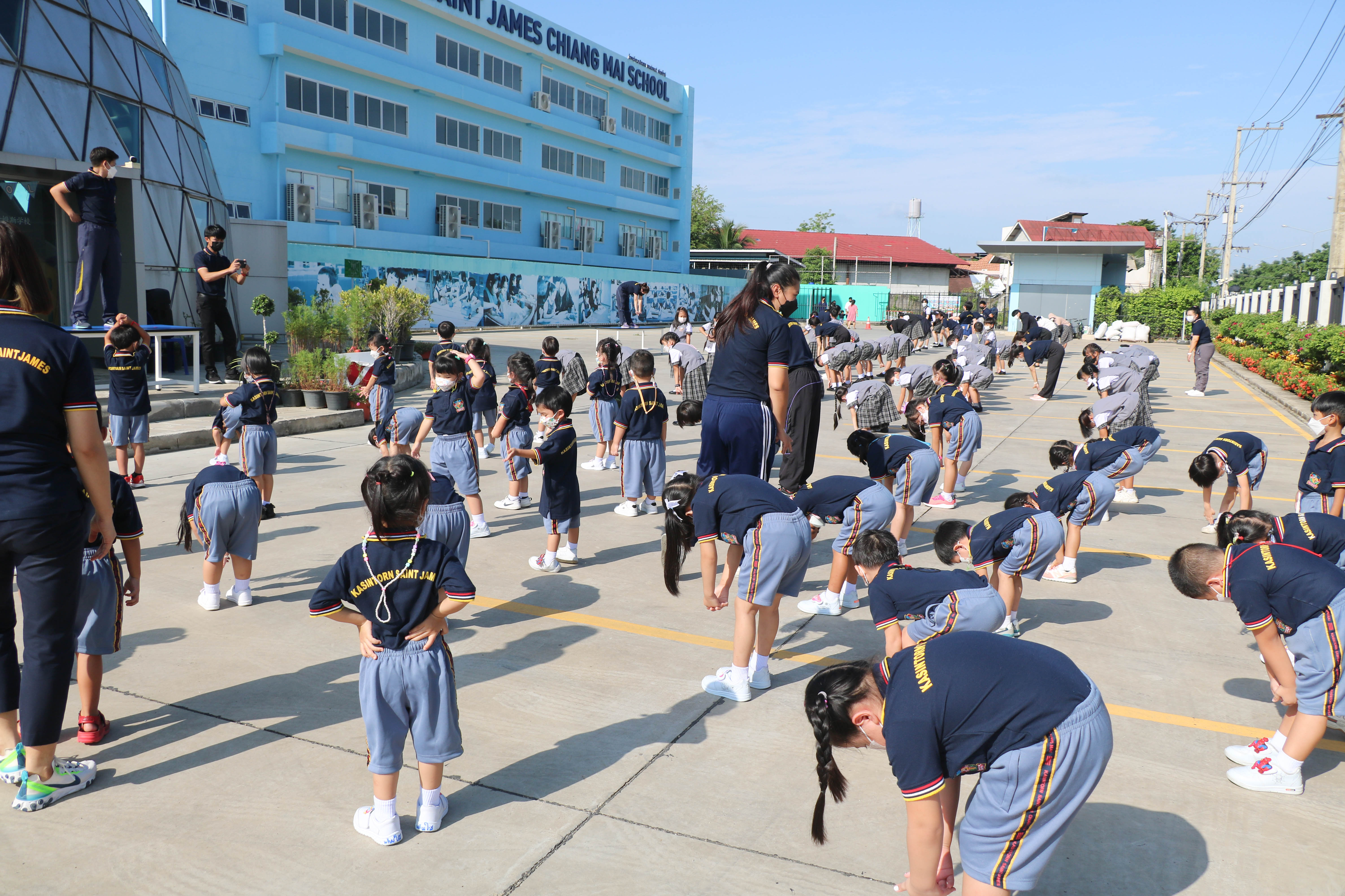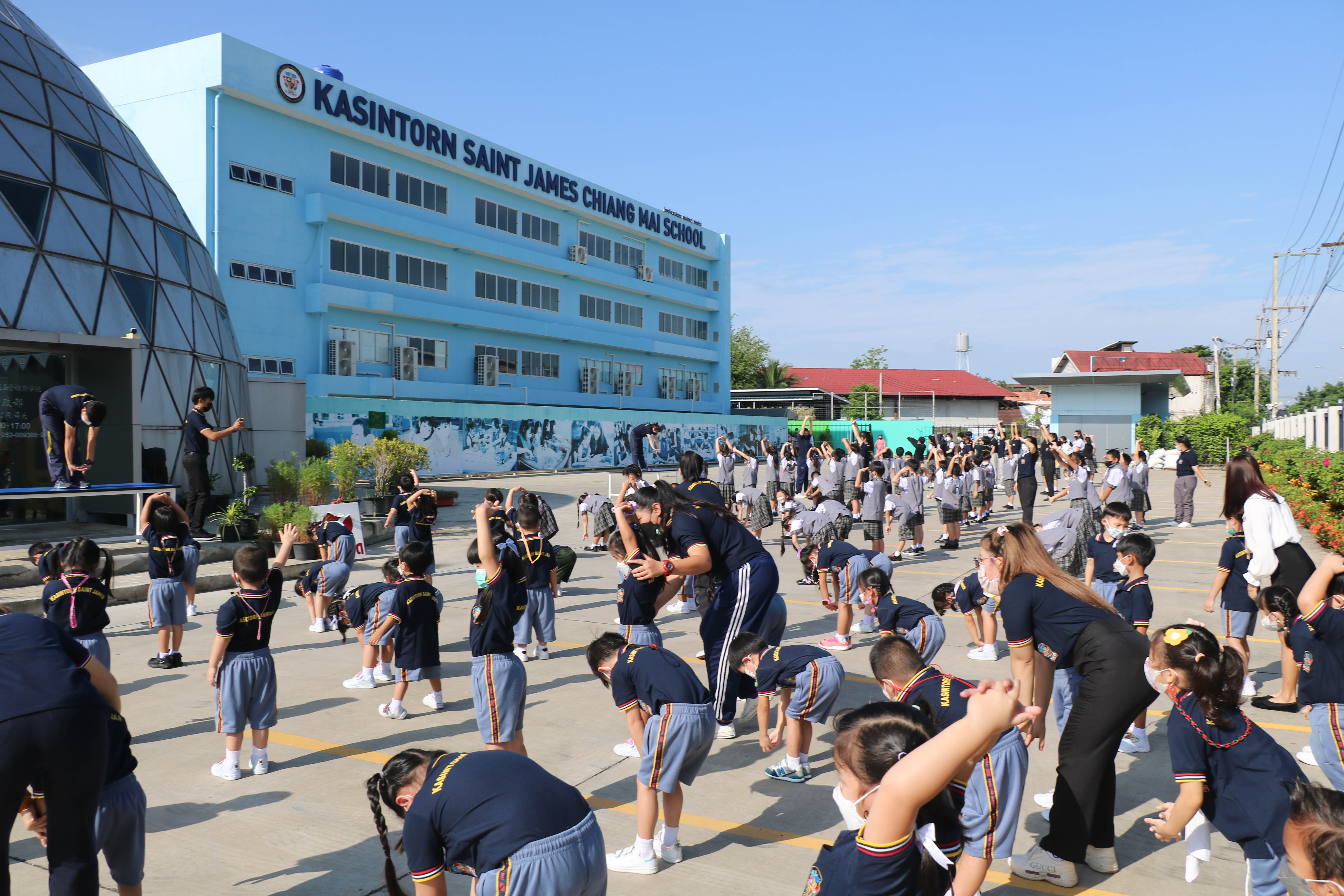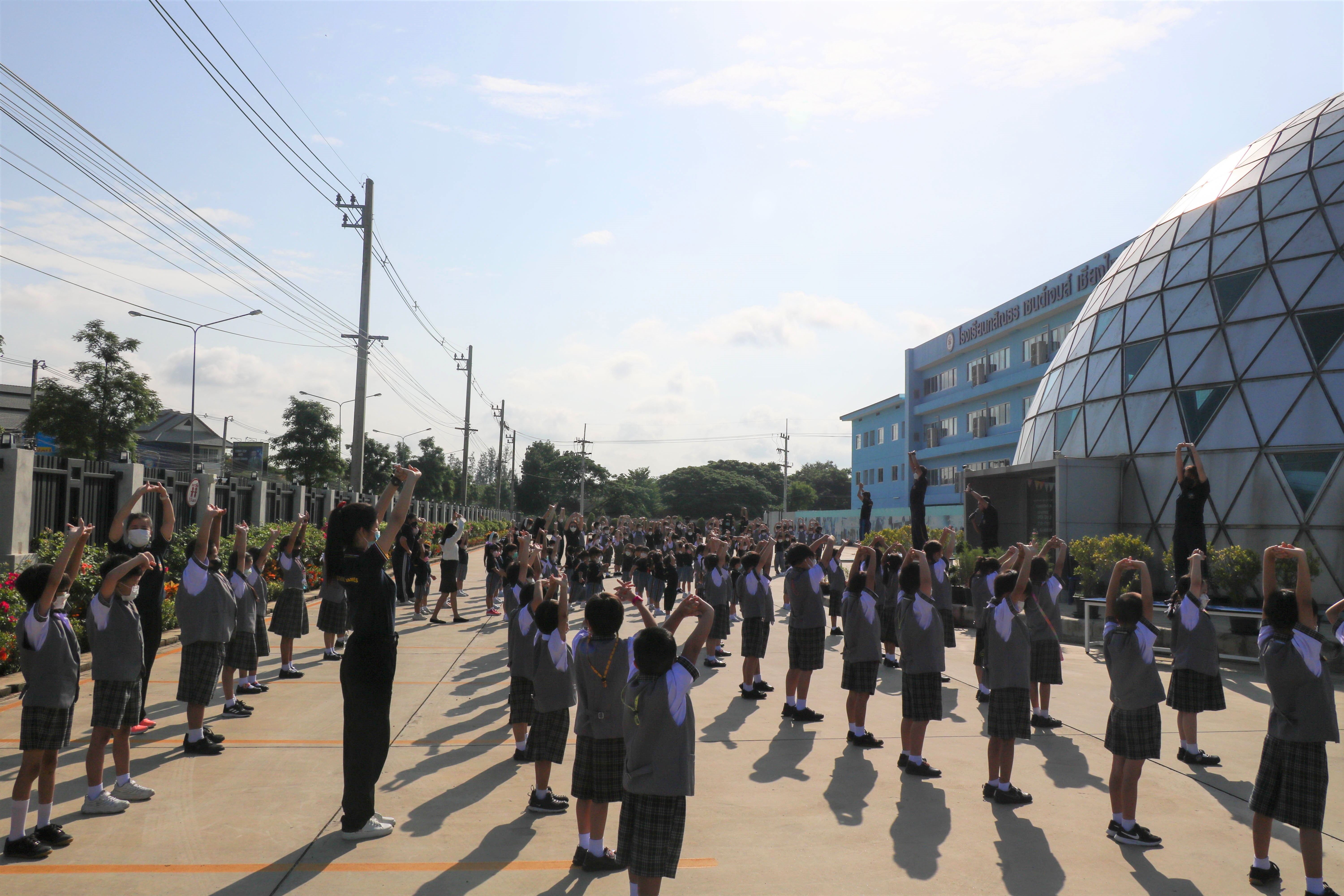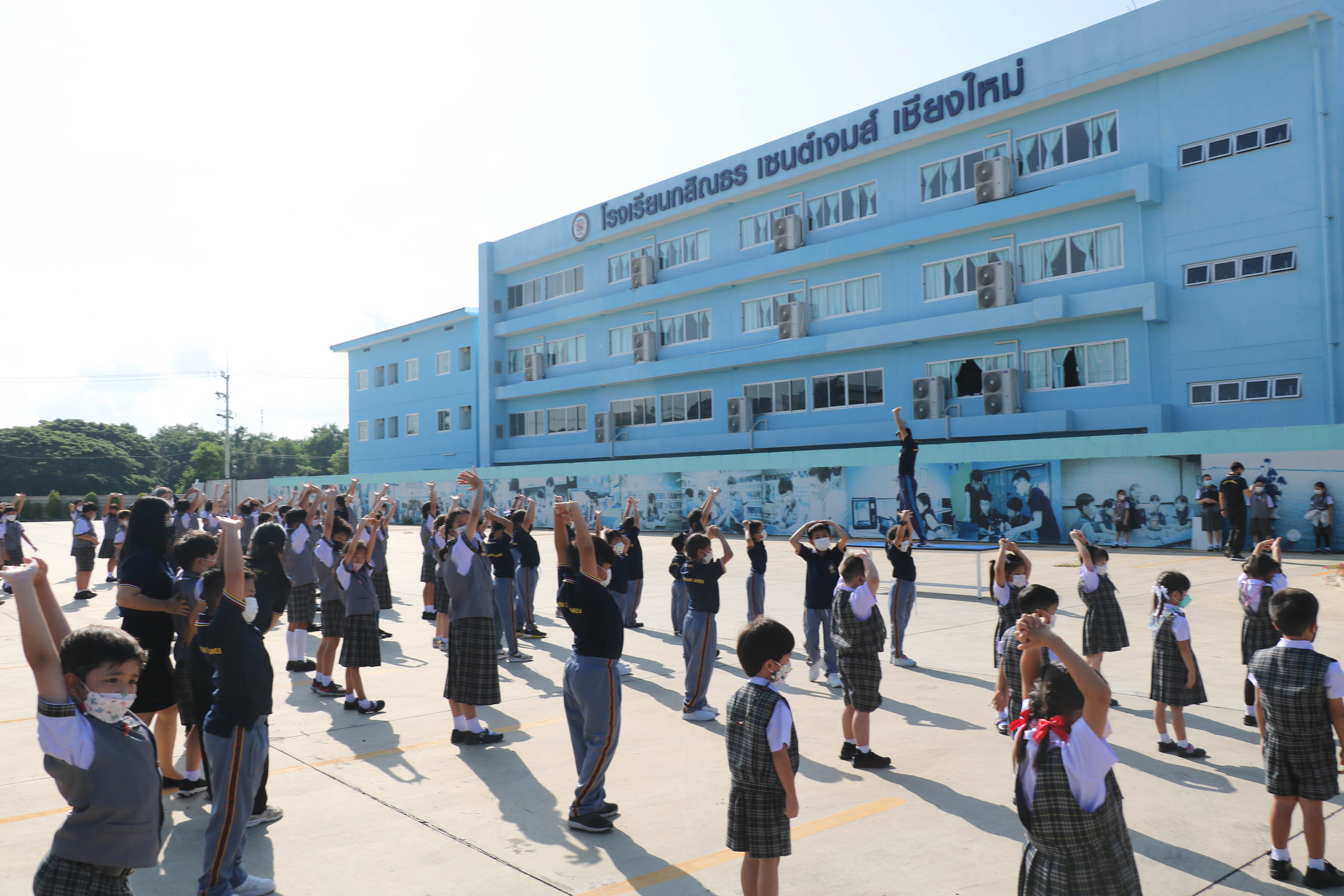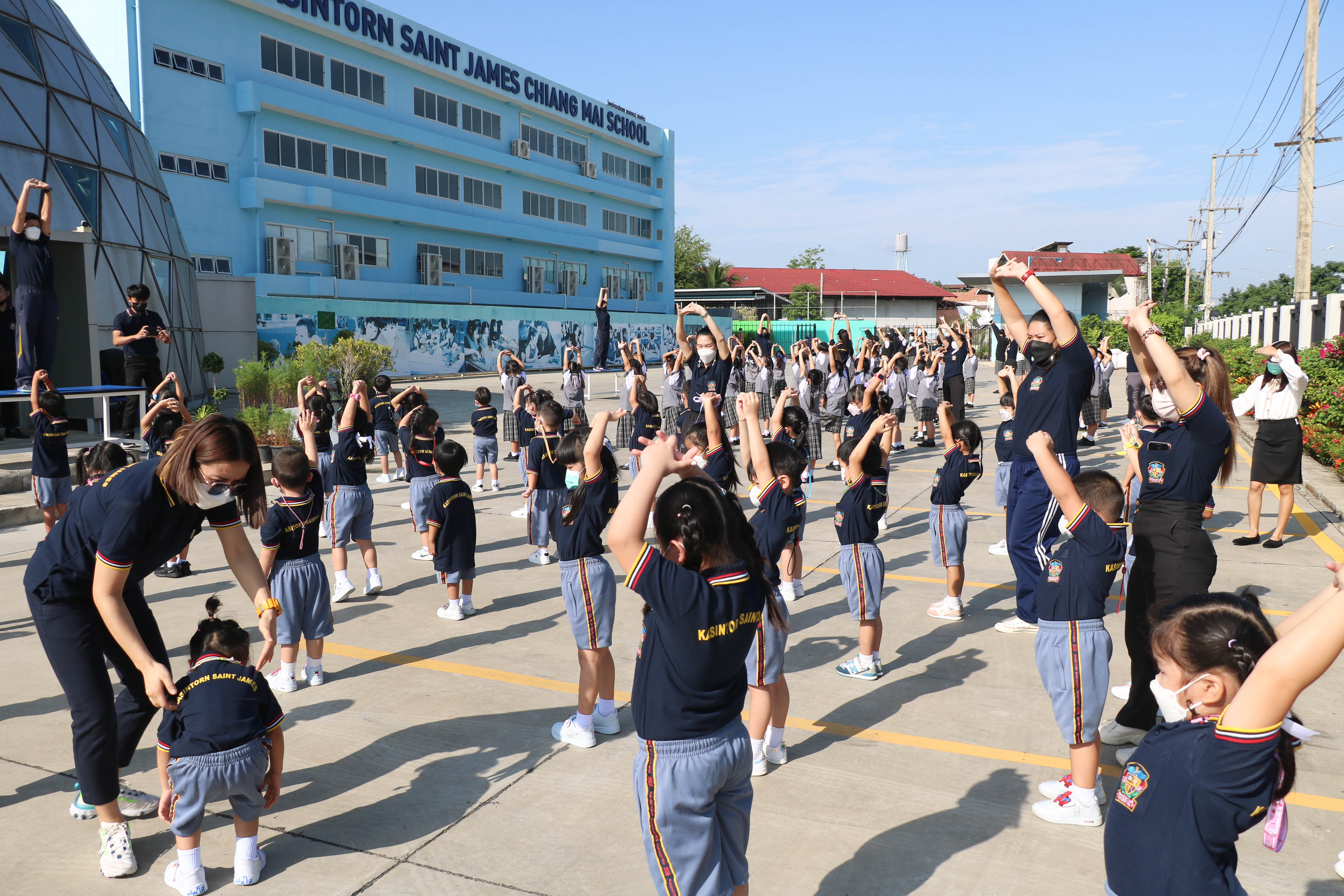 🙋♀️🙋Morning Exercise at Kasintorn St. James Chiang Mai School. It is an activity that promotes good health for children and encourages the love of physical activity for optimum health in which teachers and students have fun exercising together.