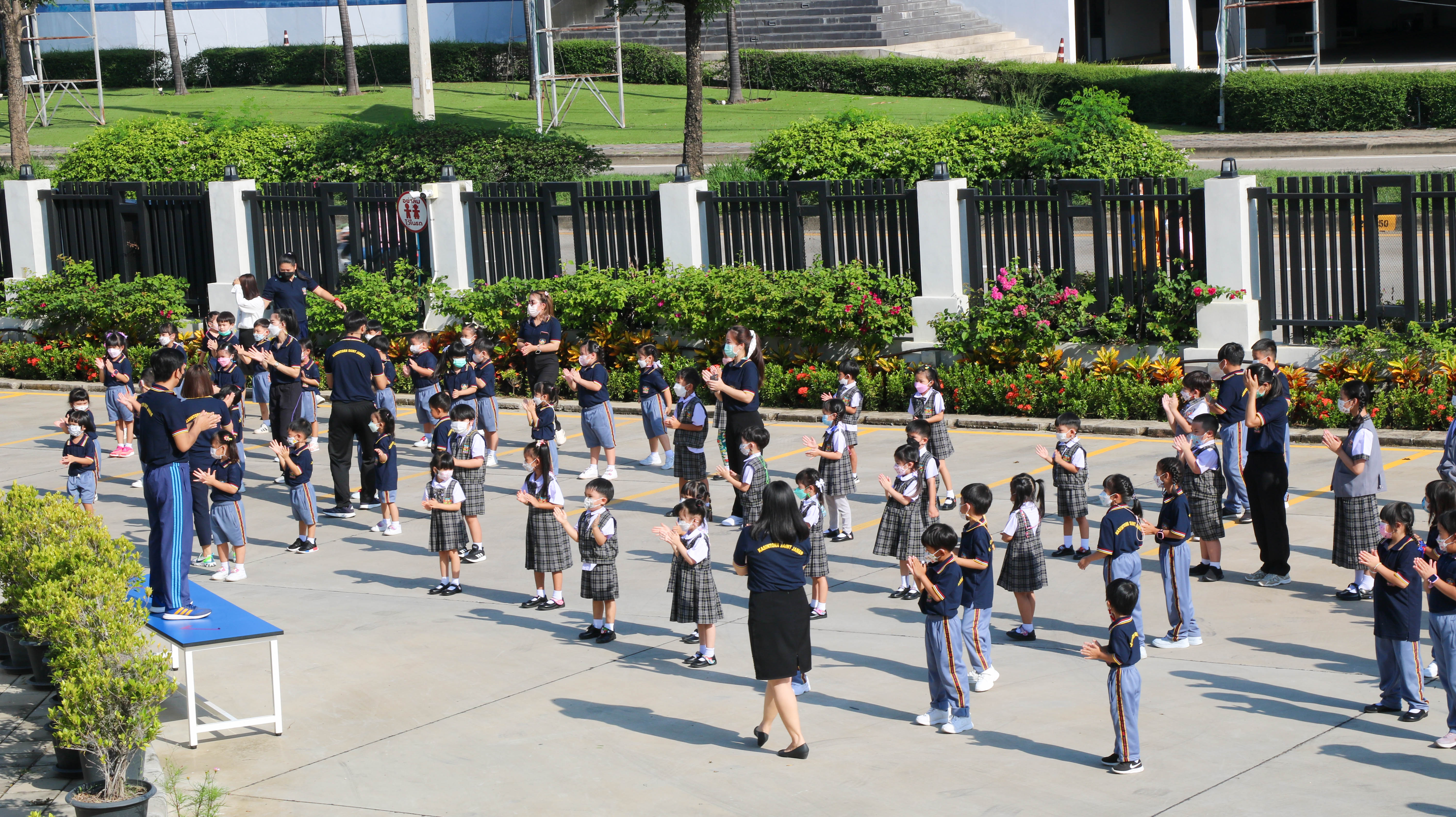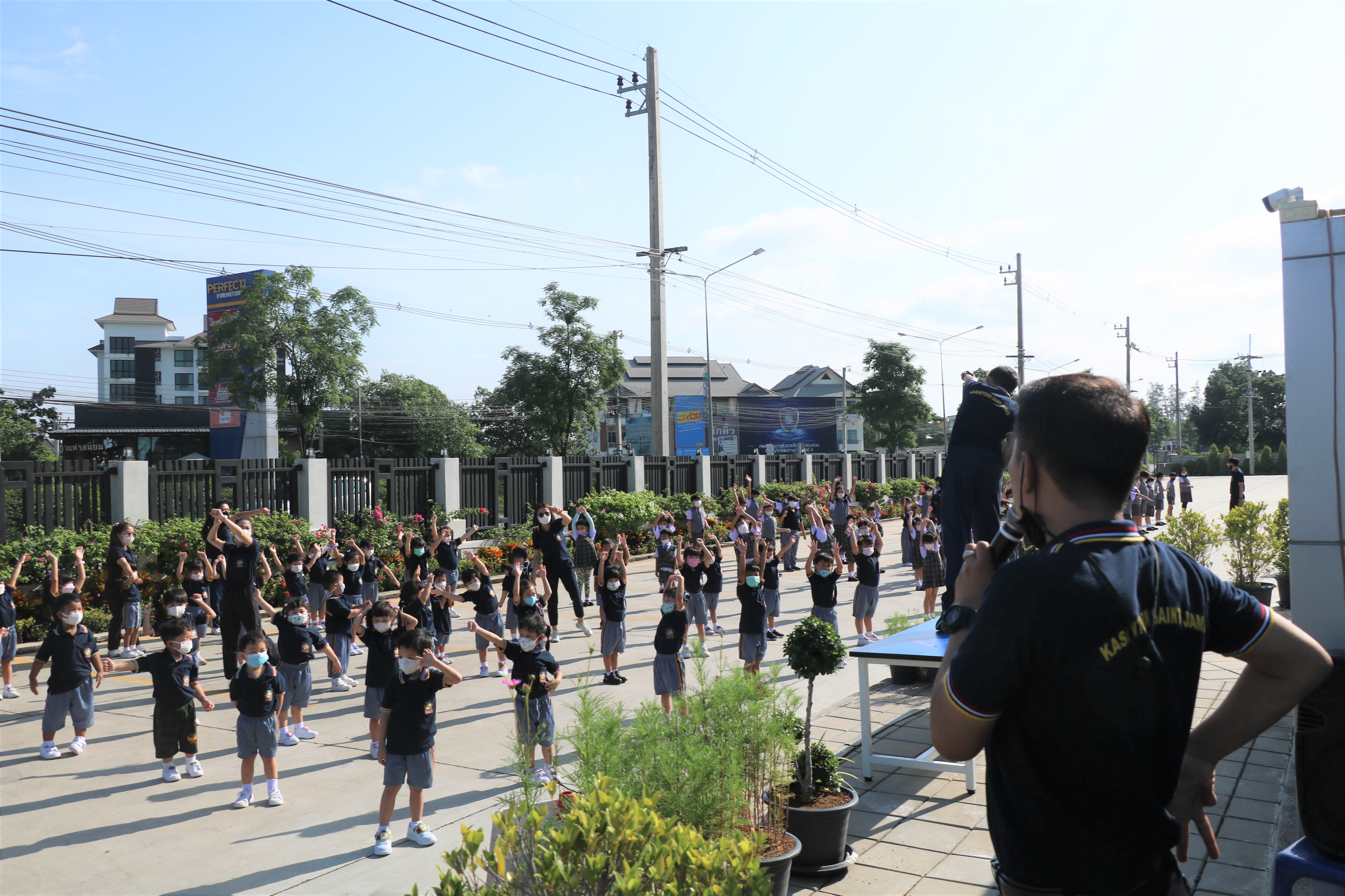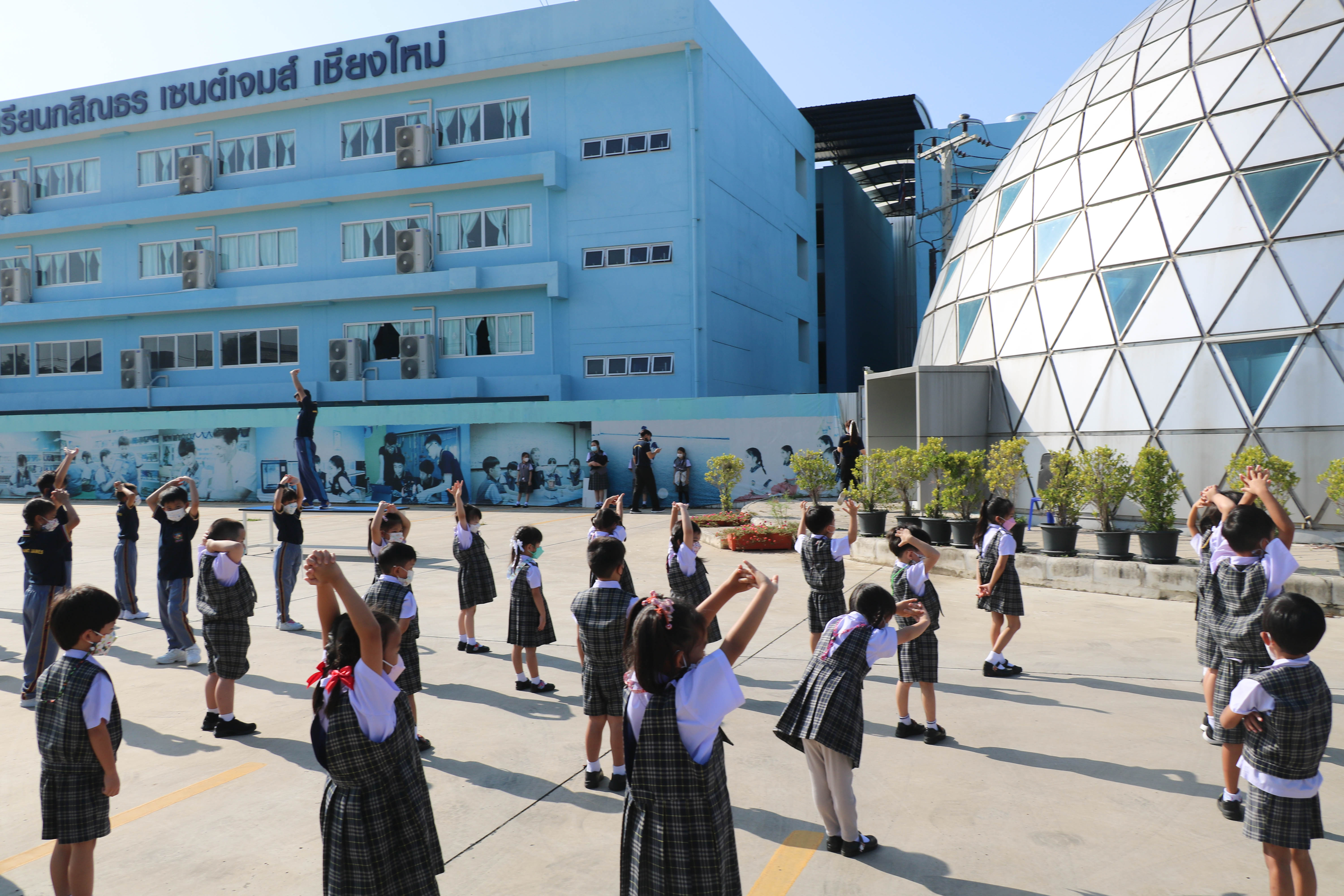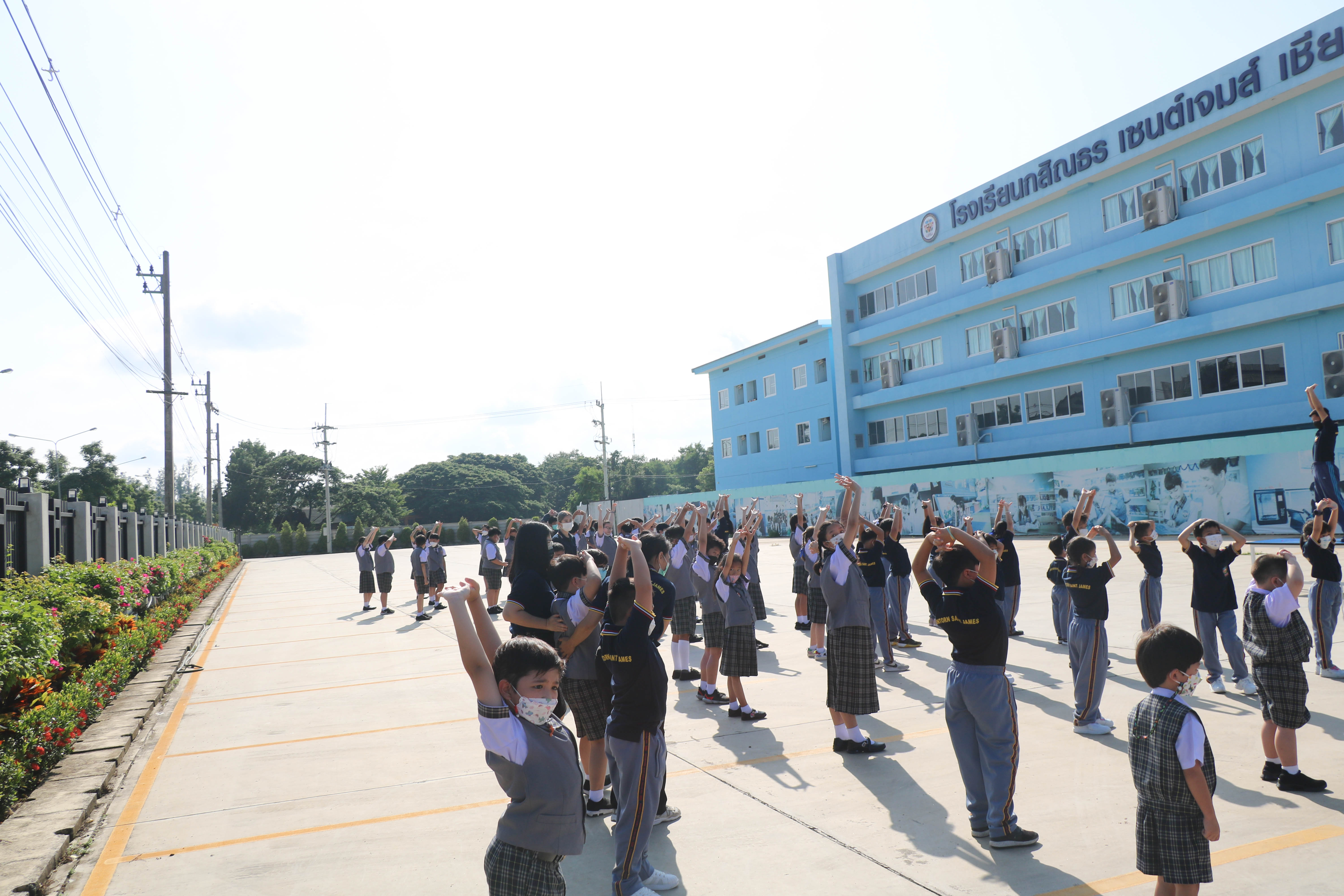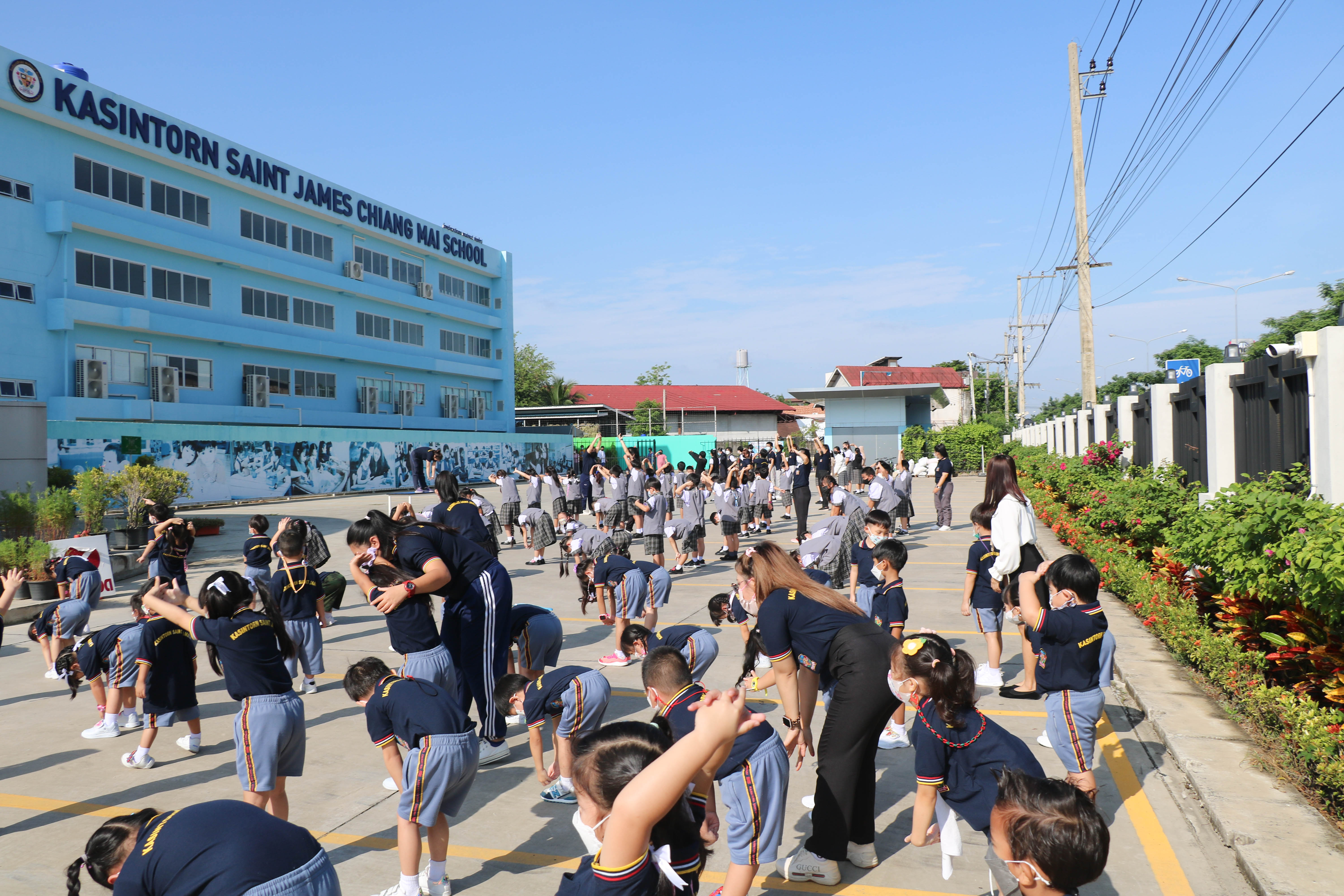 🙋♀️🙋Morning Exercise at Kasintorn St. James Chiang Mai School. It is an activity that promotes good health for children and encourages the love of physical activity for optimum health in which teachers and students have fun exercising together.