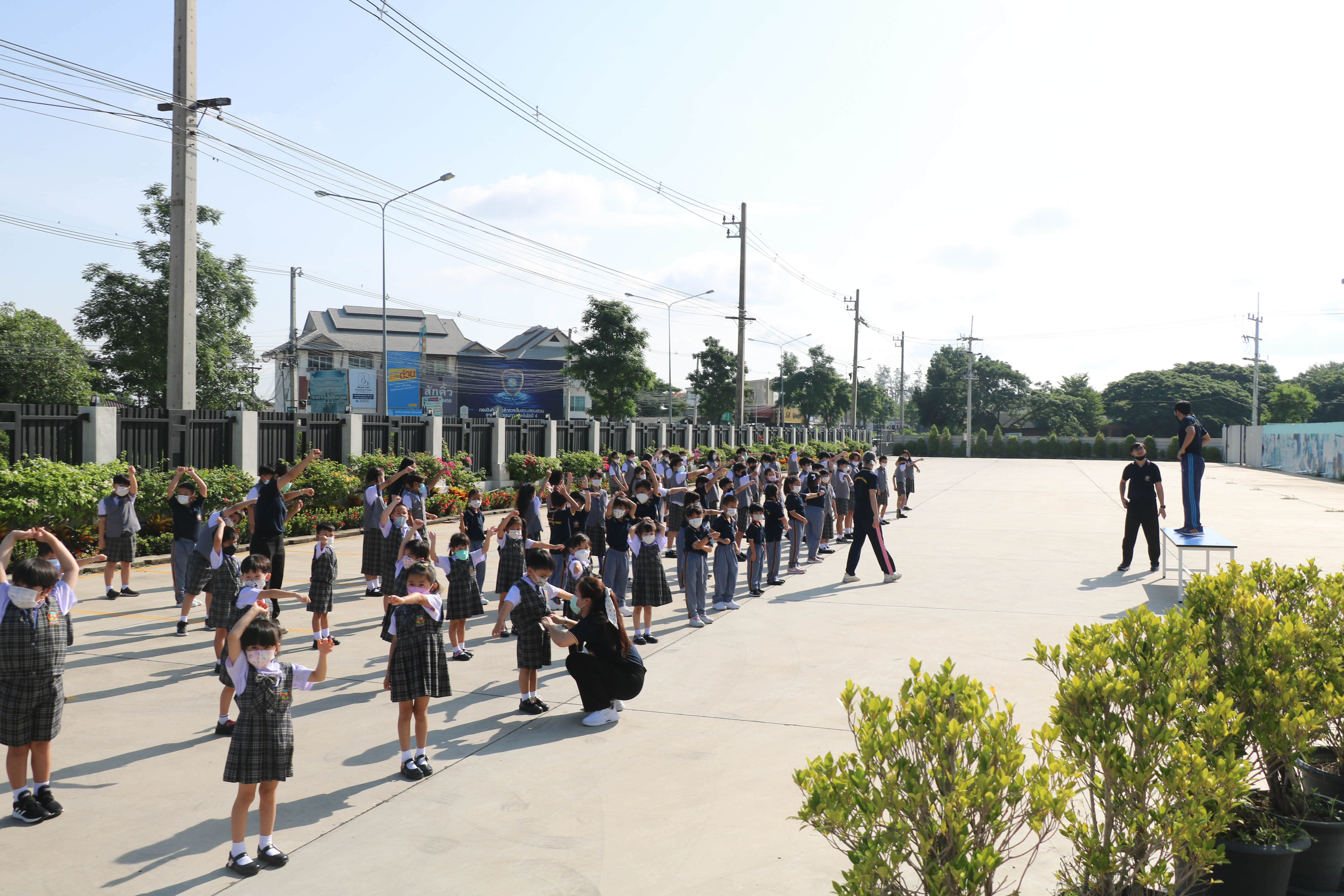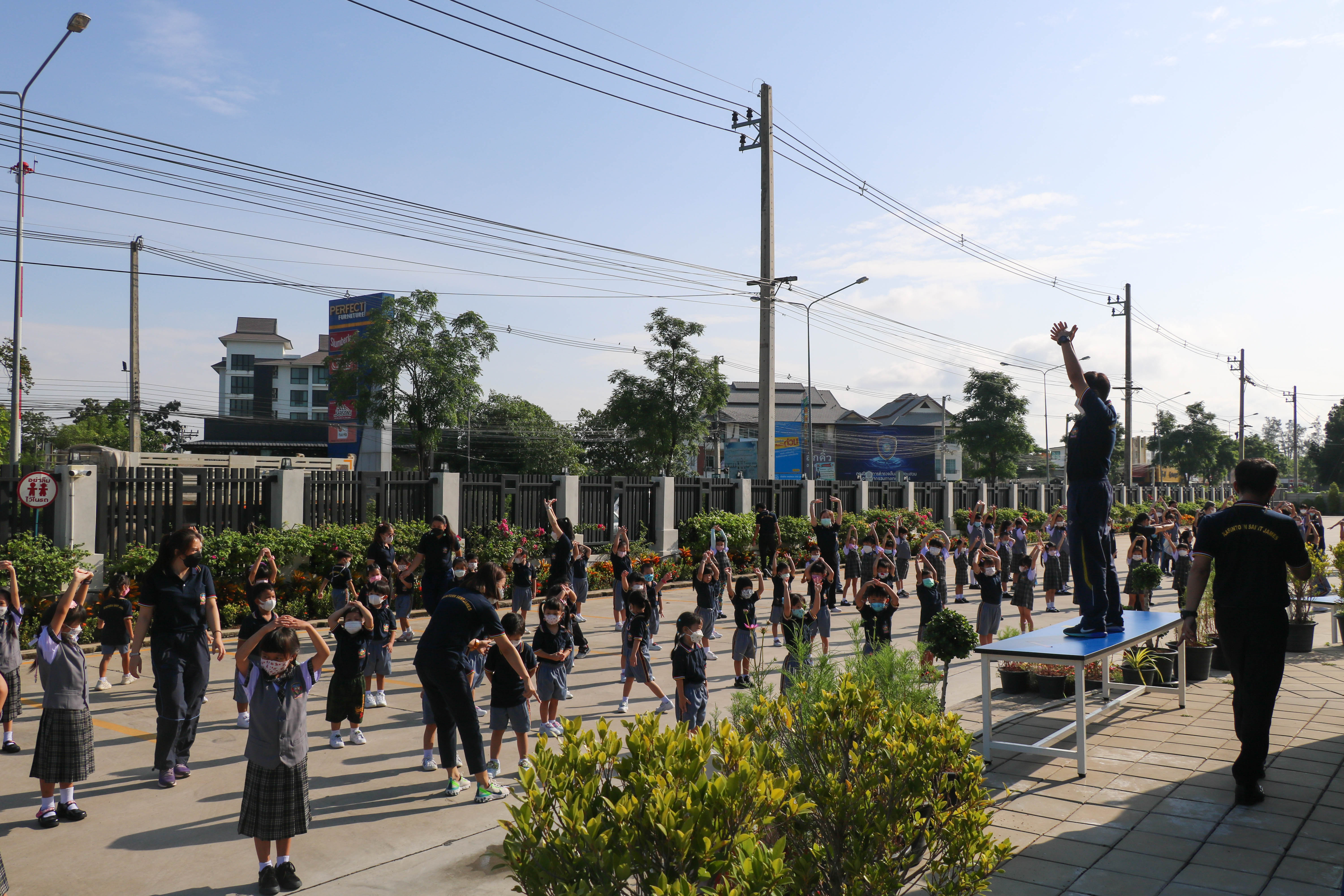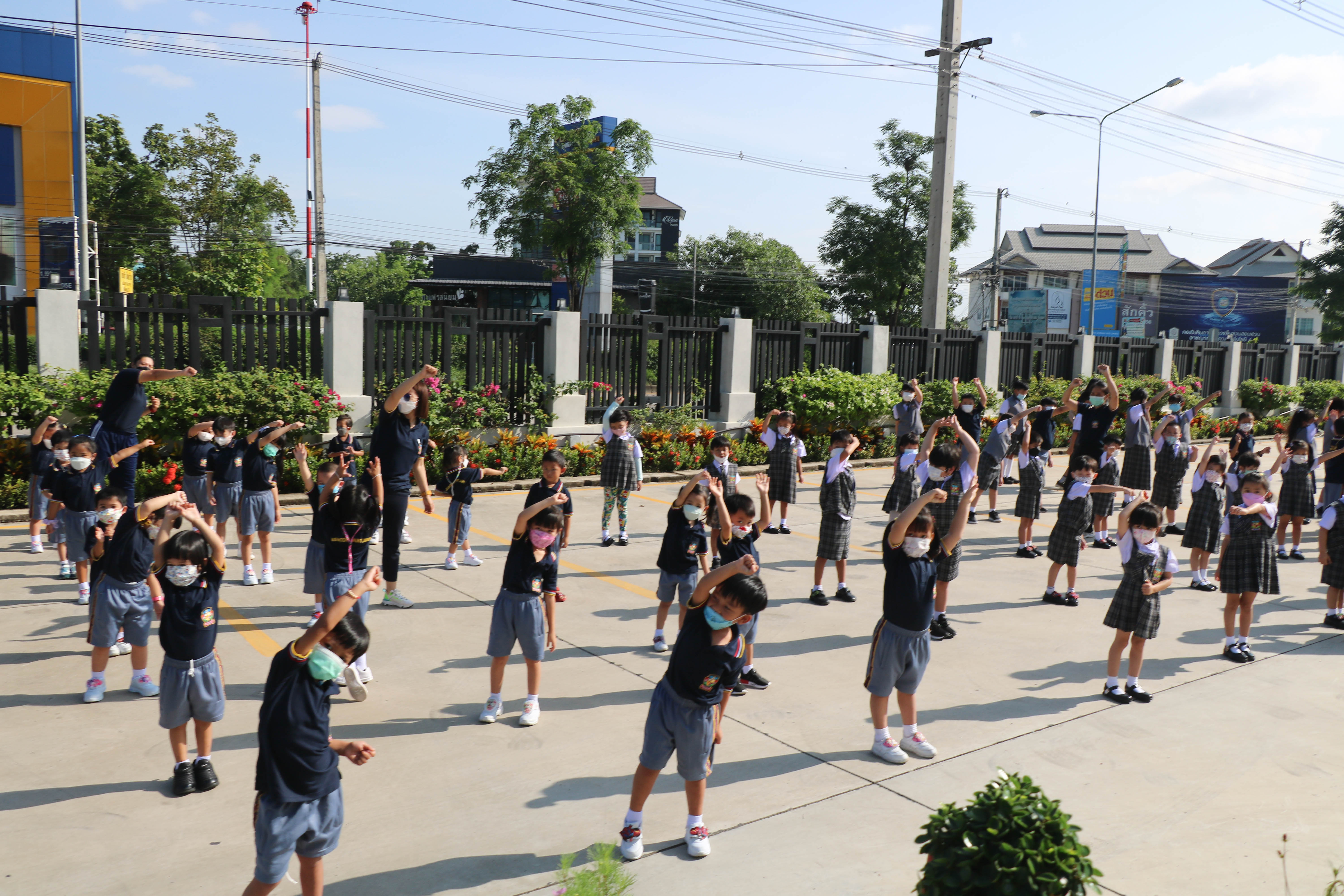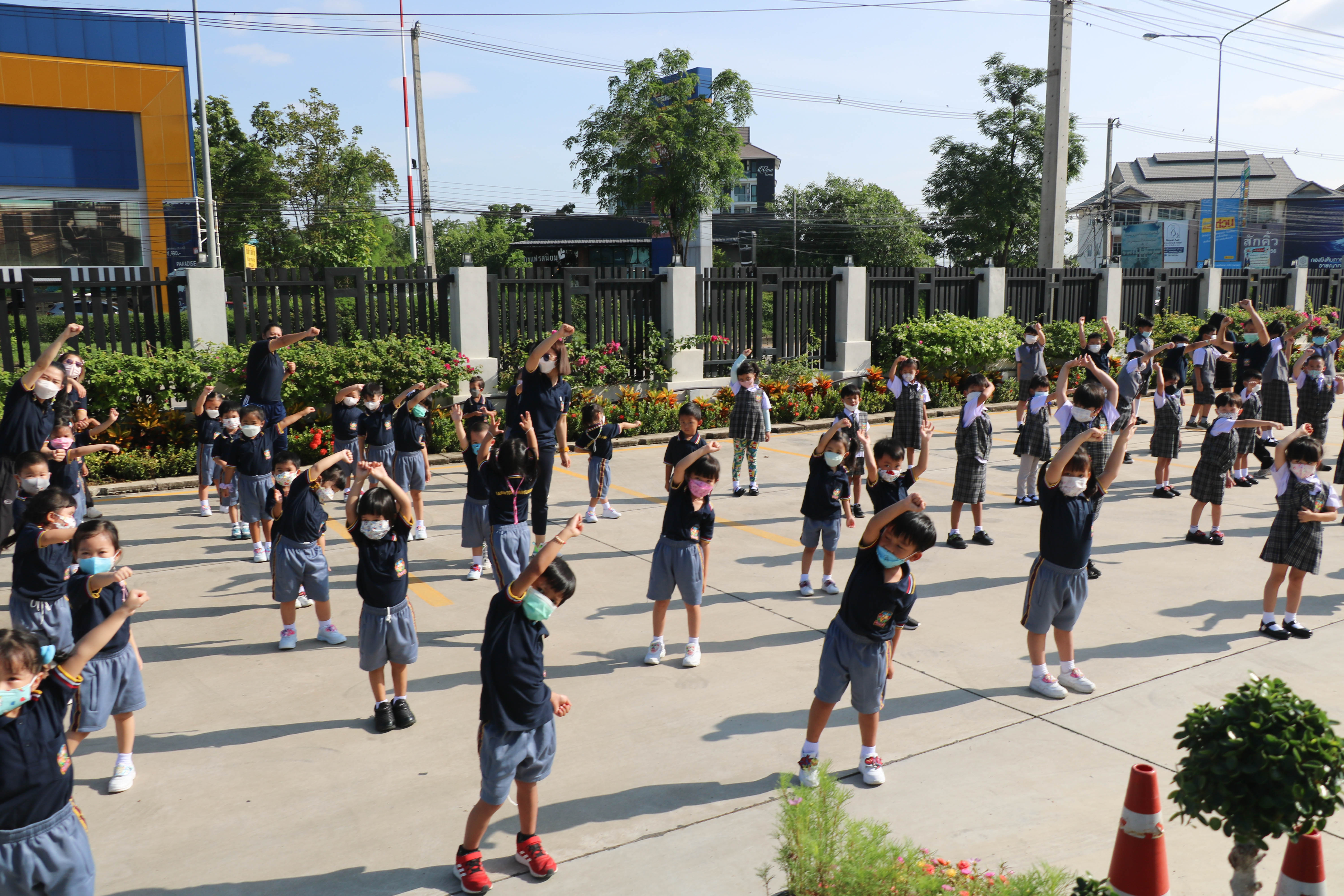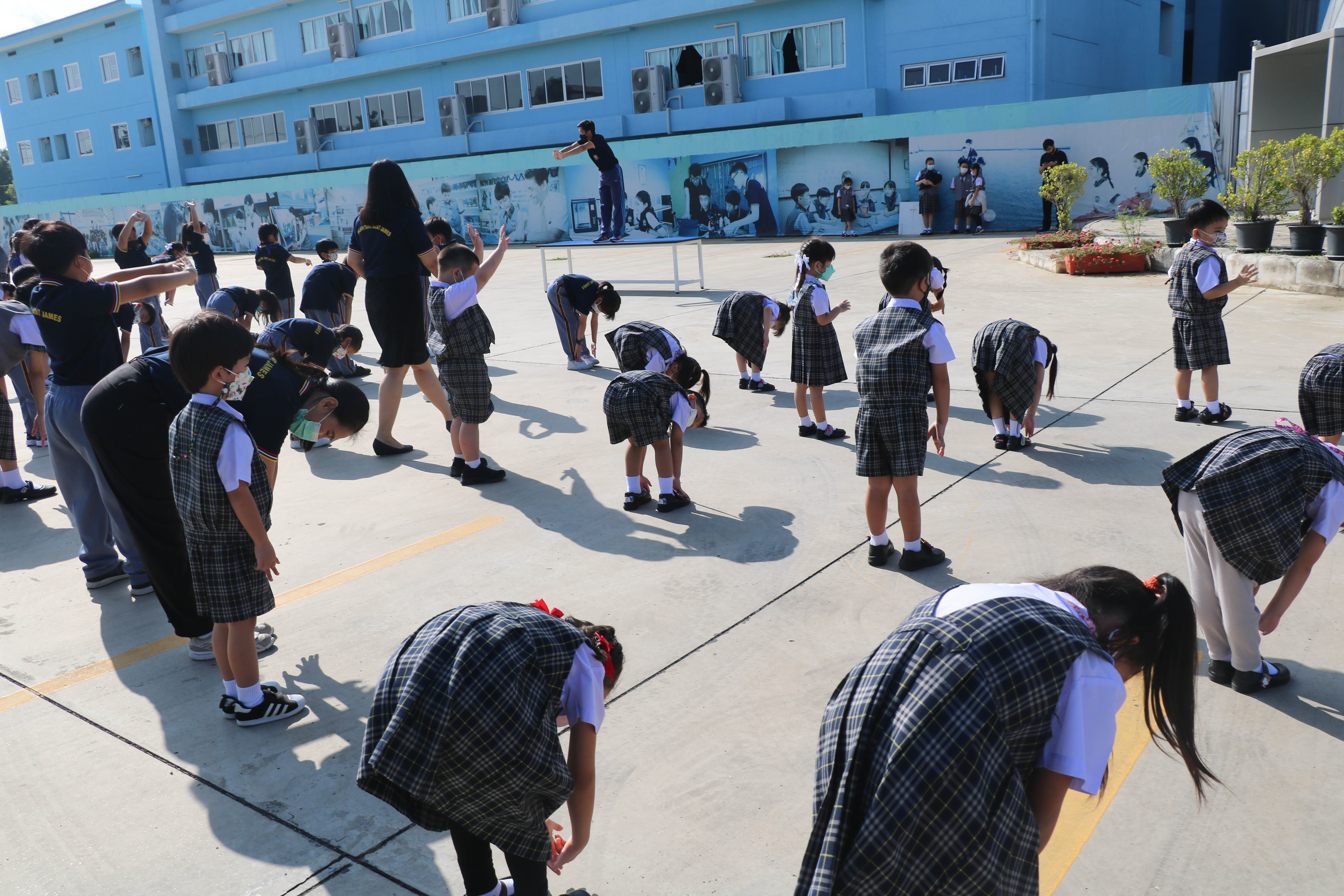 🙋♀️🙋Morning Exercise at Kasintorn St. James Chiang Mai School. It is an activity that promotes good health for children and encourages the love of physical activity for optimum health in which teachers and students have fun exercising together.