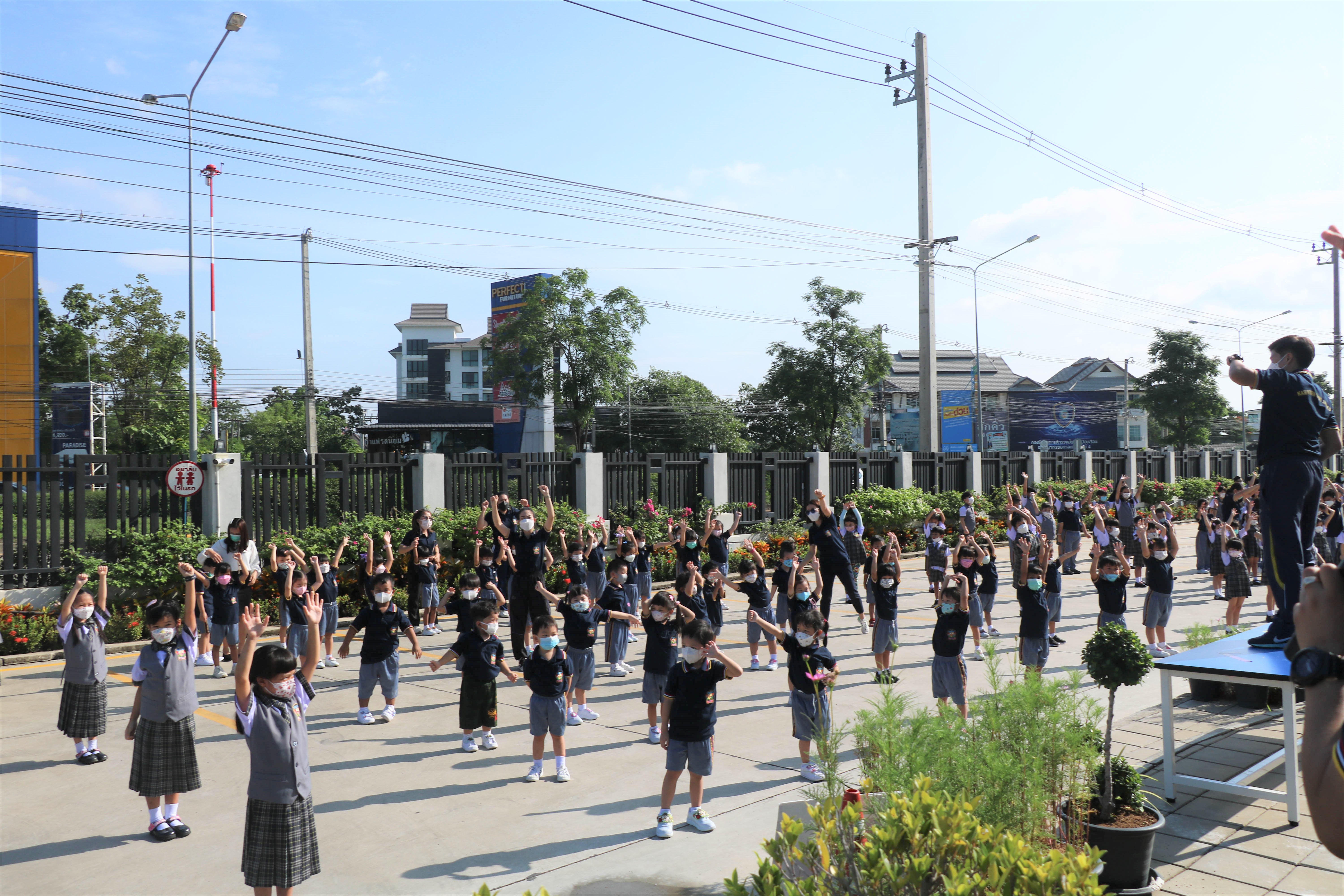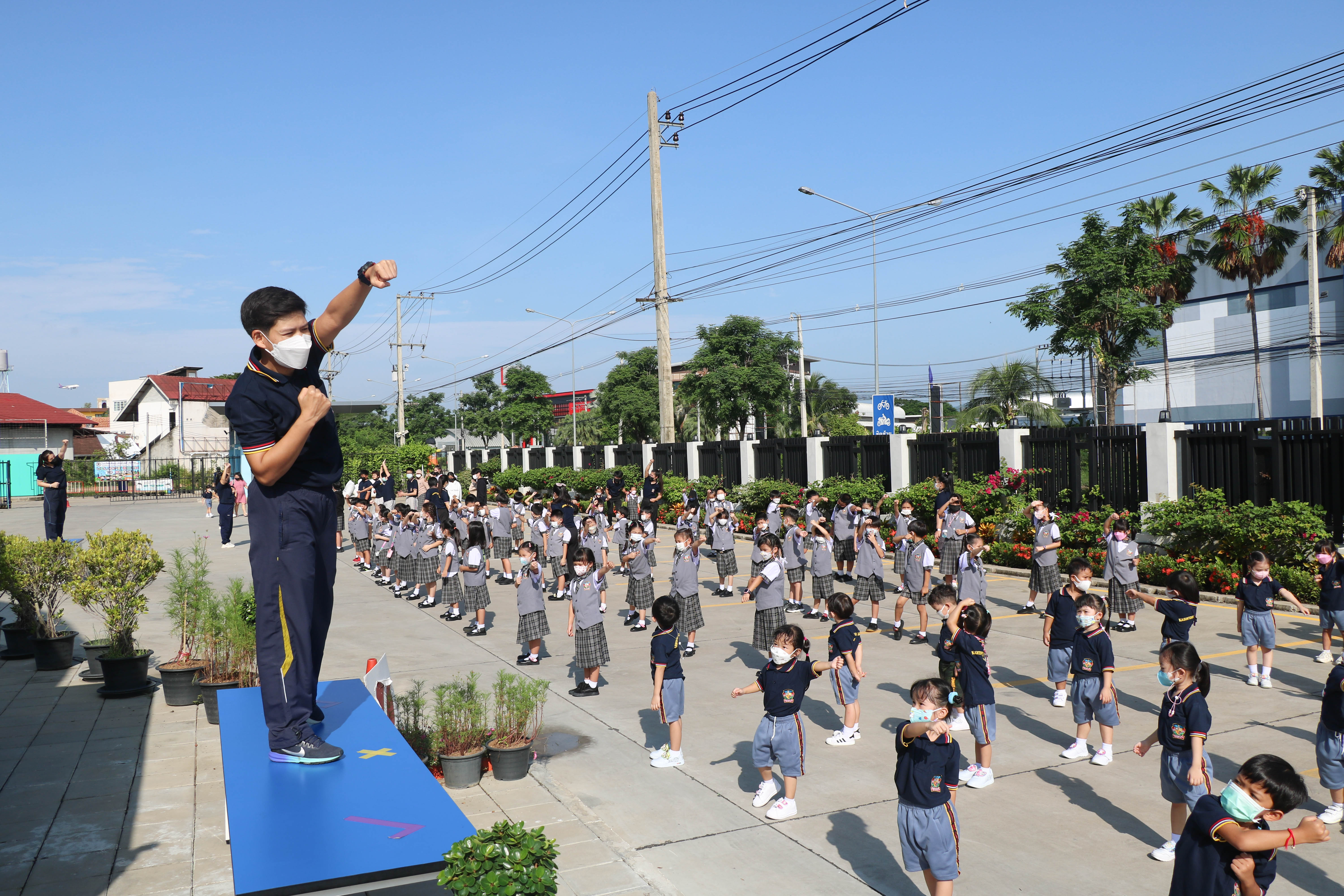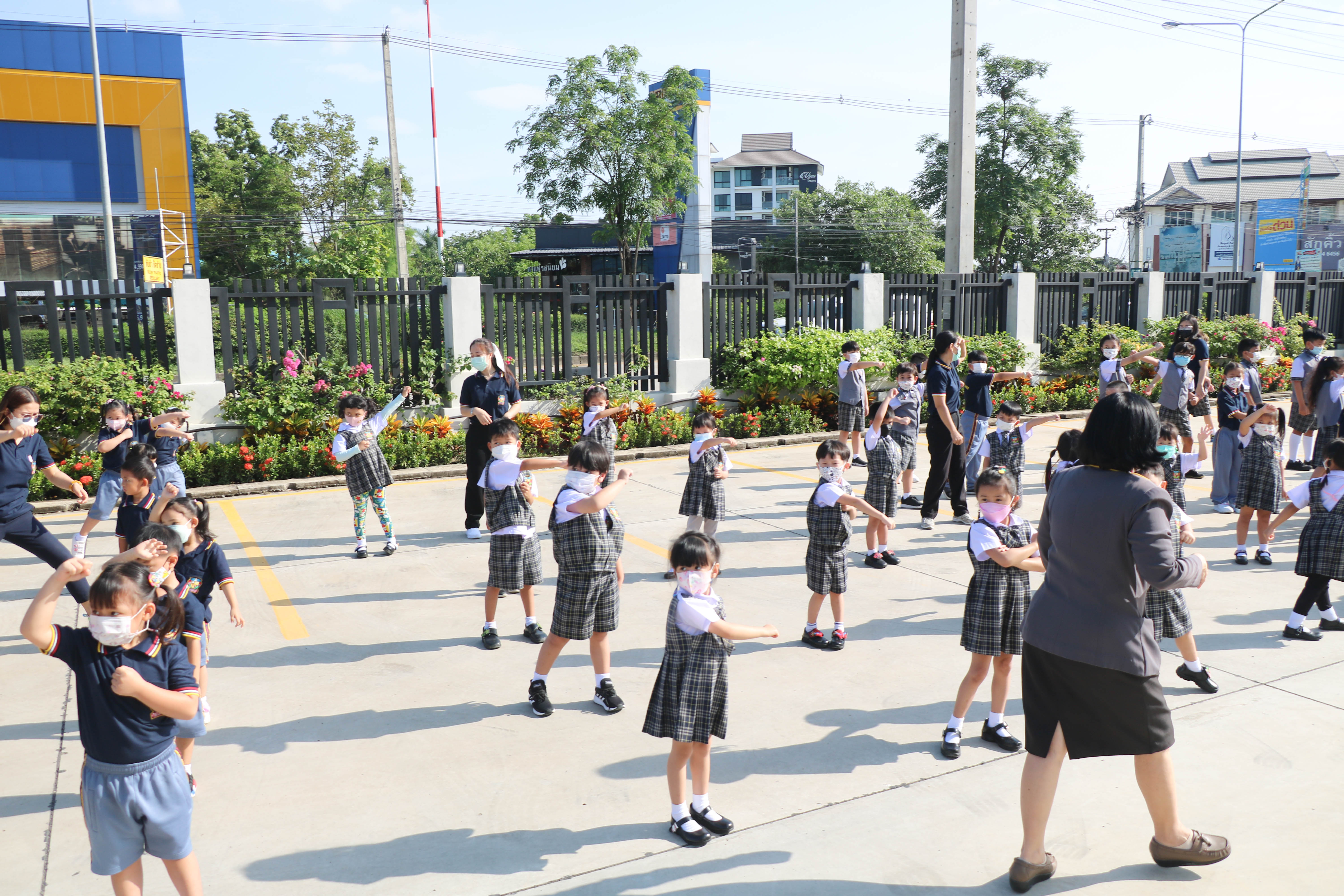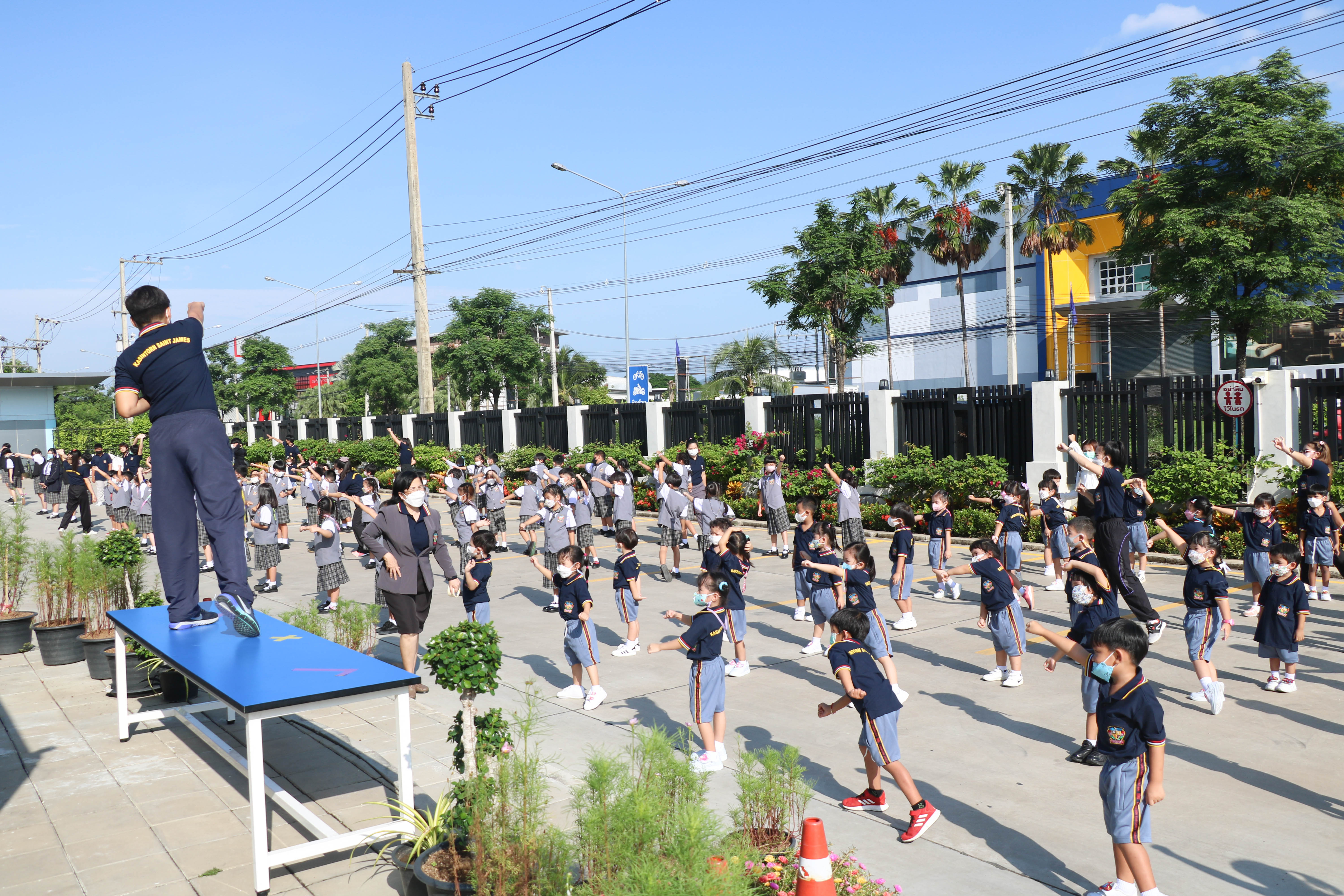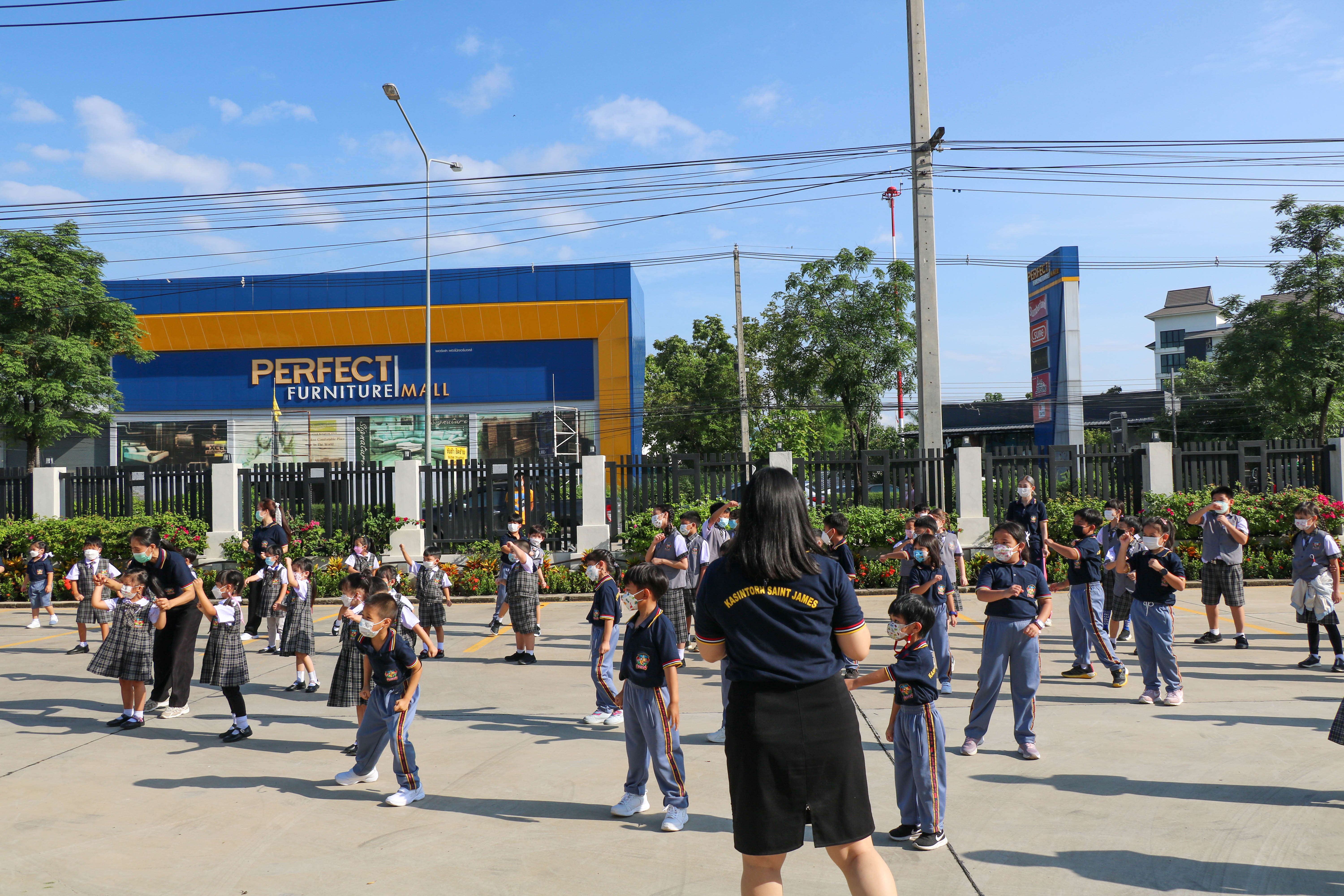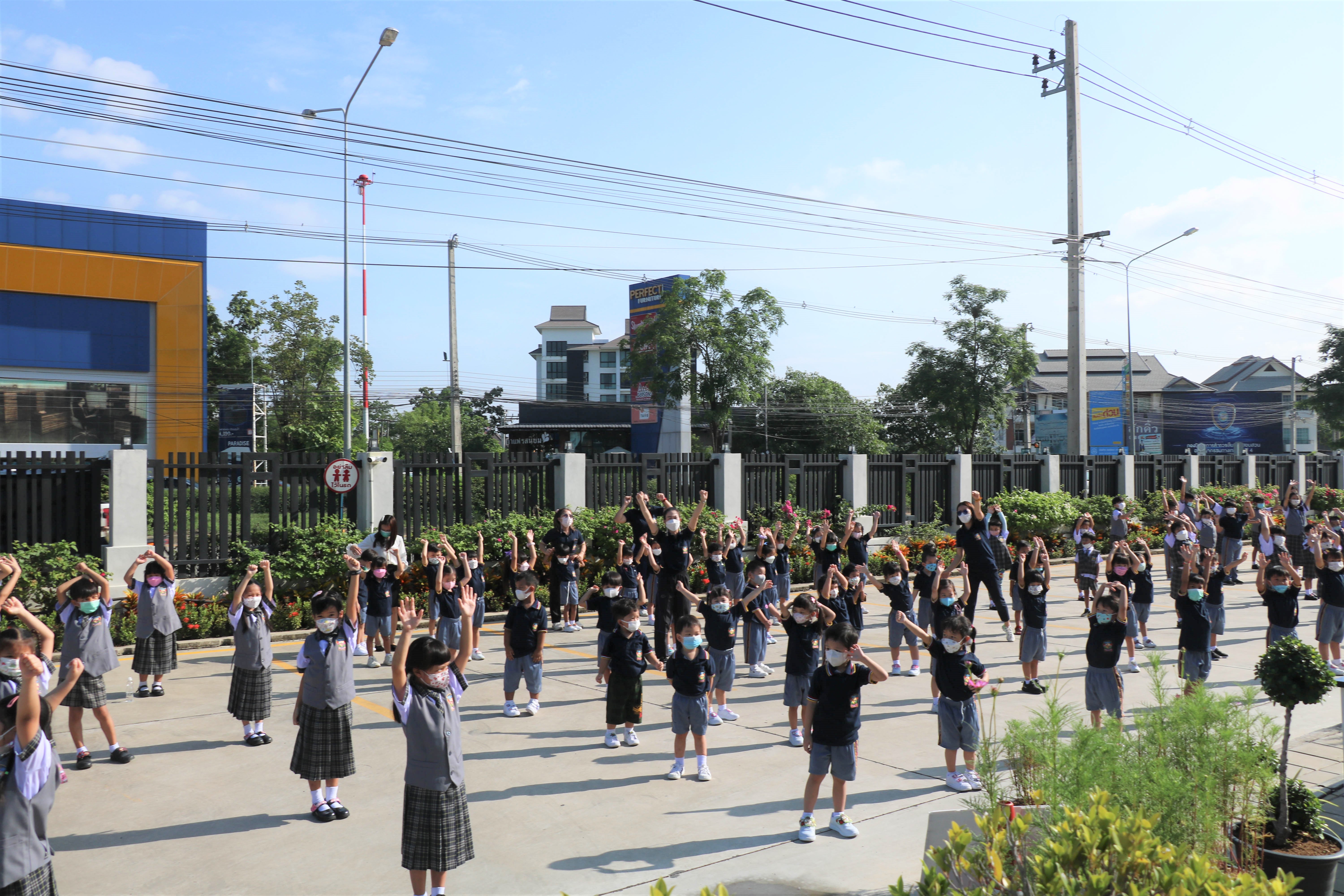 🙋♀️🙋Morning Exercise at Kasintorn St. James Chiang Mai School. It is an activity that promotes good health for children and encourages the love of physical activity for optimum health in which teachers and students have fun exercising together.