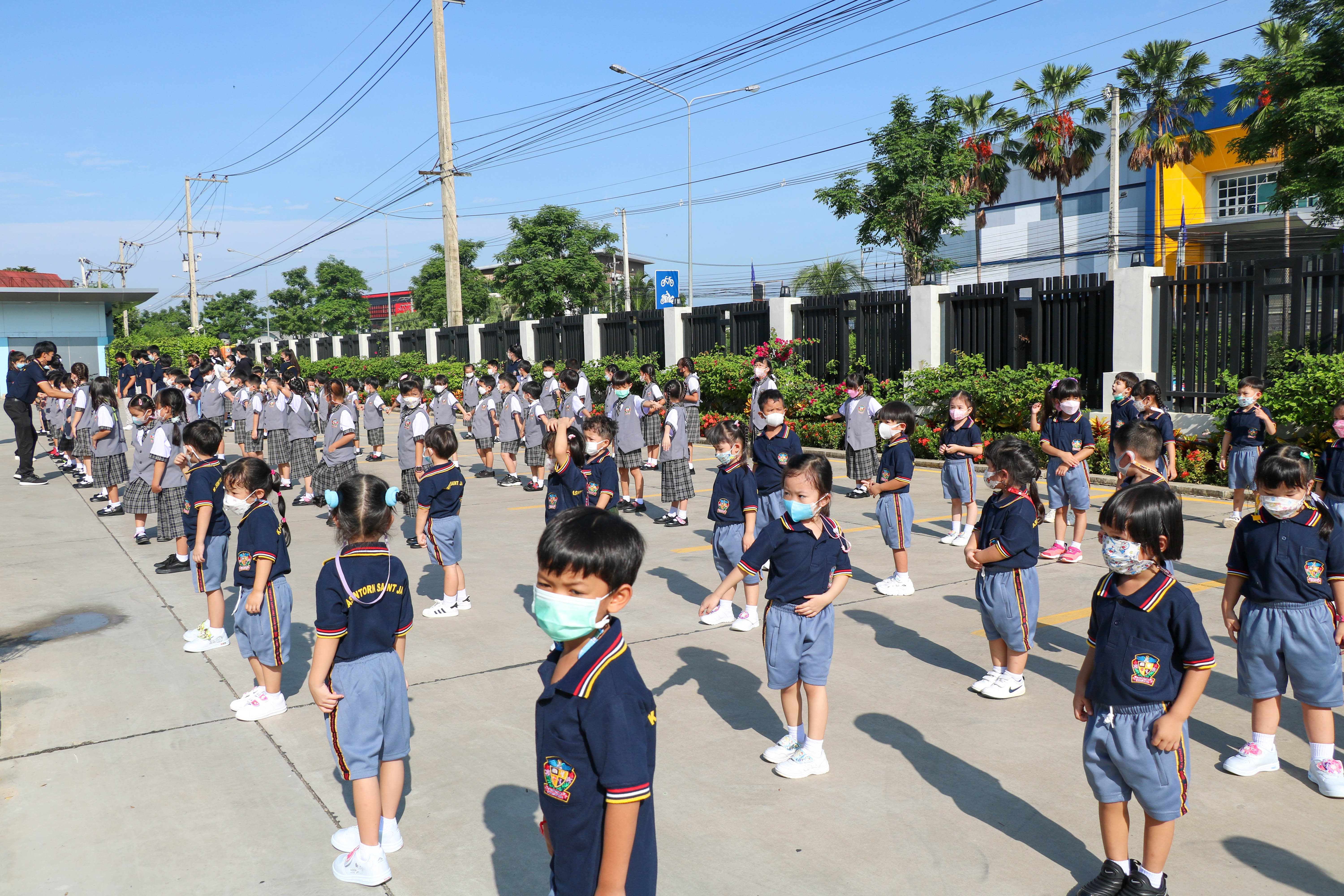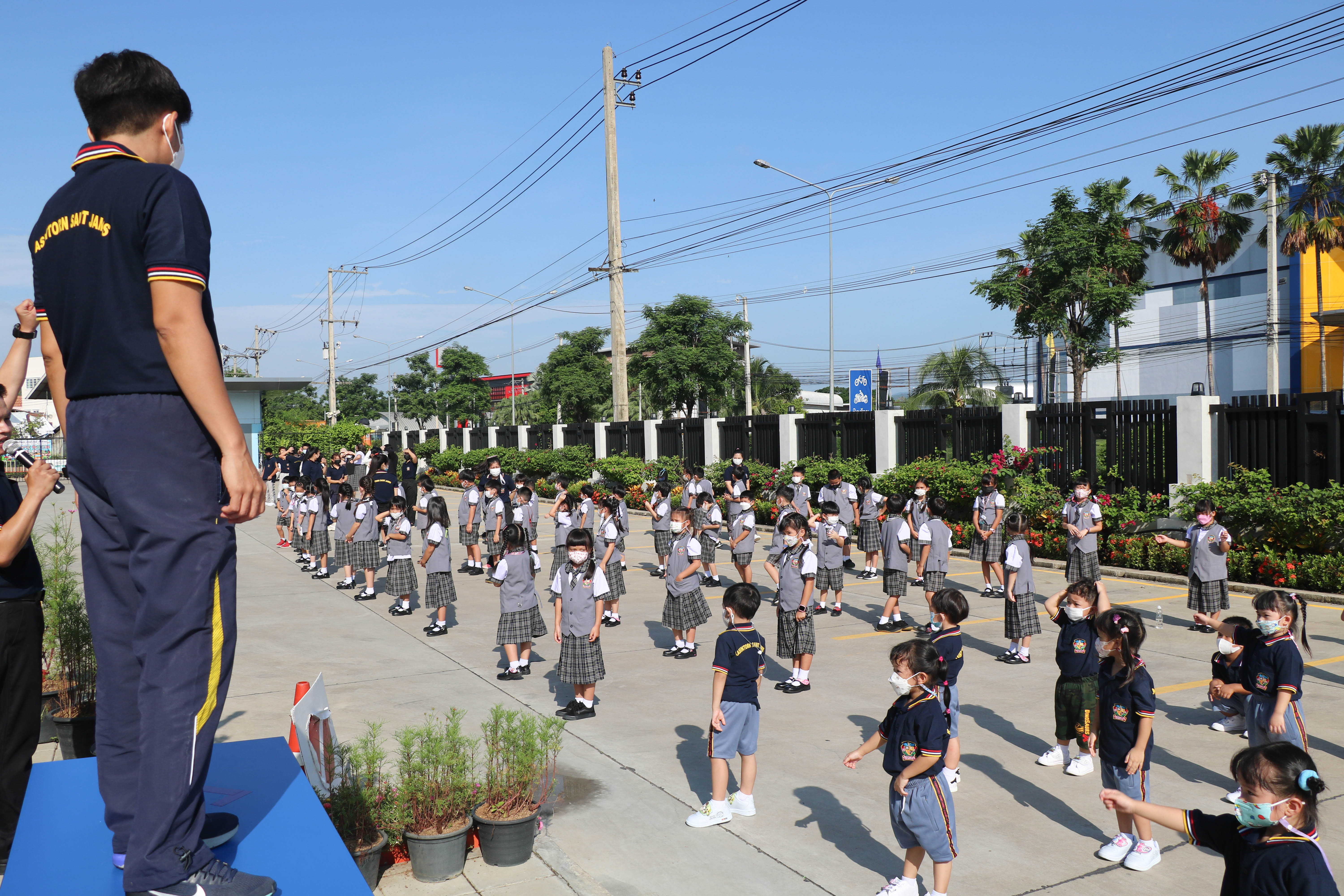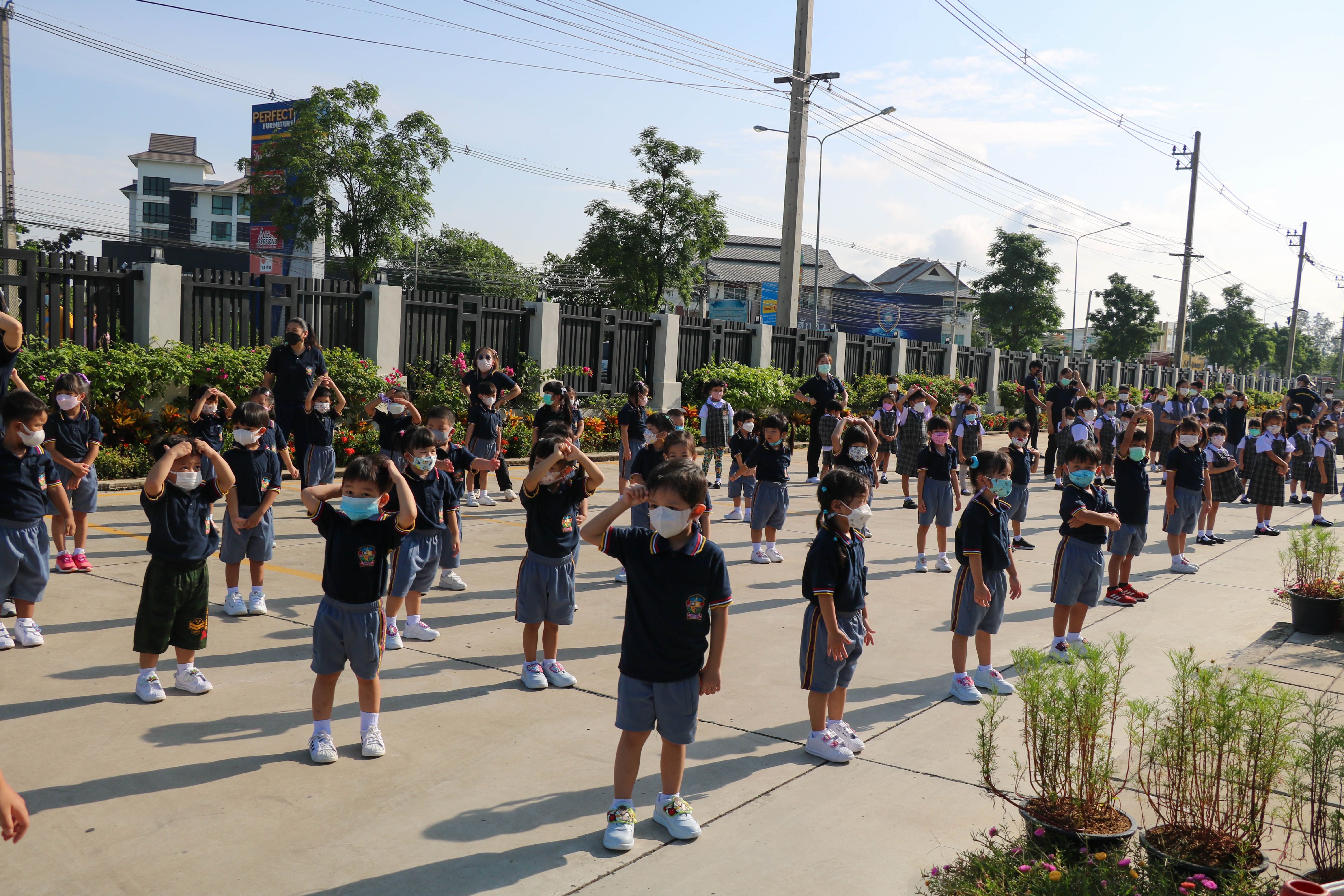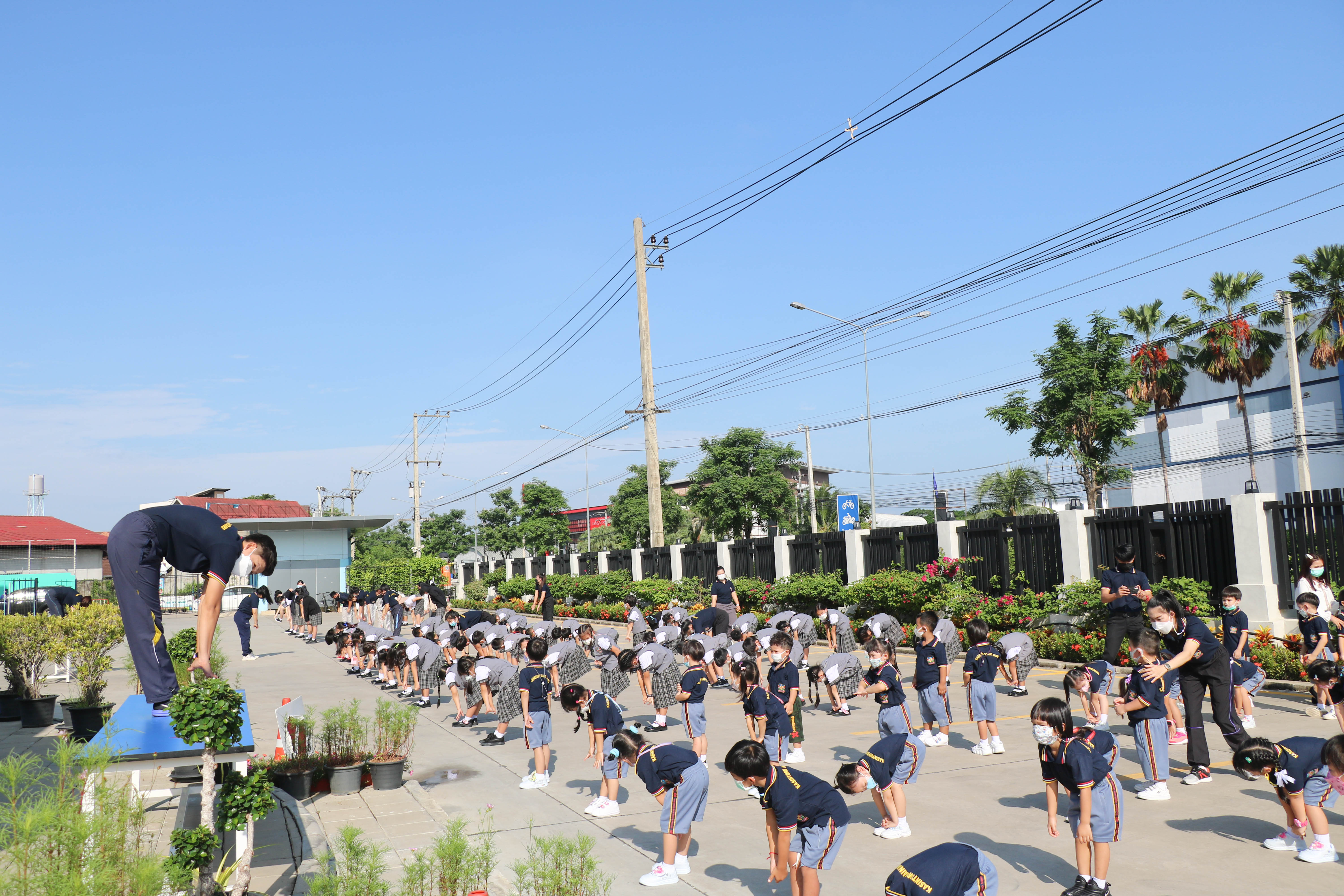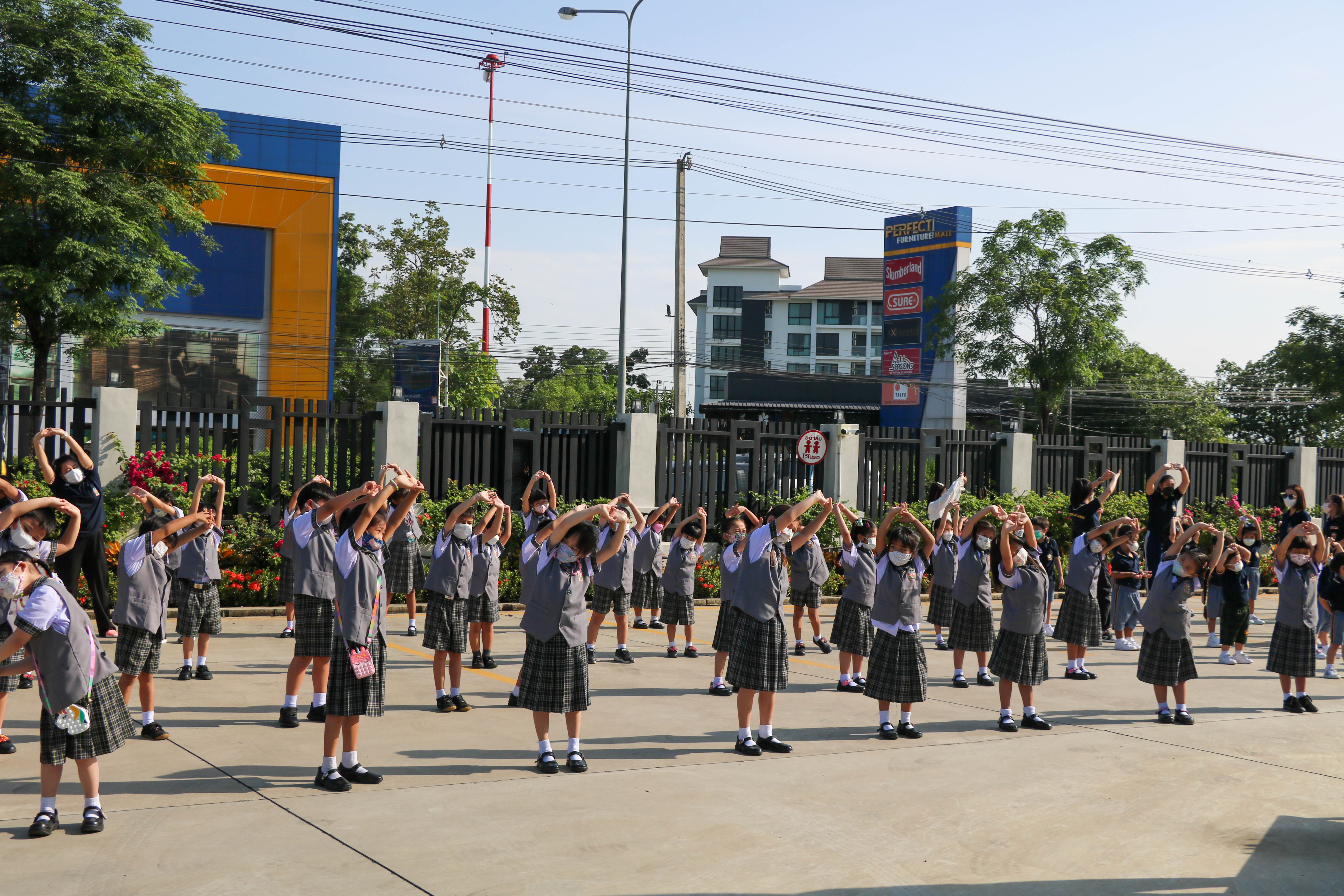 🙋♀️🙋Morning Exercise at Kasintorn St. James Chiang Mai School. It is an activity that promotes good health for children and encourages the love of physical activity for optimum health in which teachers and students have fun exercising together.