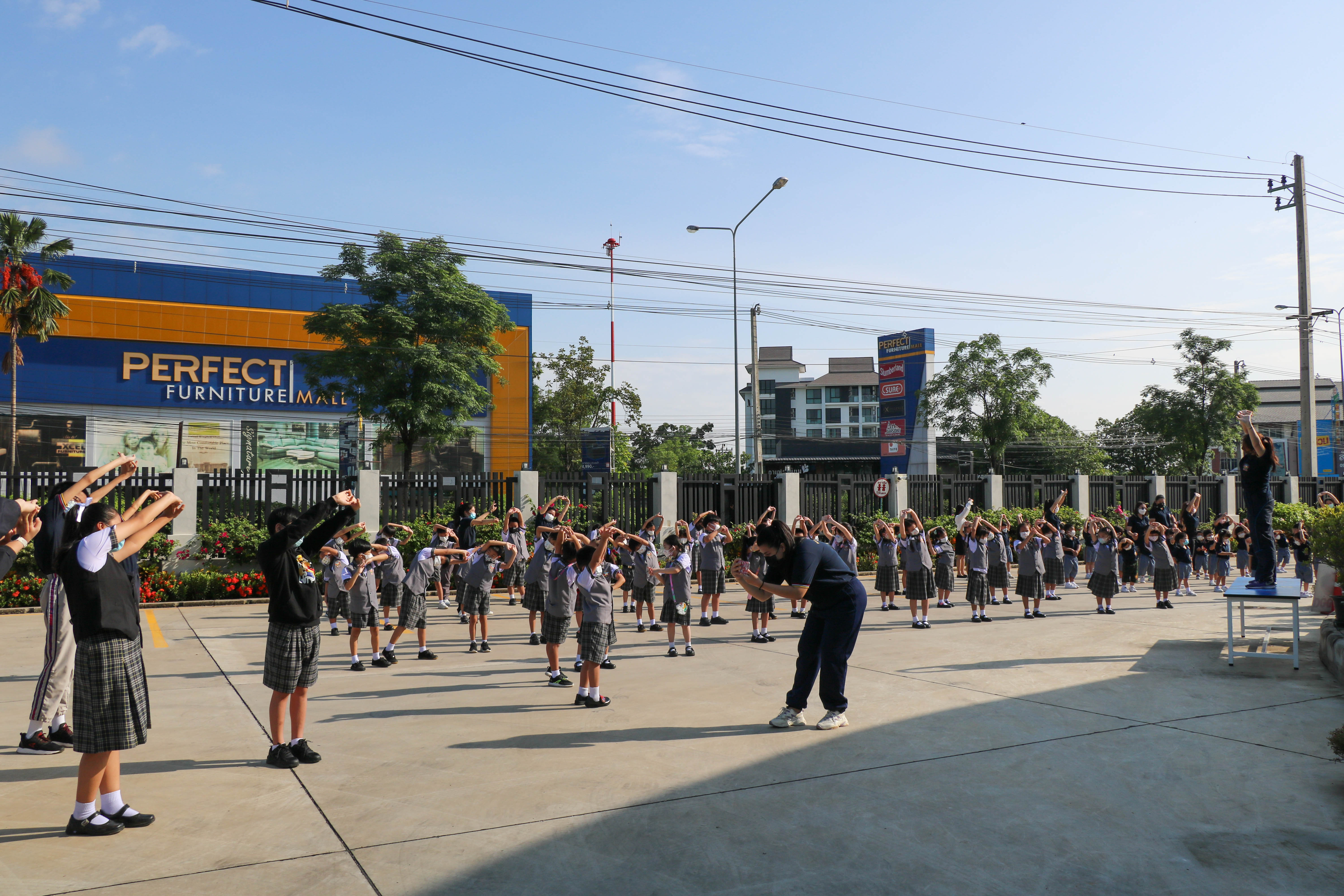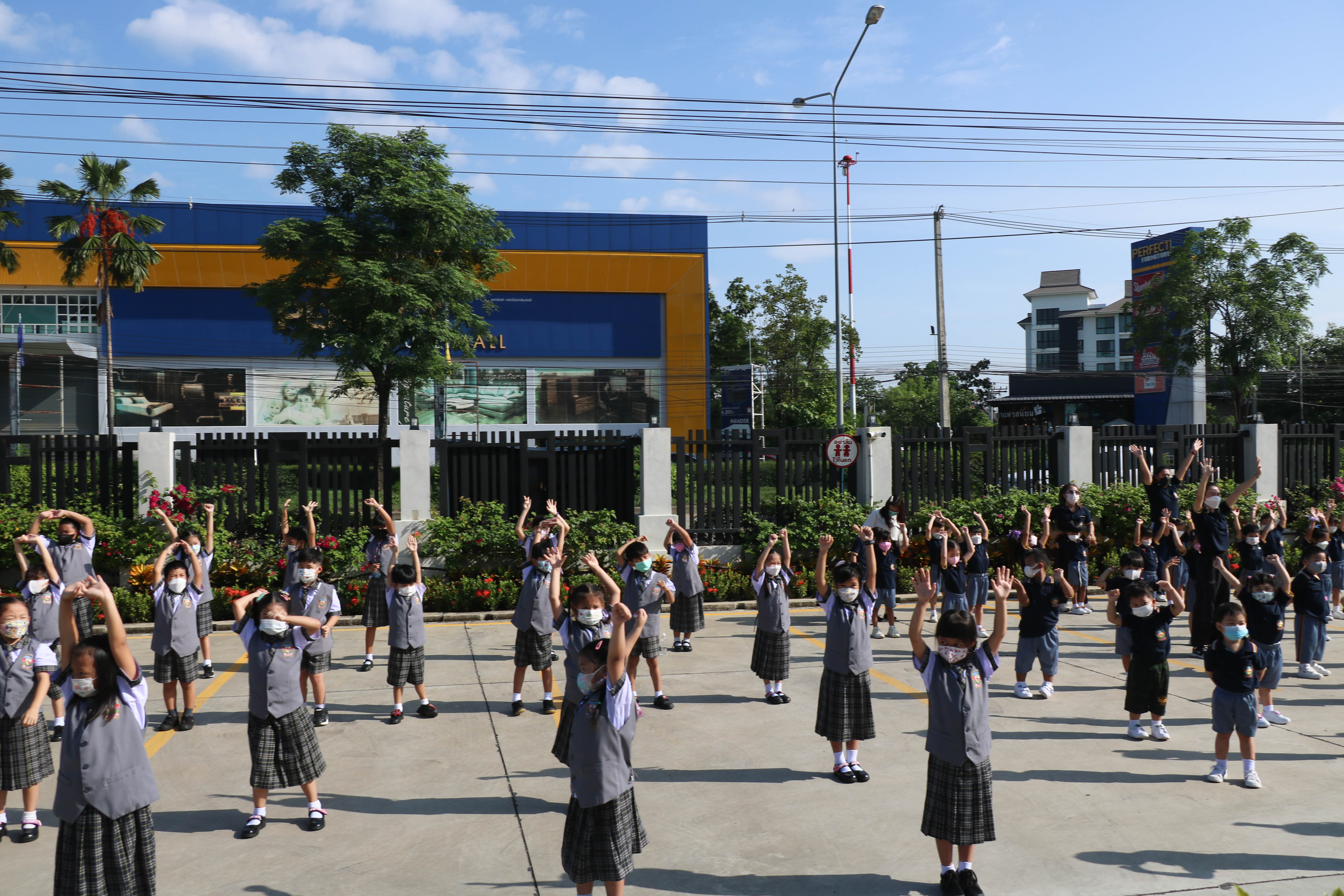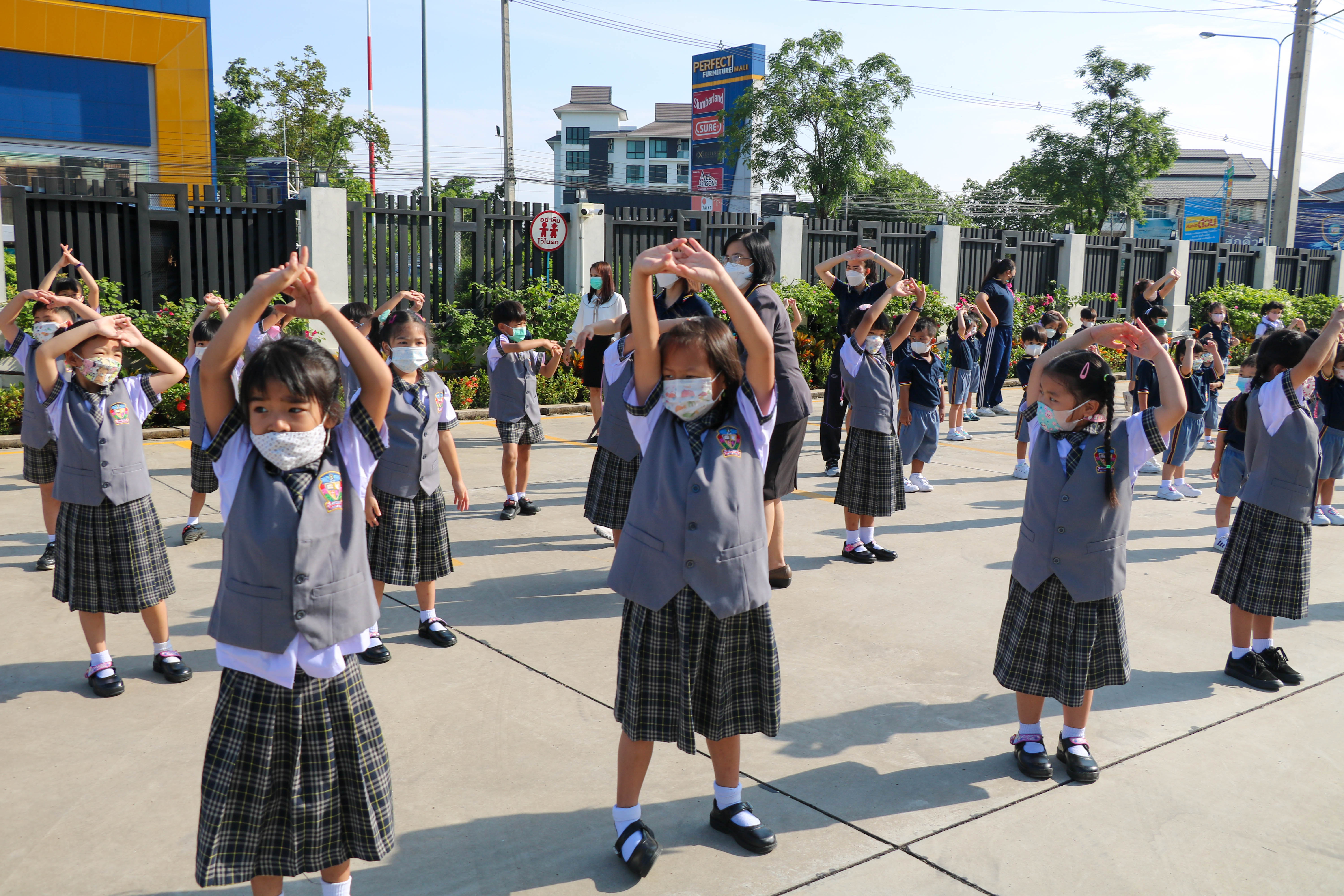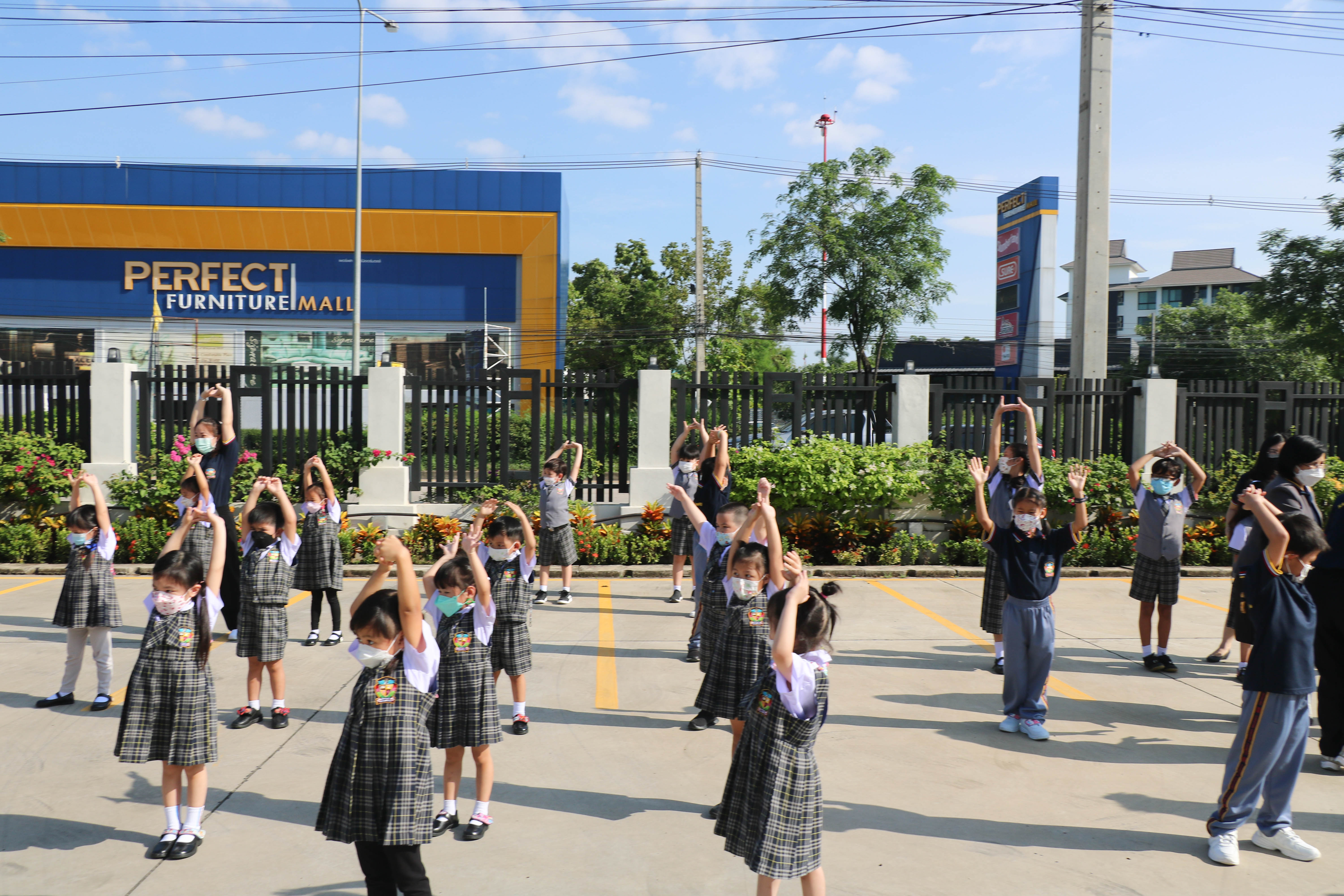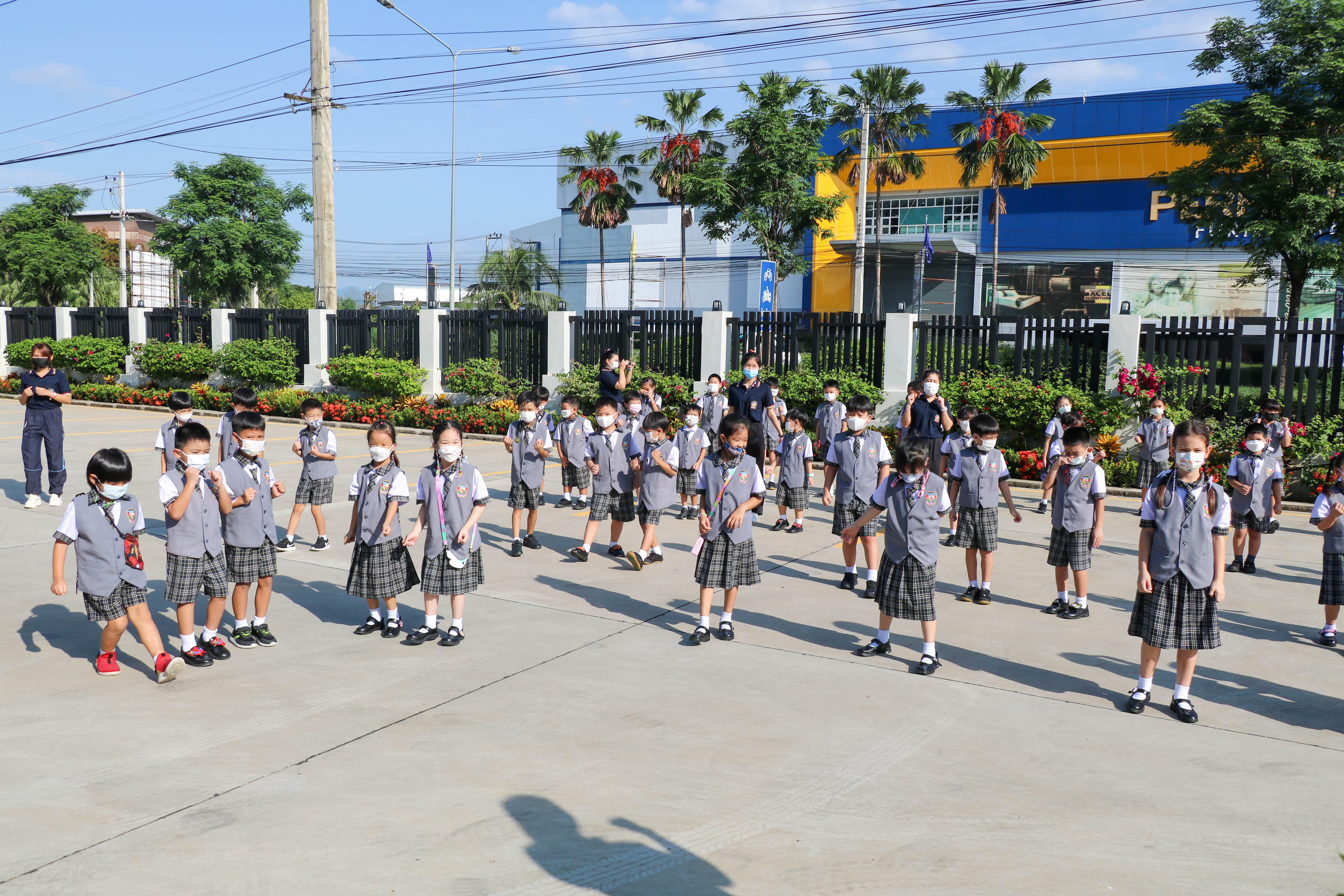 🙋♀️🙋Morning Exercise at Kasintorn St. James Chiang Mai School. It is an activity that promotes good health for children and encourages the love of physical activity for optimum health in which teachers and students have fun exercising together.