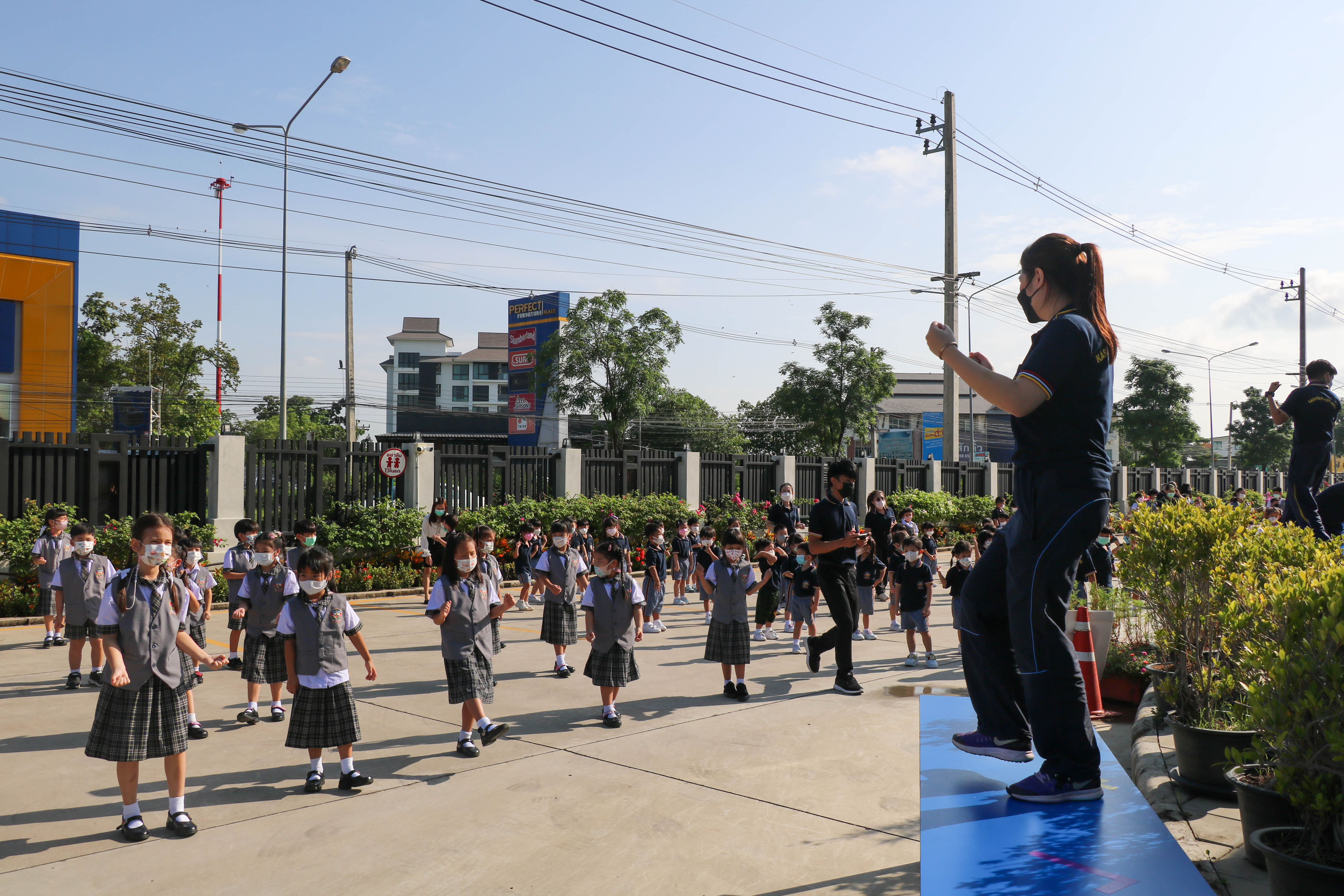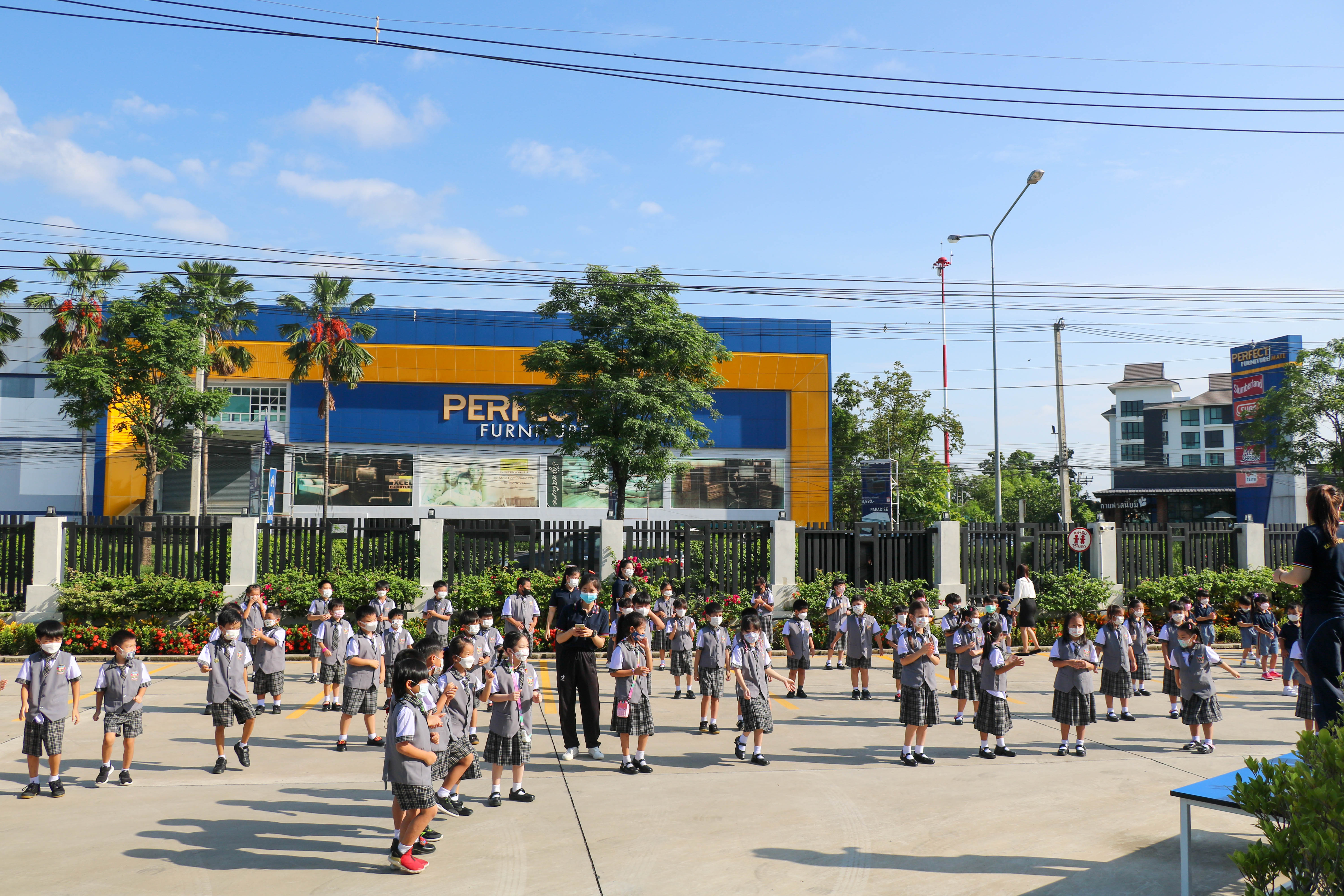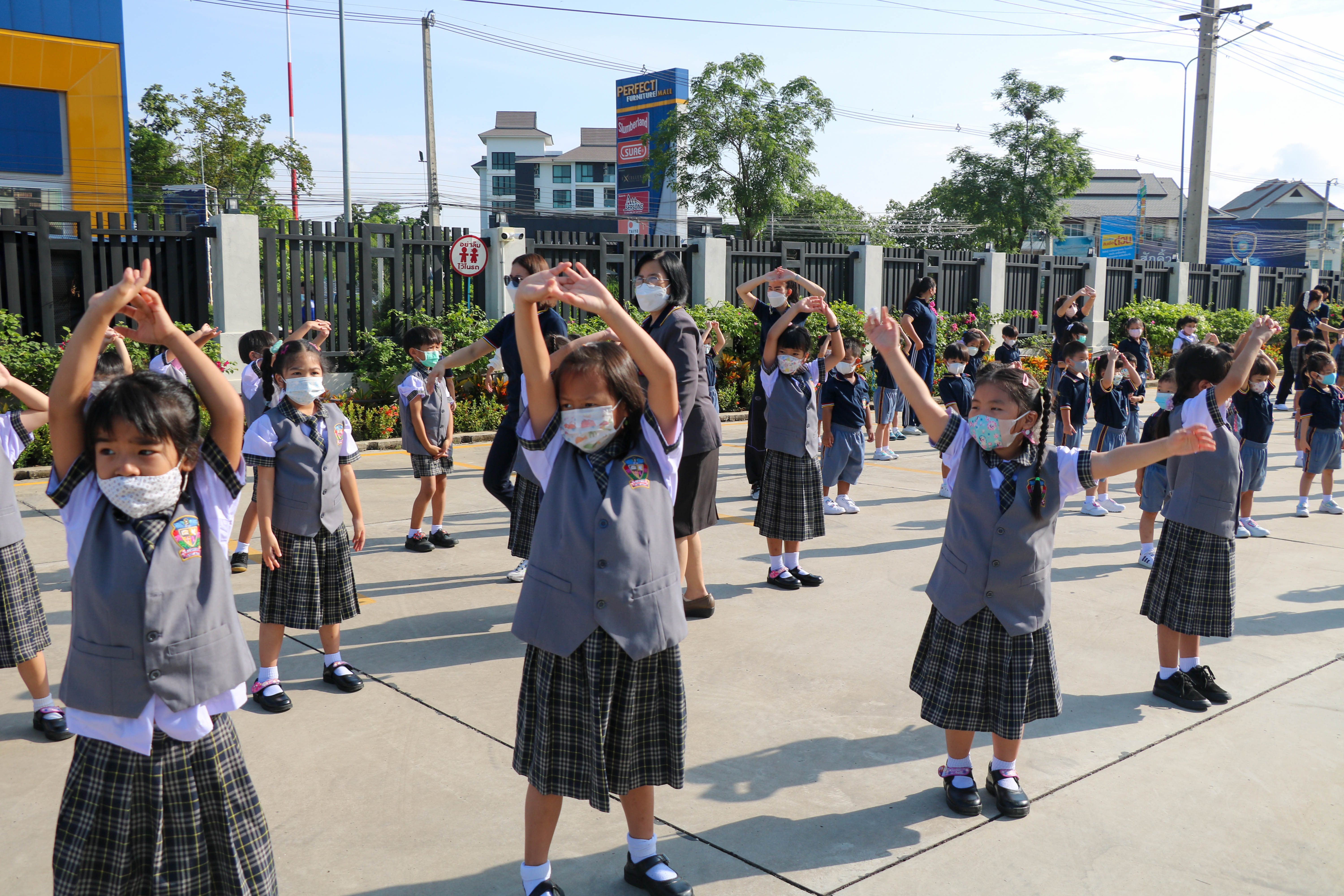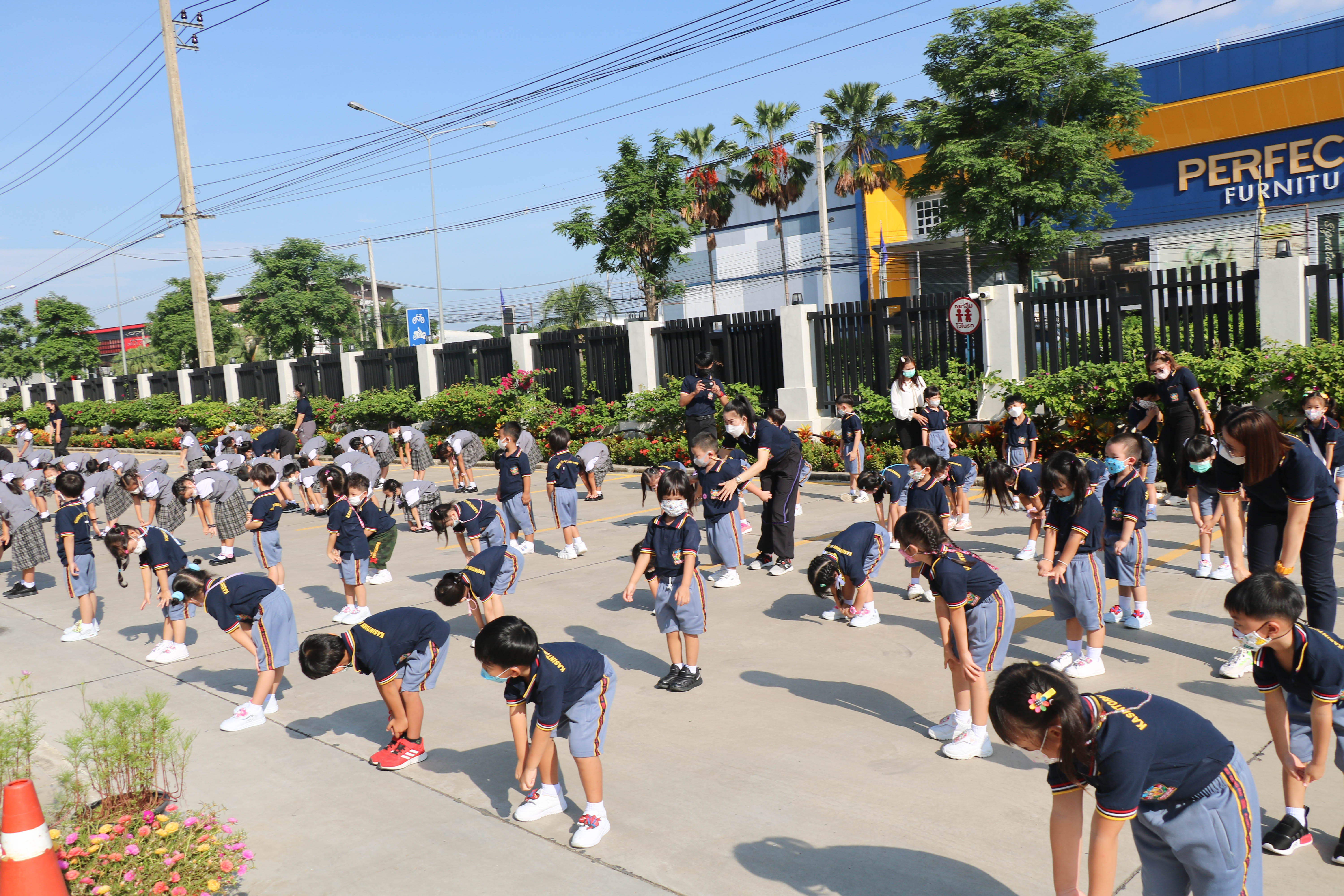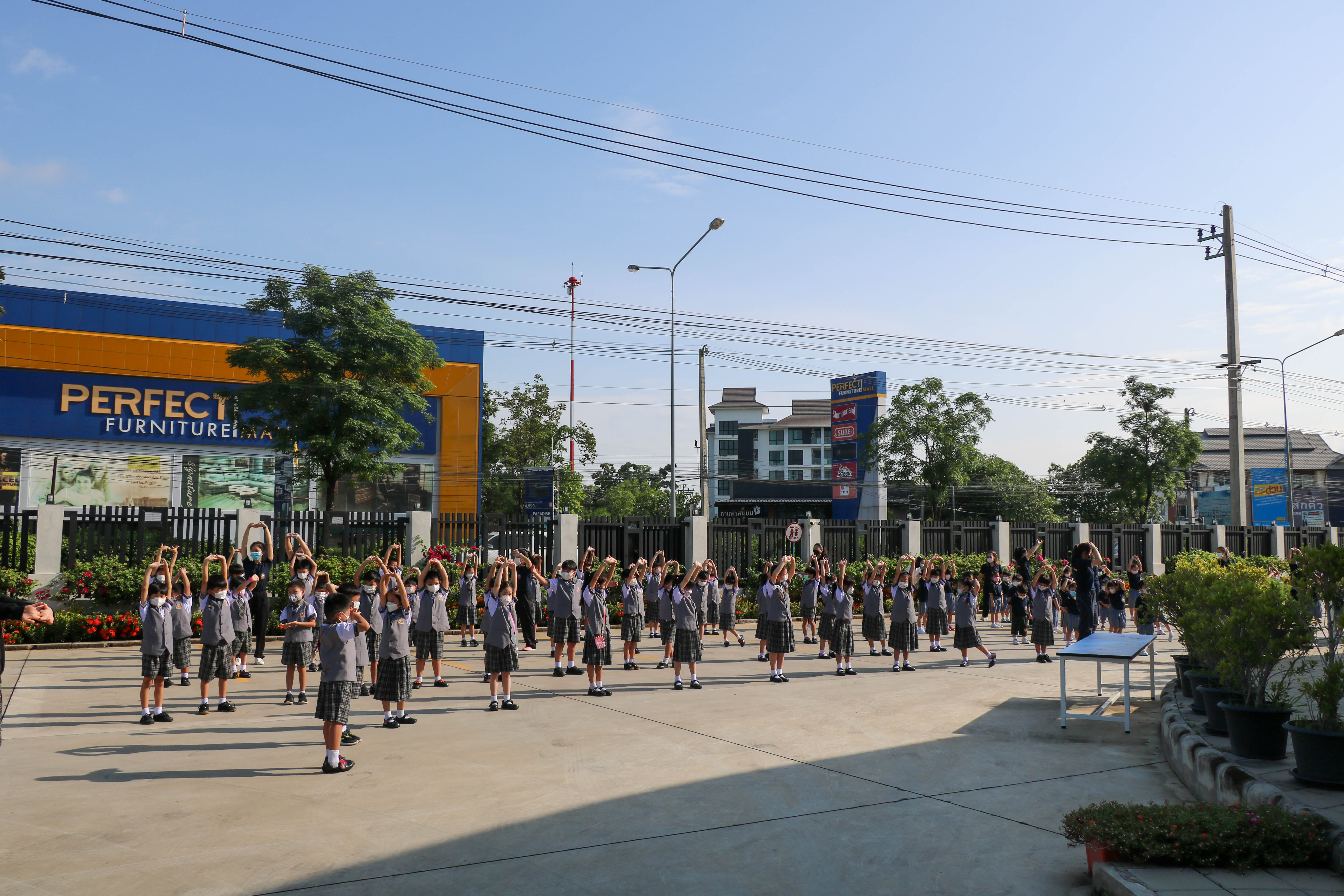 🙋♀️🙋Morning Exercise at Kasintorn St. James Chiang Mai School. It is an activity that promotes good health for children and encourages the love of physical activity for optimum health in which teachers and students have fun exercising together.