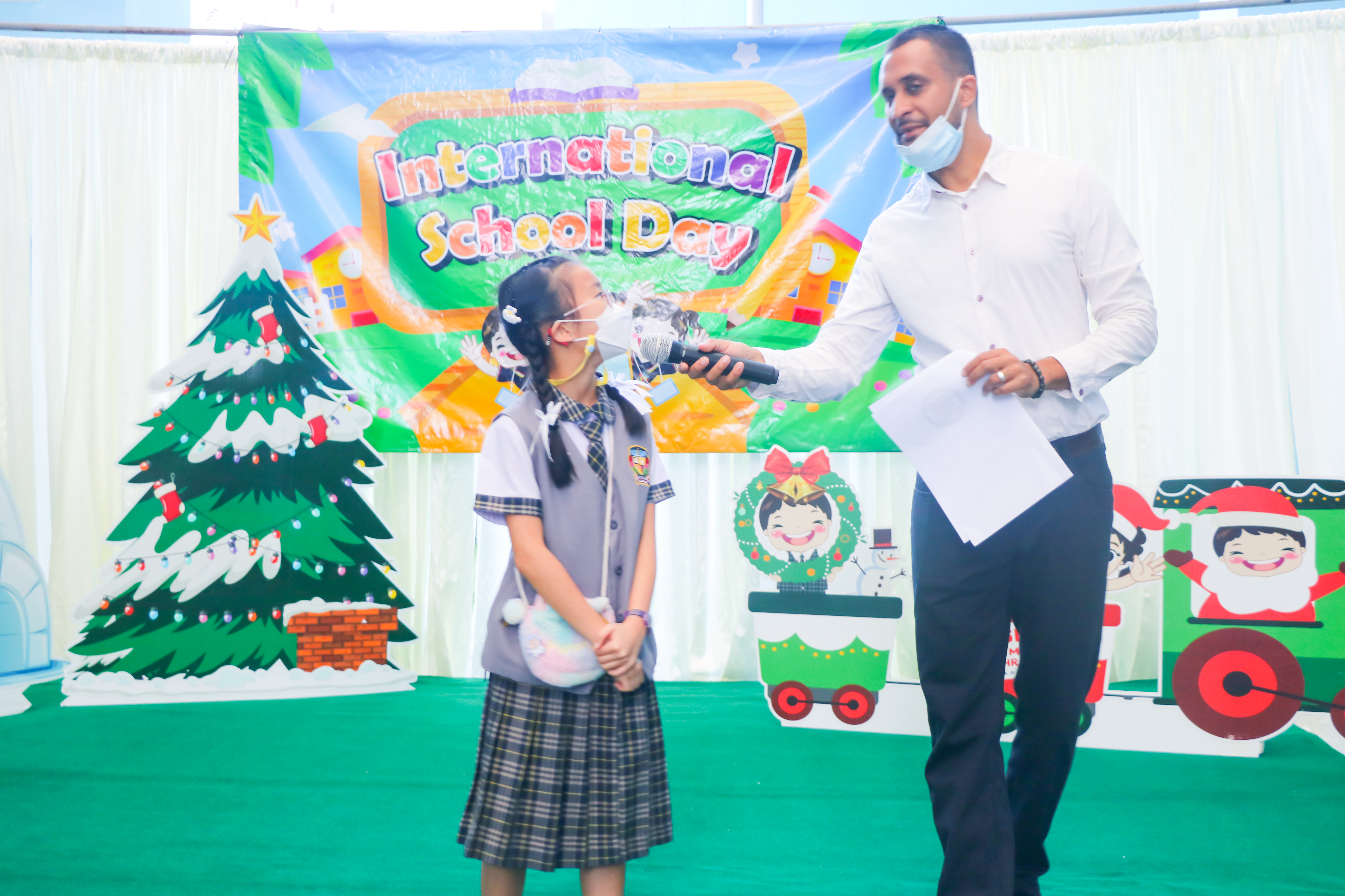 For this week's International Day, foreign teachers organized an activity on the topic " What would you like to be" where students came out to speak and answer questions in English on the stage. This is done to practice and improve speaking with confidence in front of the public.