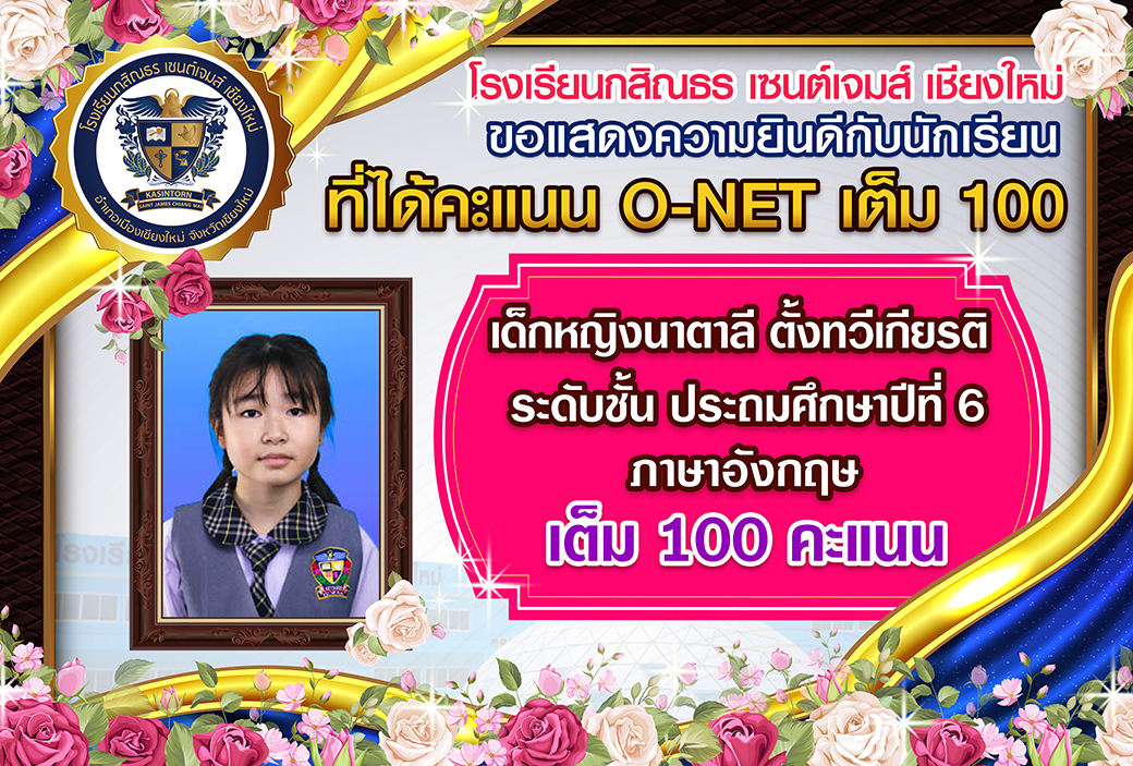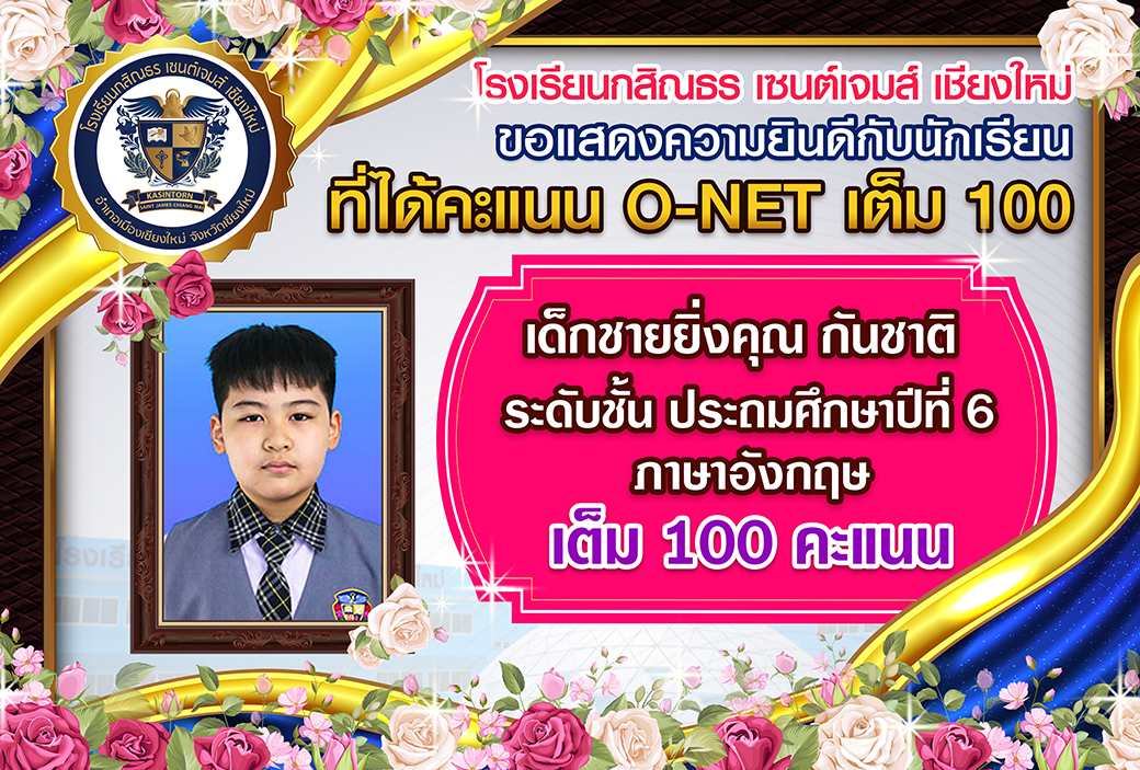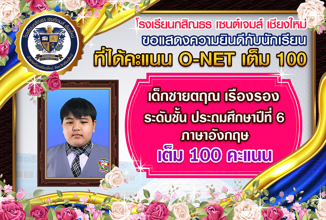 ขอแสดงความยินดีกับนักเรียนระดับชั้นประถมศึกษาปีที่ 6 ที่ได้คะแนน O-NET ภาษาอังกฤษ เต็ม 100 คะแนน ปีการศึกษา 2565