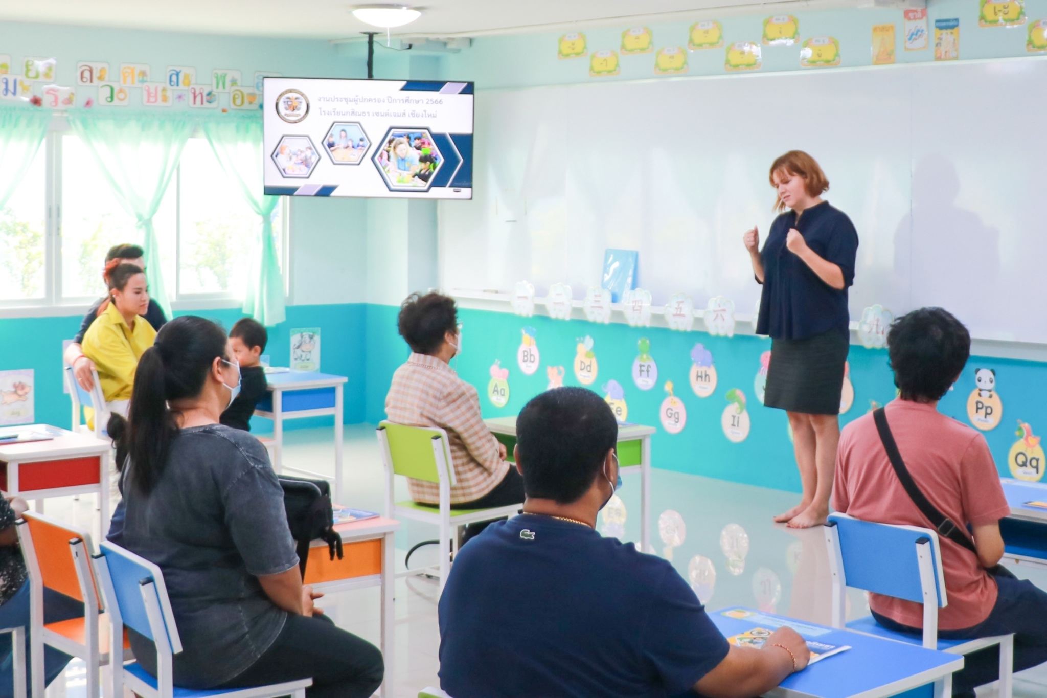 On May 8th, 2566, Kasintorn Saint James Chiang Mai School organized a meeting for parents of new students to provide an understanding and explanation of the school's educational management policies, student care, and readiness for the opening of the 2566 academic year.