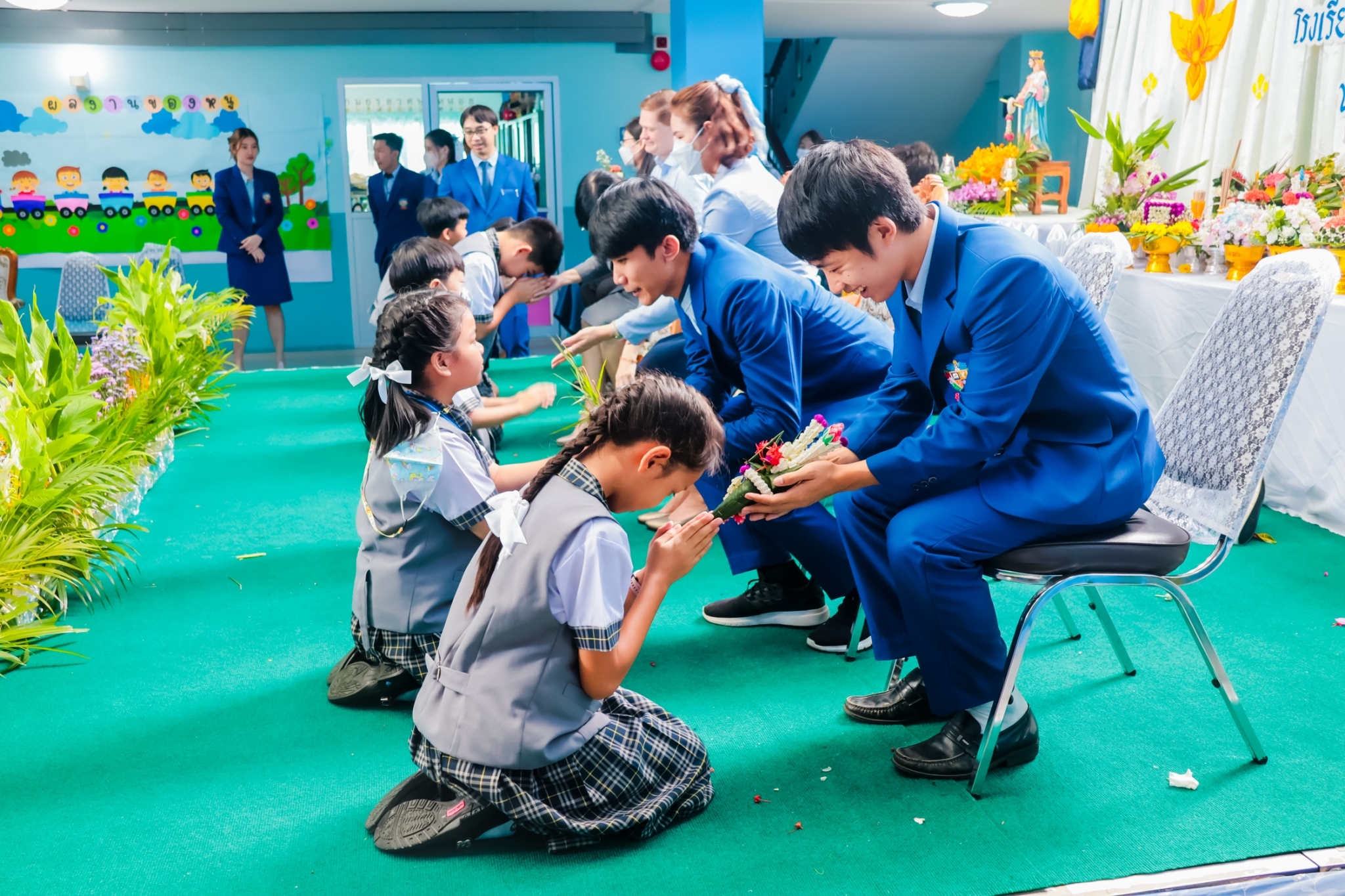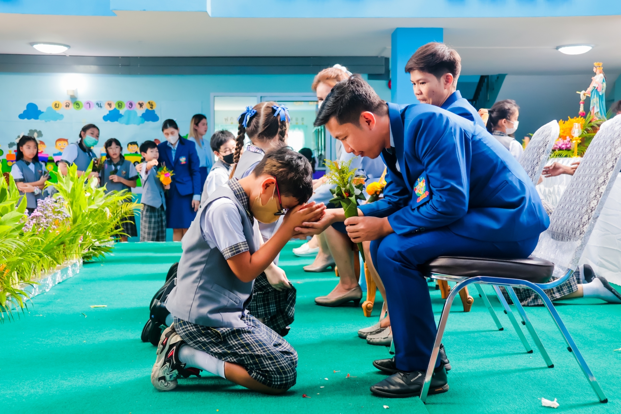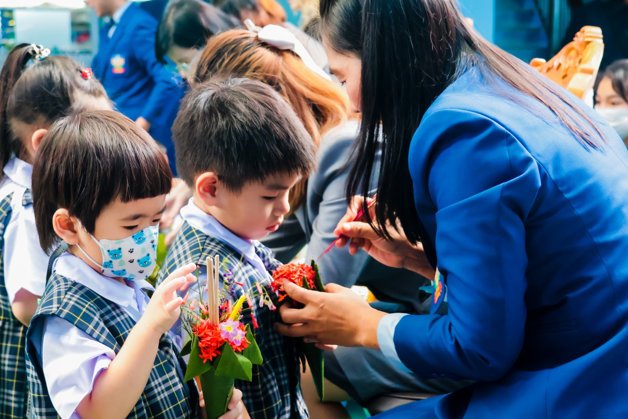 Kasintorn Saint James Chiang Mai School organized a Wai Khru ceremony for the academic year 2023. Students from Kindergarten to secondary levels participated in the ceremony to pay respect to their teachers and show their love by presenting them with flowers.
