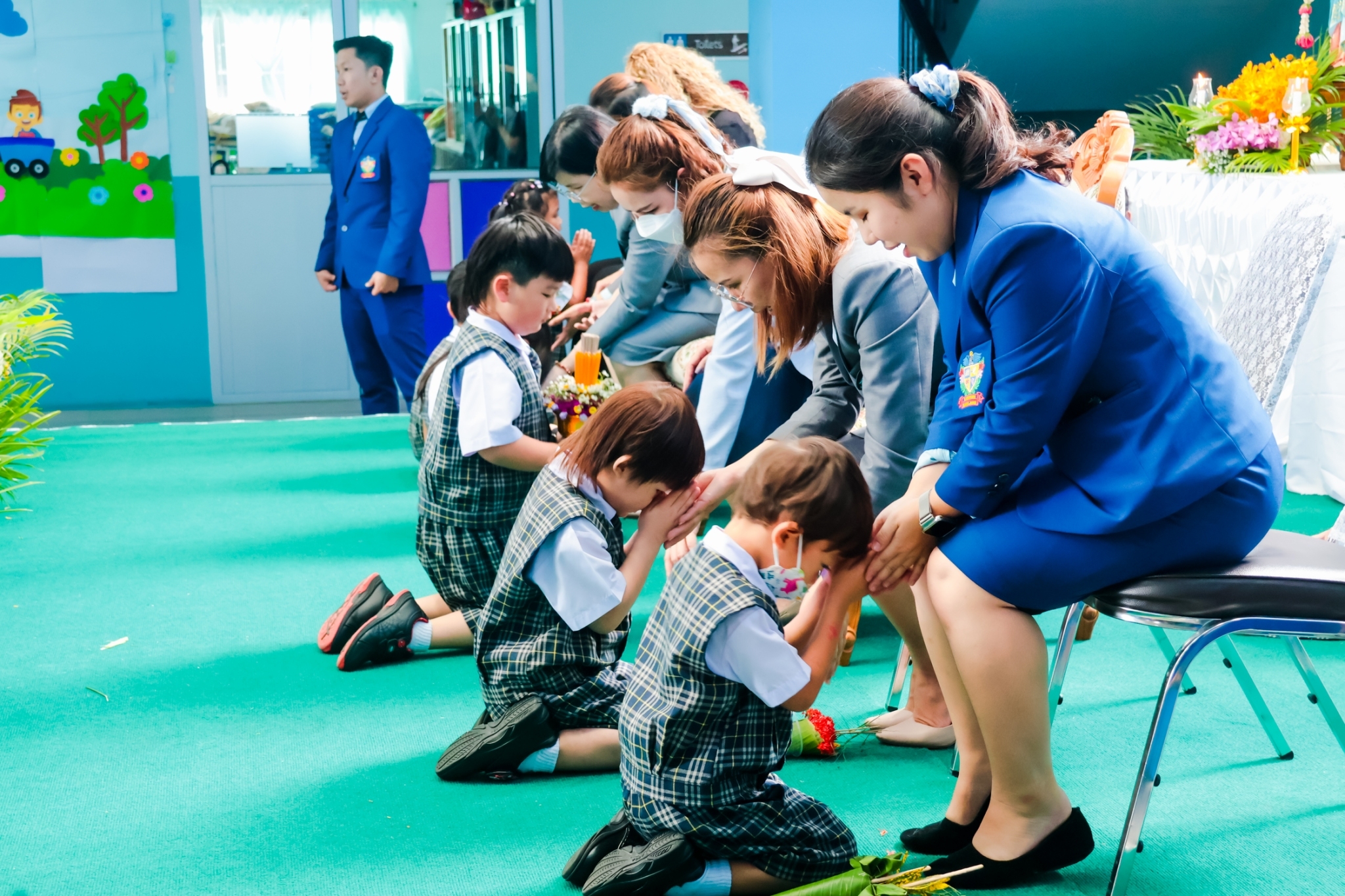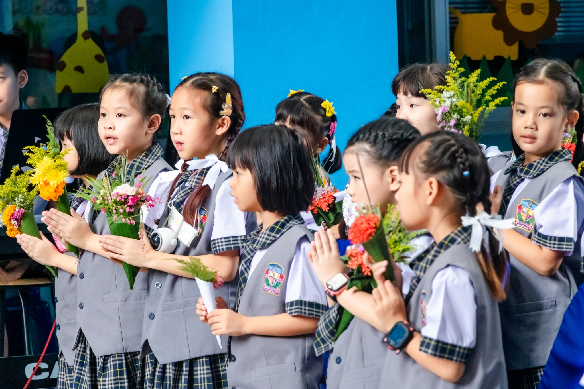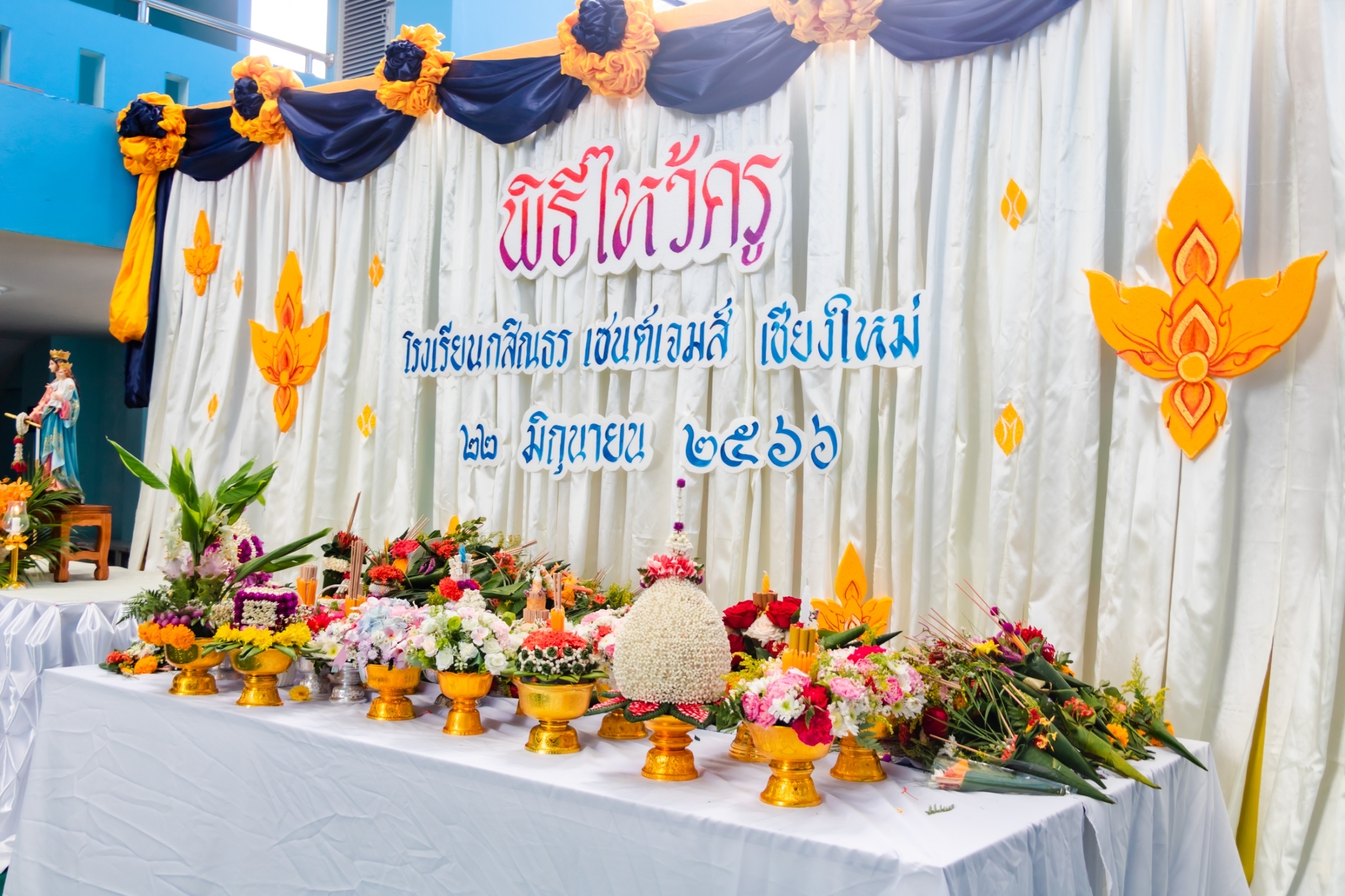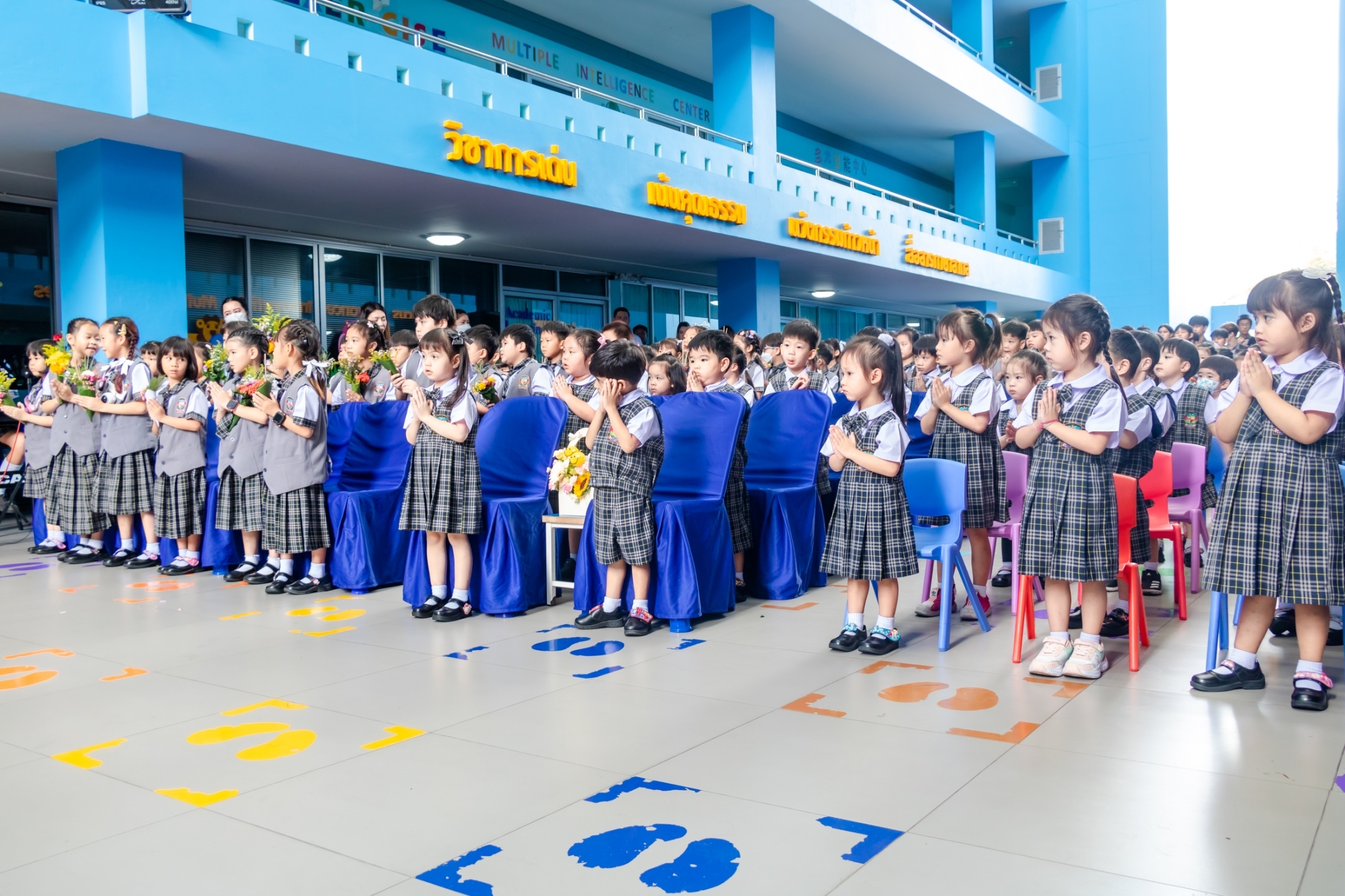 Kasintorn Saint James Chiang Mai School organized a Wai Khru ceremony for the academic year 2023. Students from Kindergarten to secondary levels participated in the ceremony to pay respect to their teachers and show their love by presenting them with flowers.