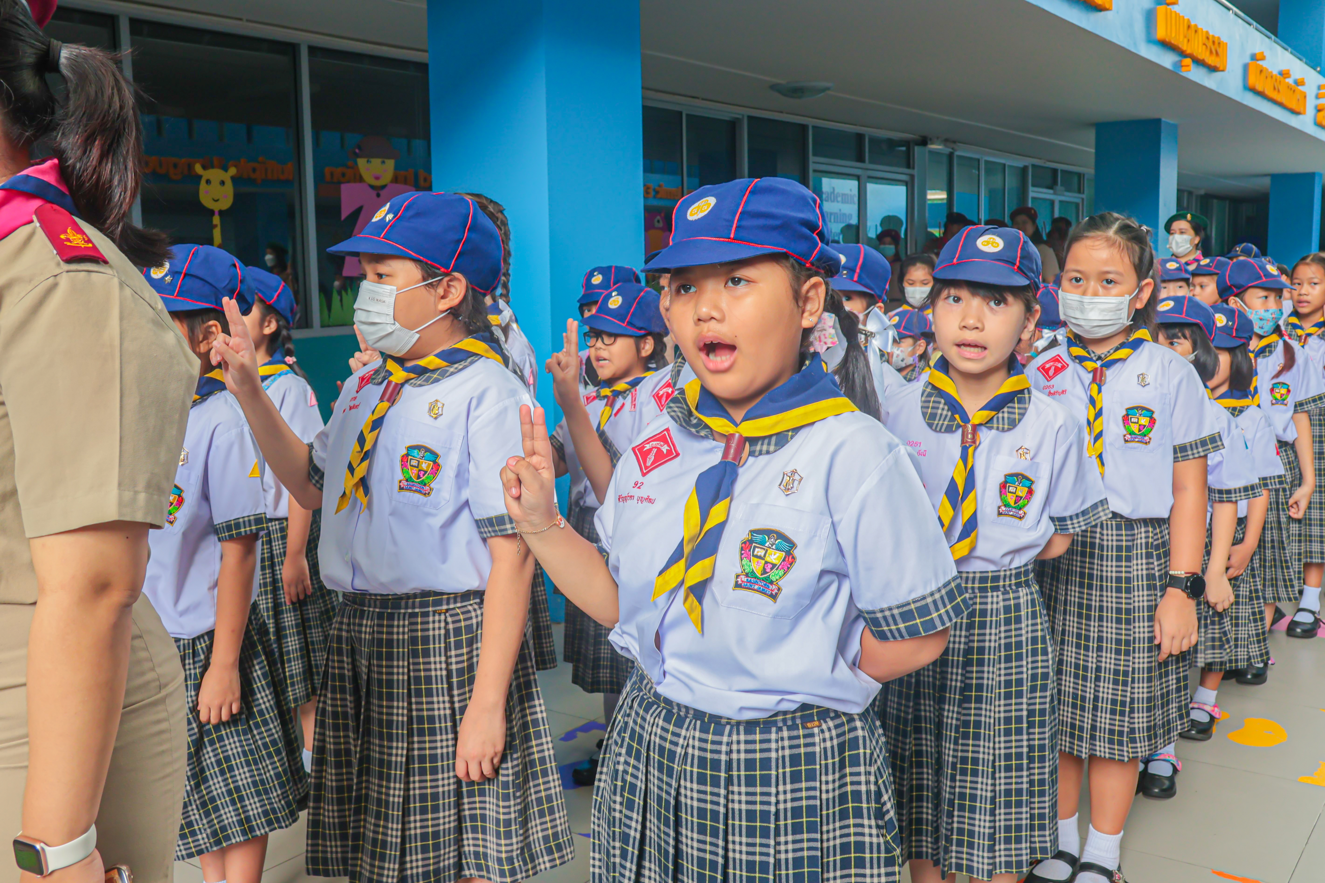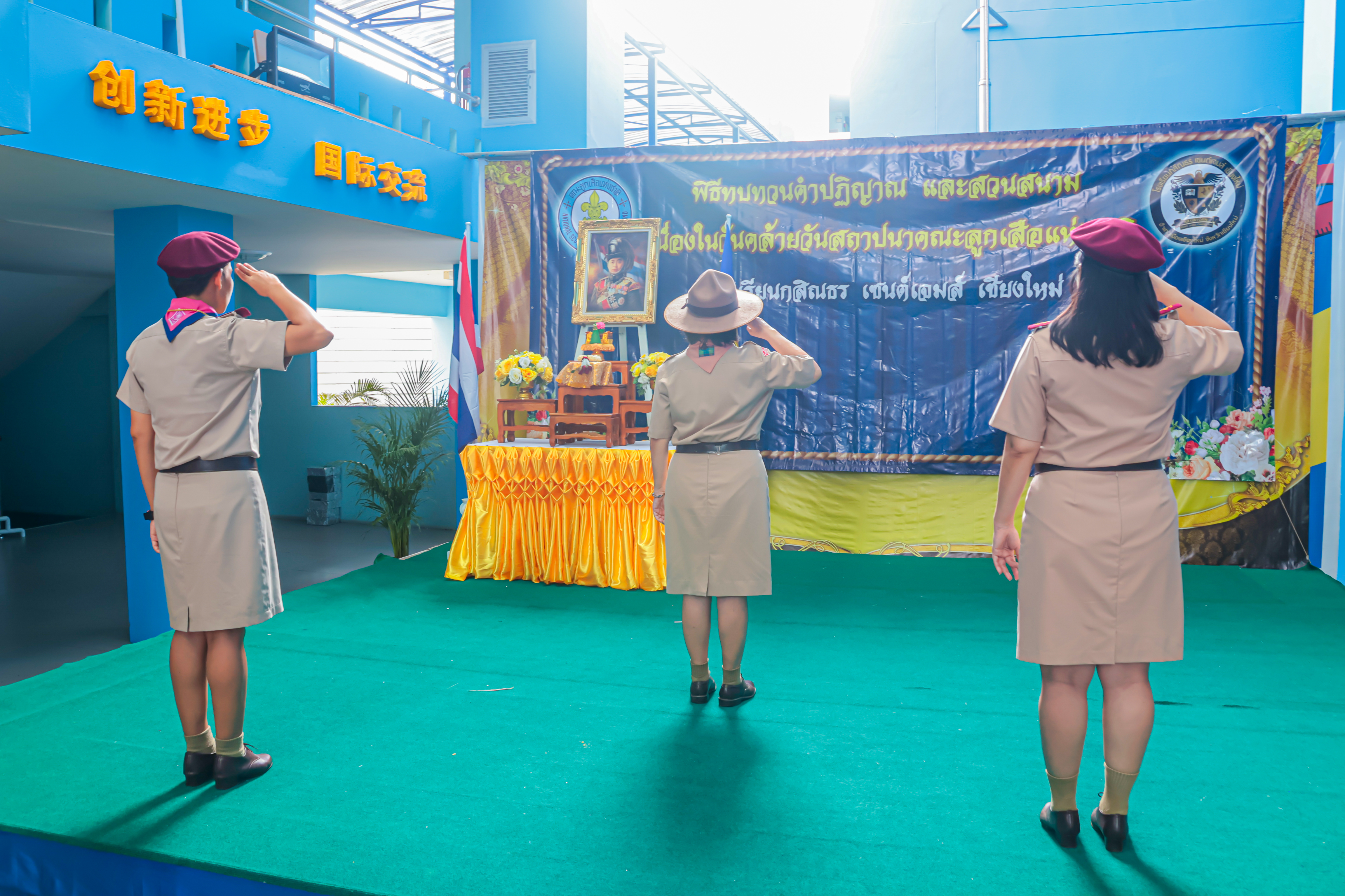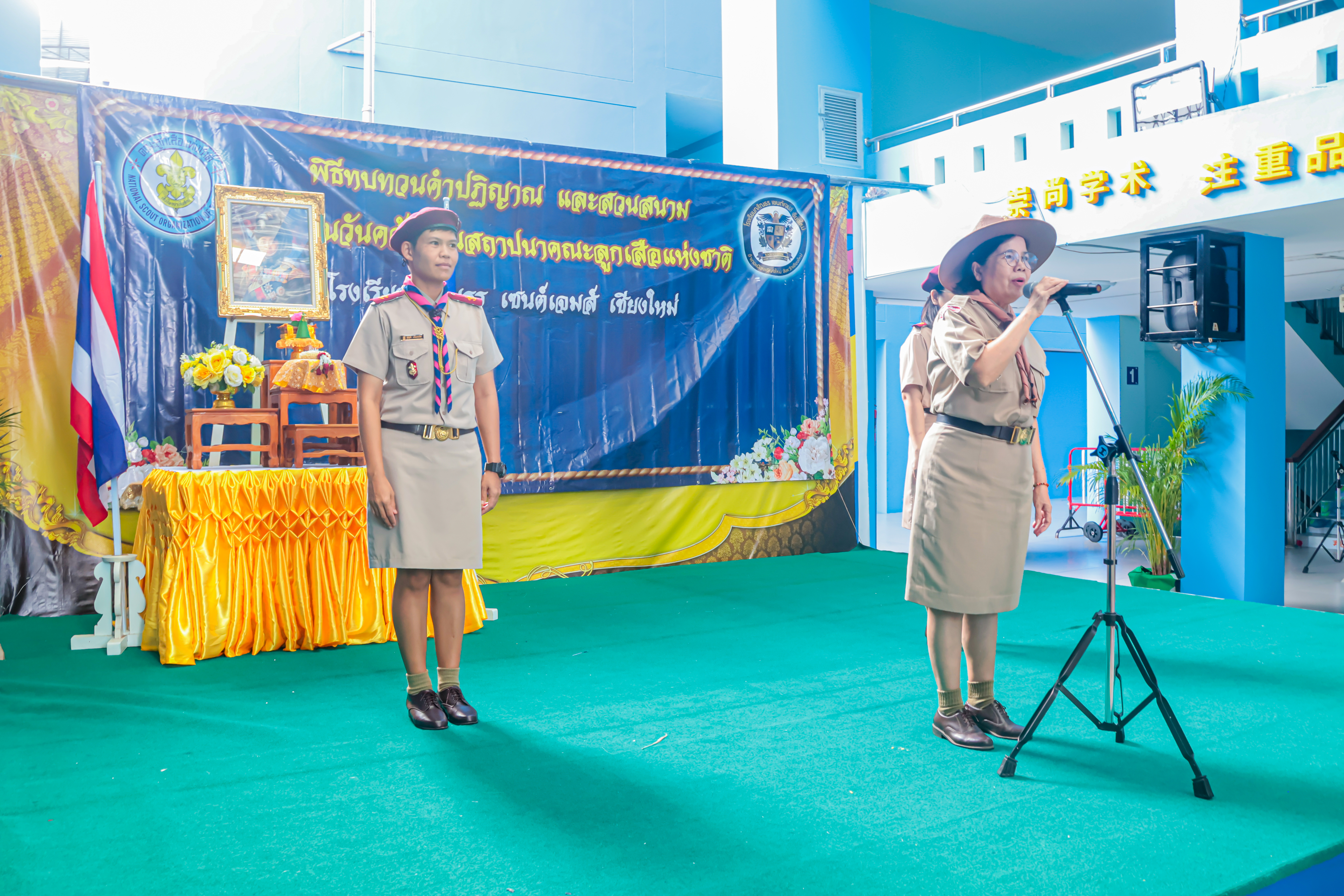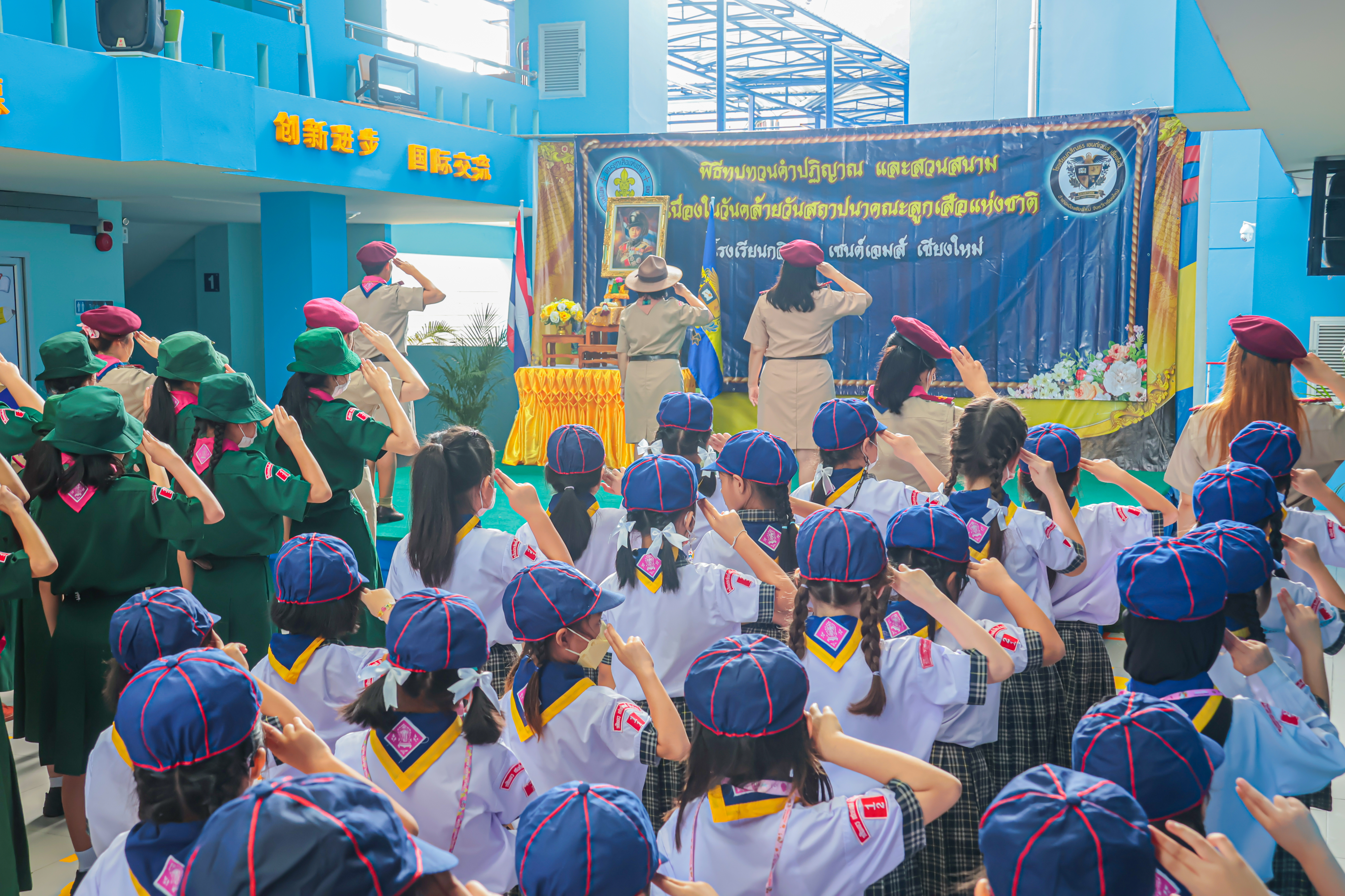 清迈卡辛通圣詹姆斯学校组织孩子们进行宣誓仪式并在学校操场上举行庆祝活动,以纪念泰国国家童子军组织成立纪念日,该活动是为了庆祝2566学年的童子军纪念日。