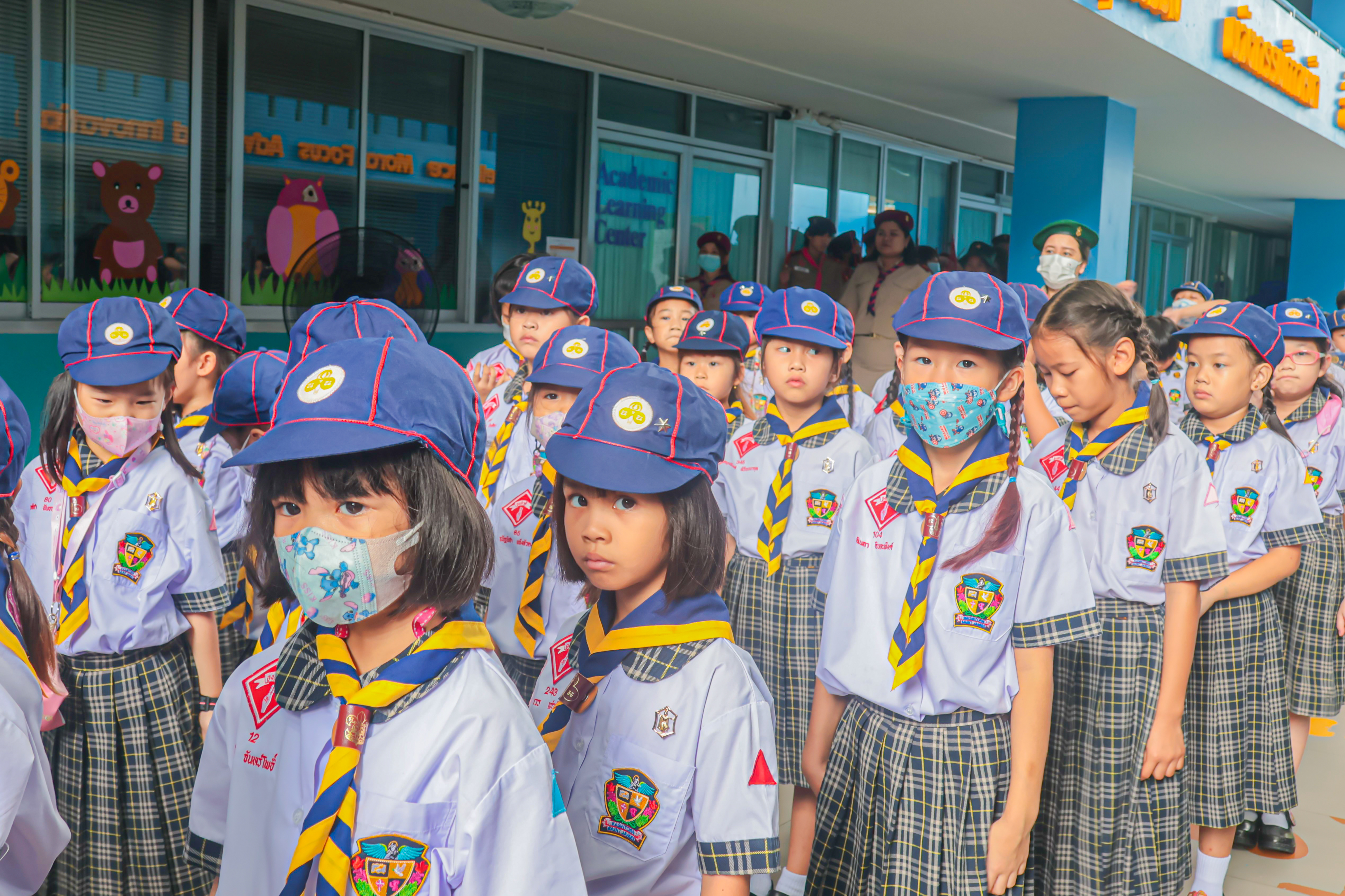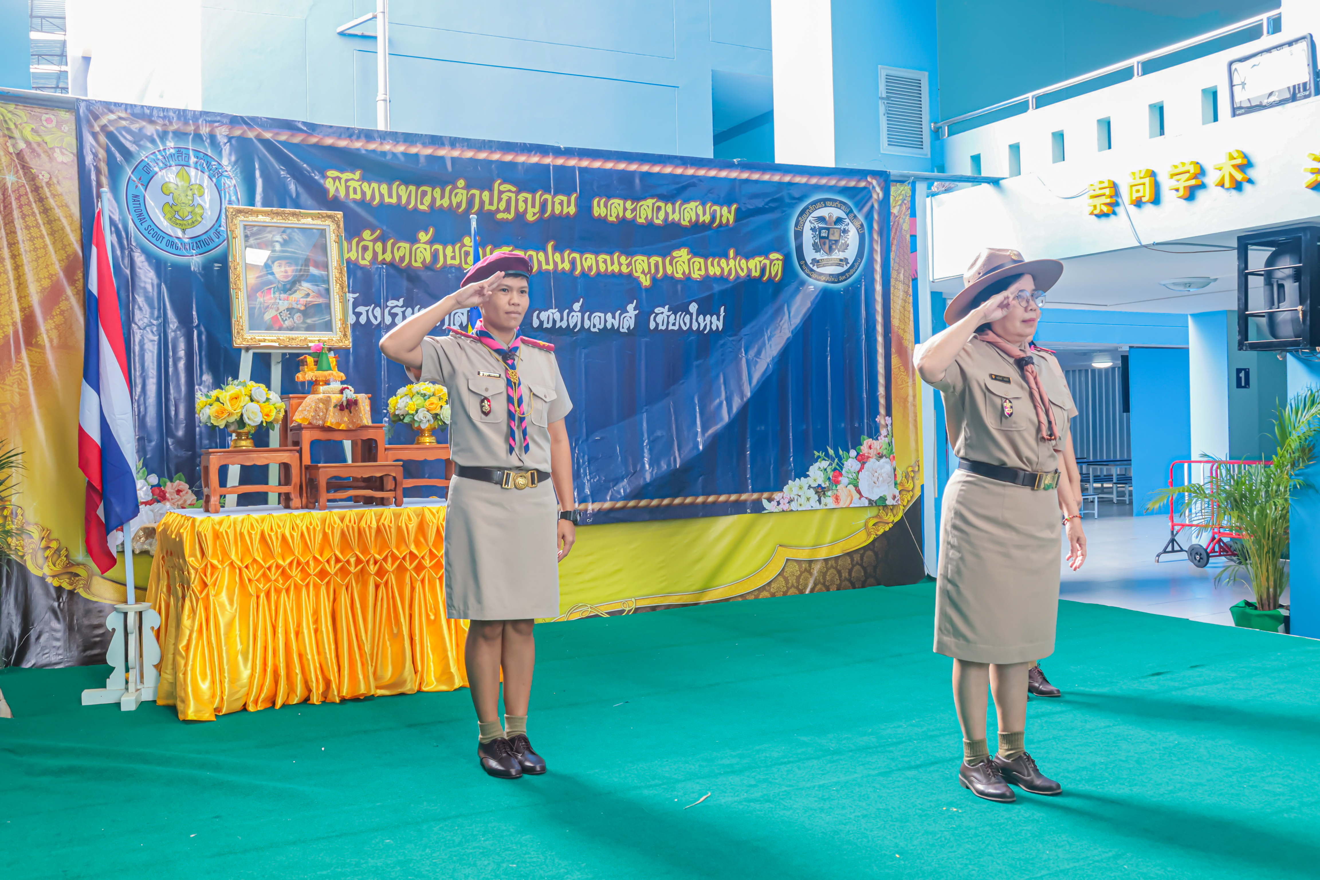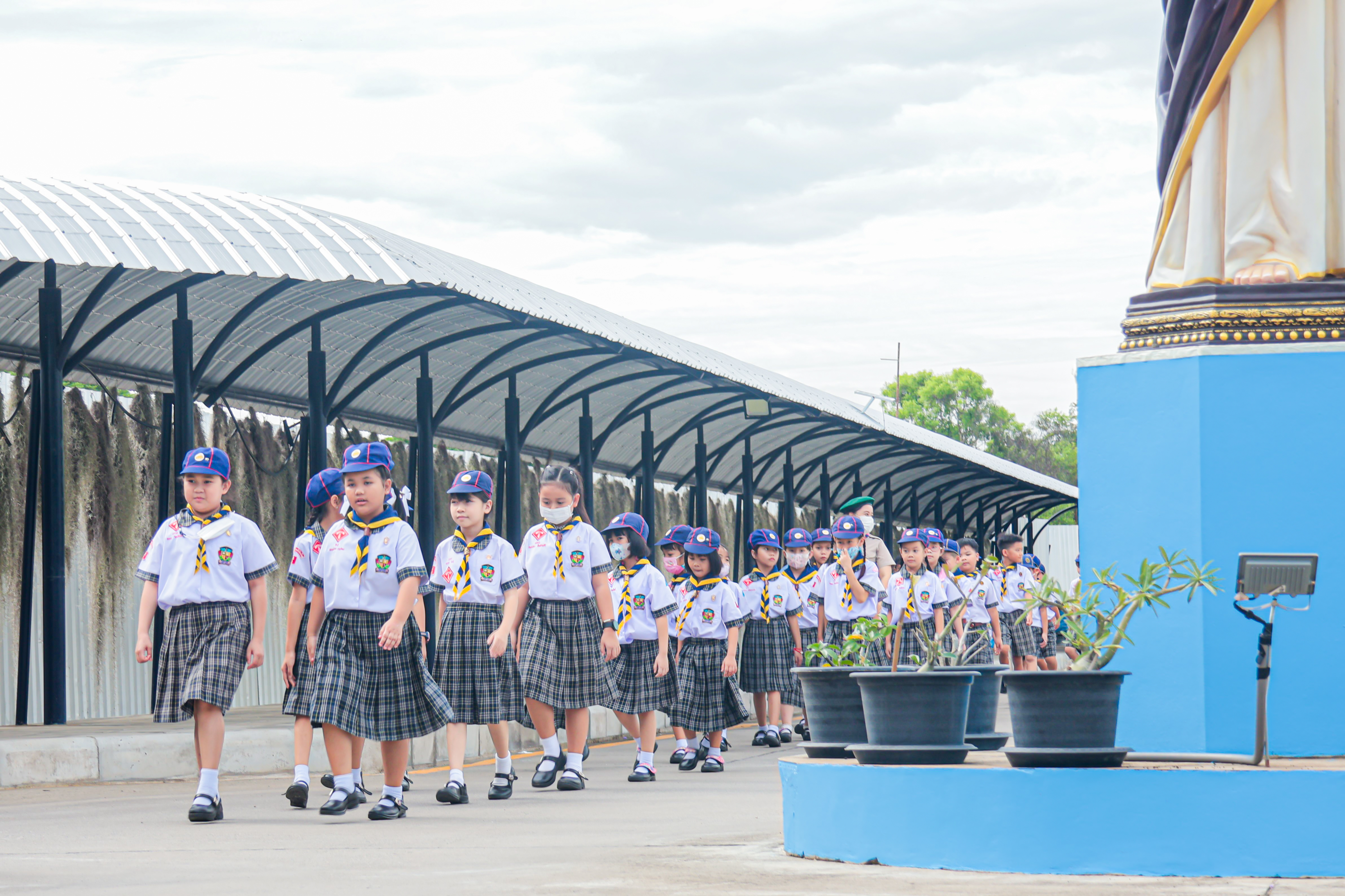 清迈卡辛通圣詹姆斯学校组织孩子们进行宣誓仪式并在学校操场上举行庆祝活动,以纪念泰国国家童子军组织成立纪念日,该活动是为了庆祝2566学年的童子军纪念日。