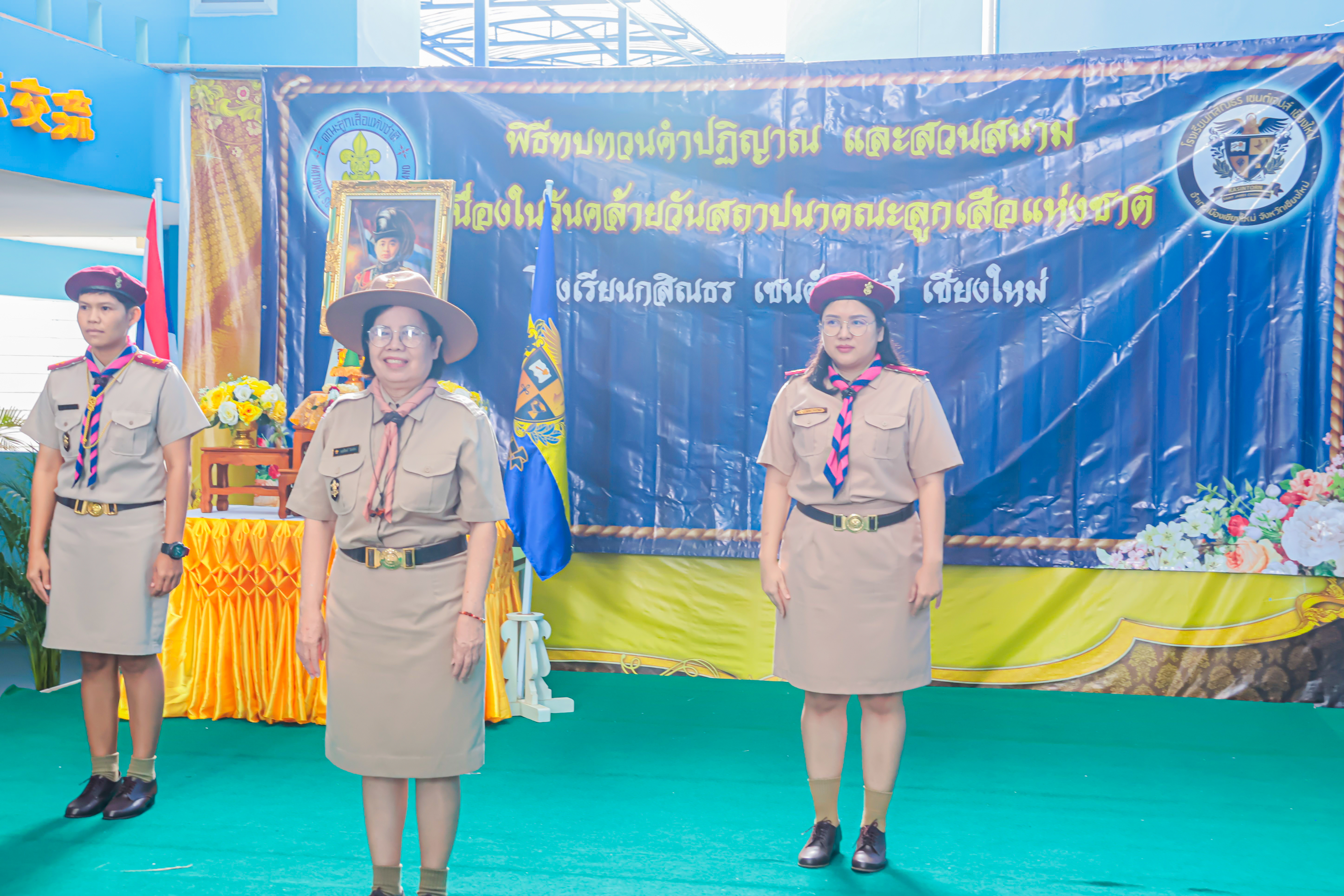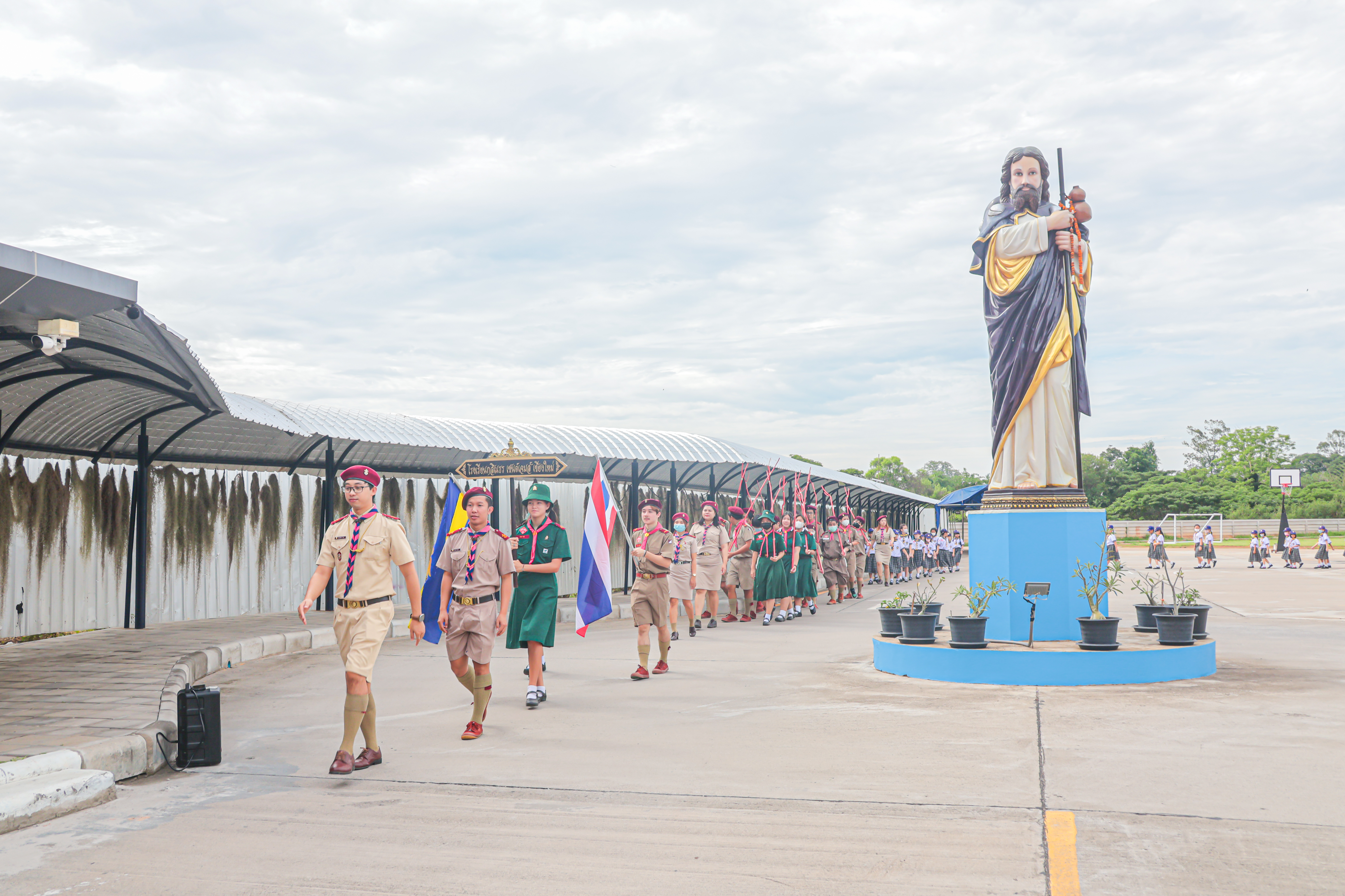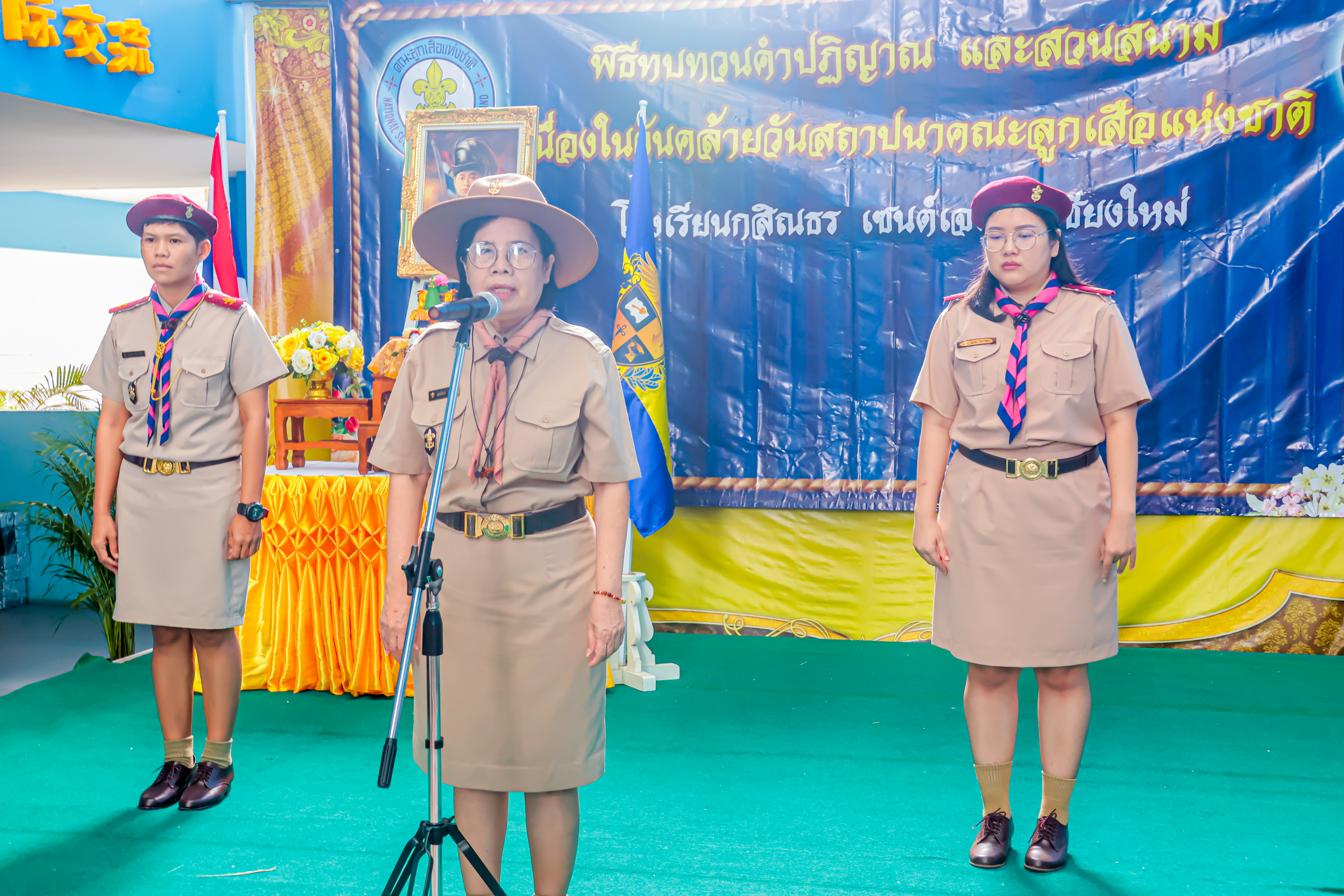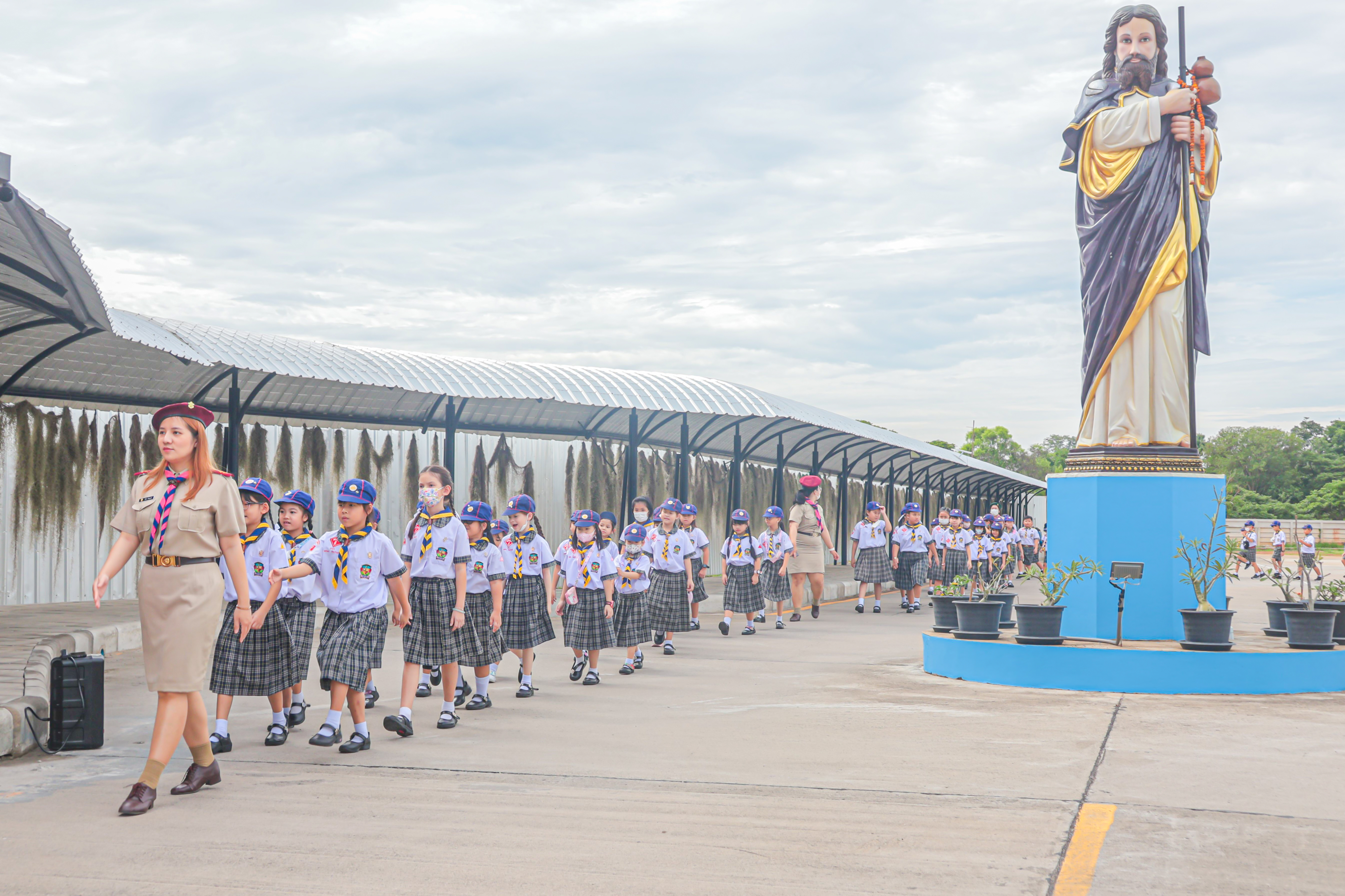清迈卡辛通圣詹姆斯学校组织孩子们进行宣誓仪式并在学校操场上举行庆祝活动,以纪念泰国国家童子军组织成立纪念日,该活动是为了庆祝2566学年的童子军纪念日。