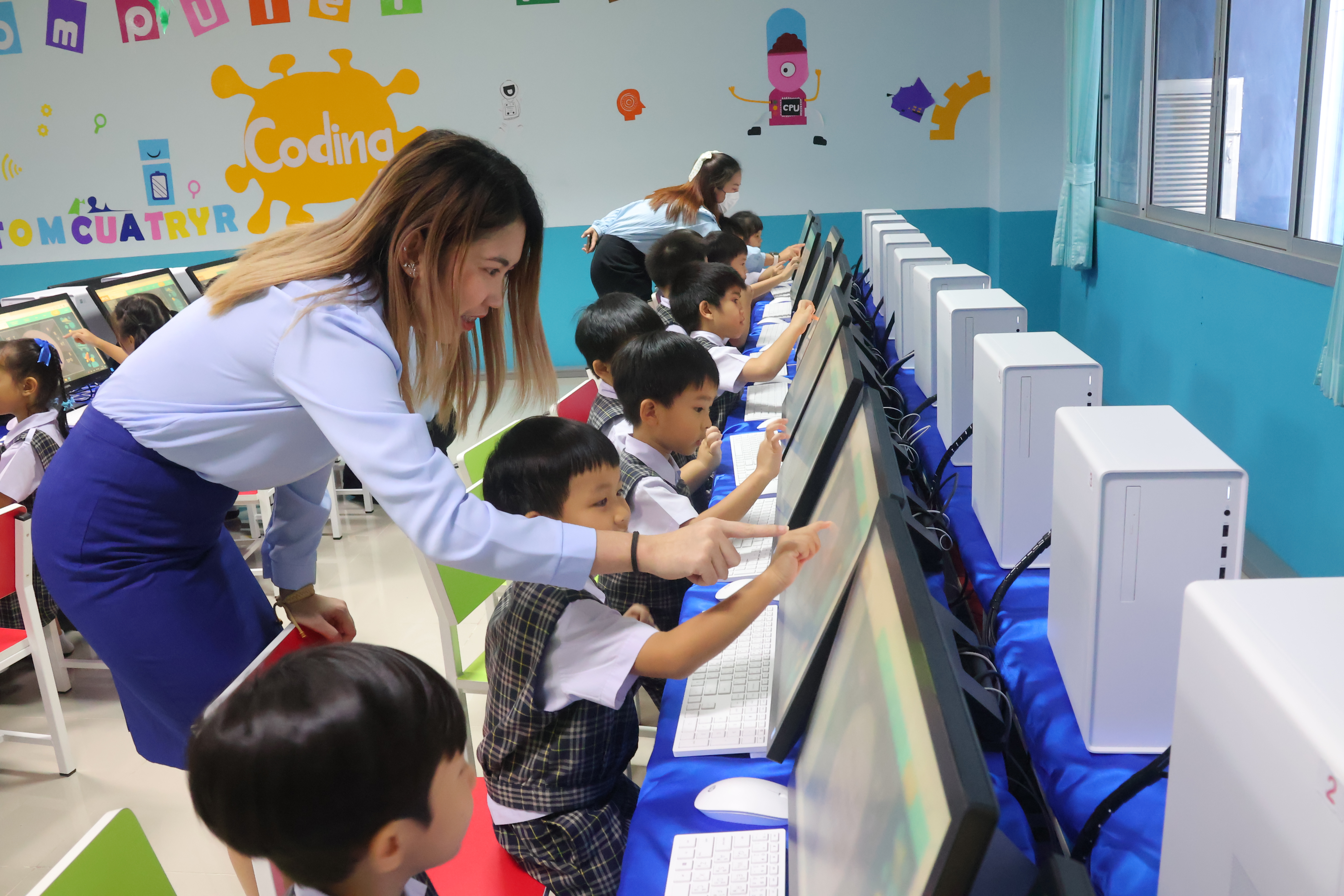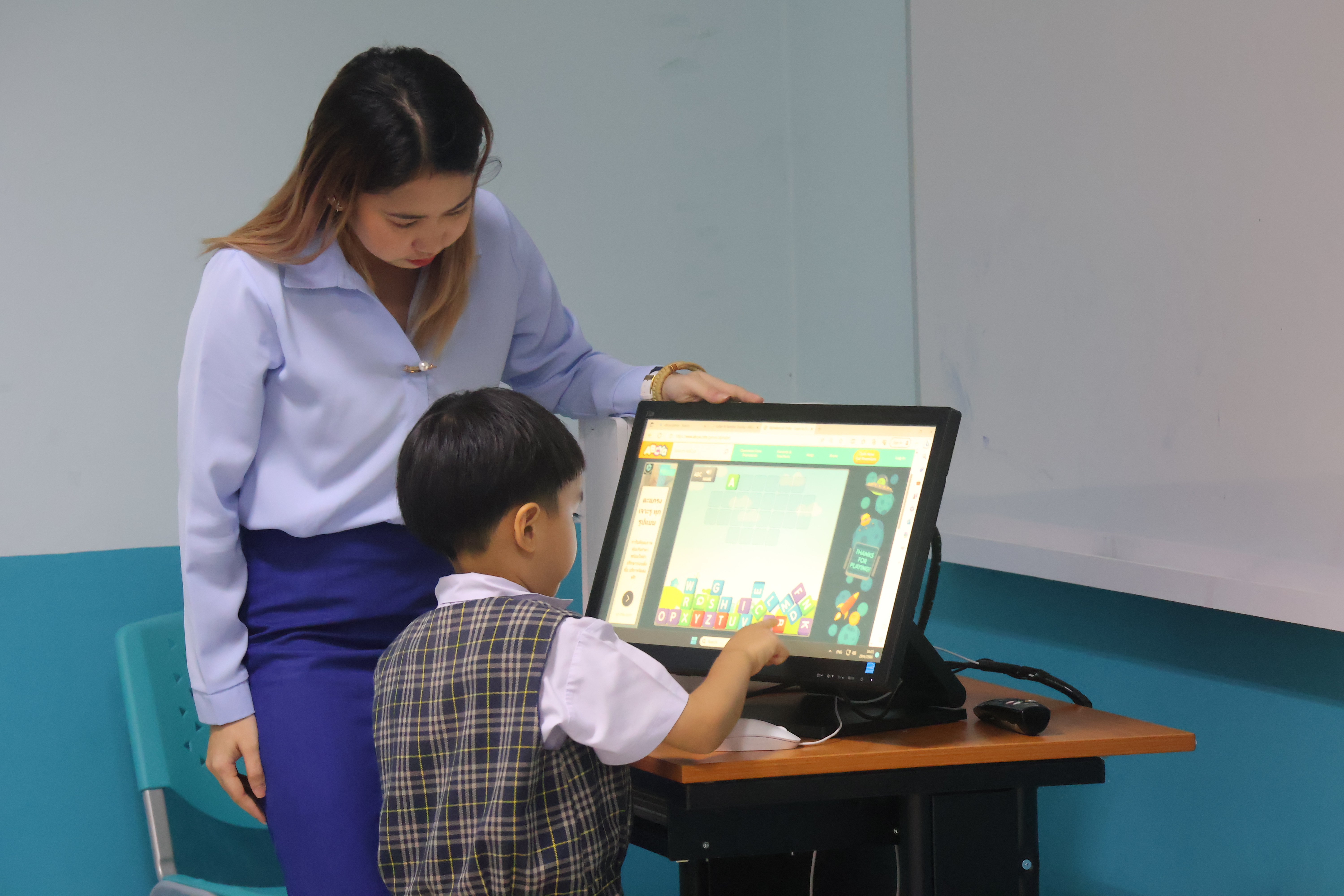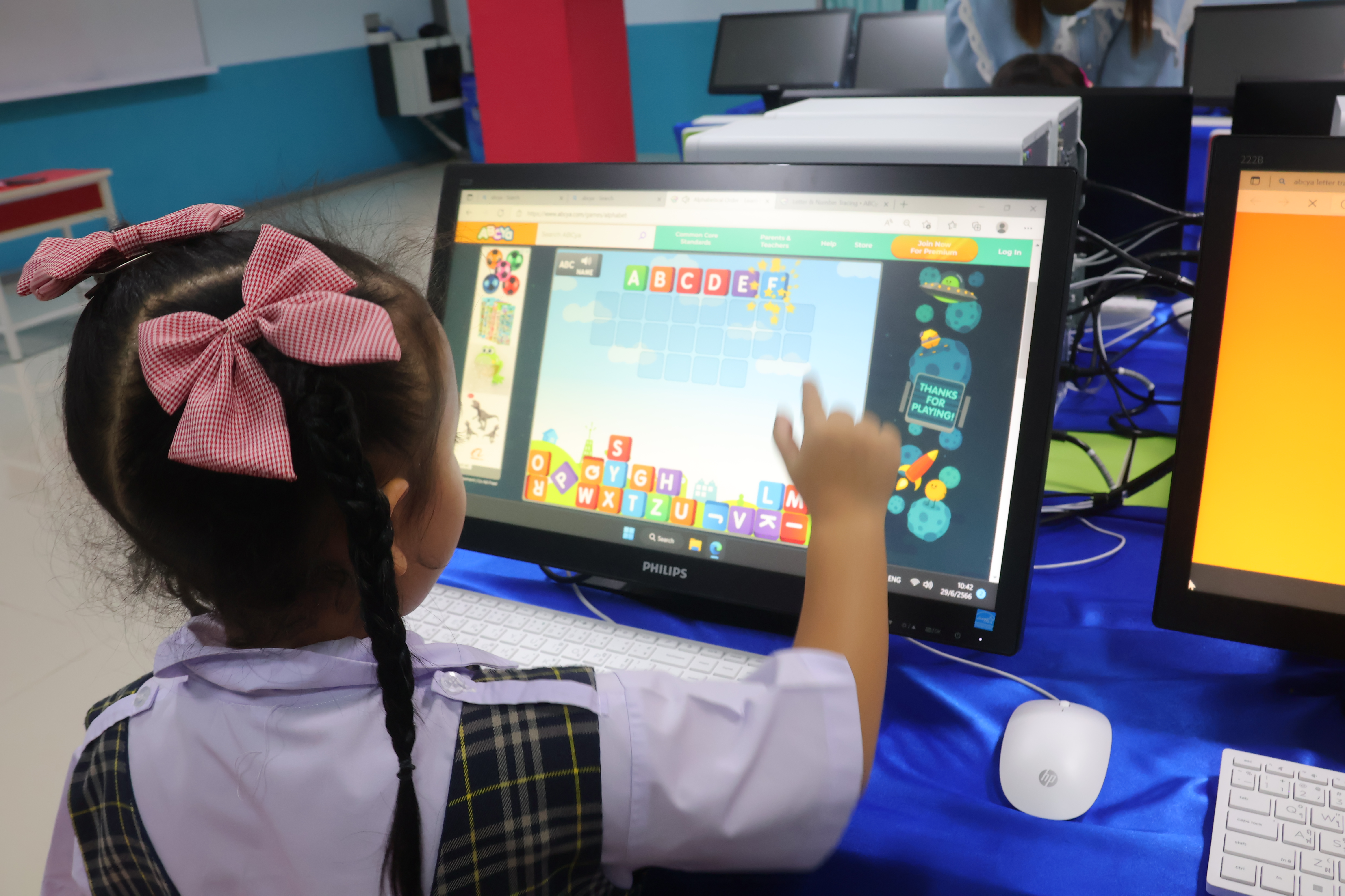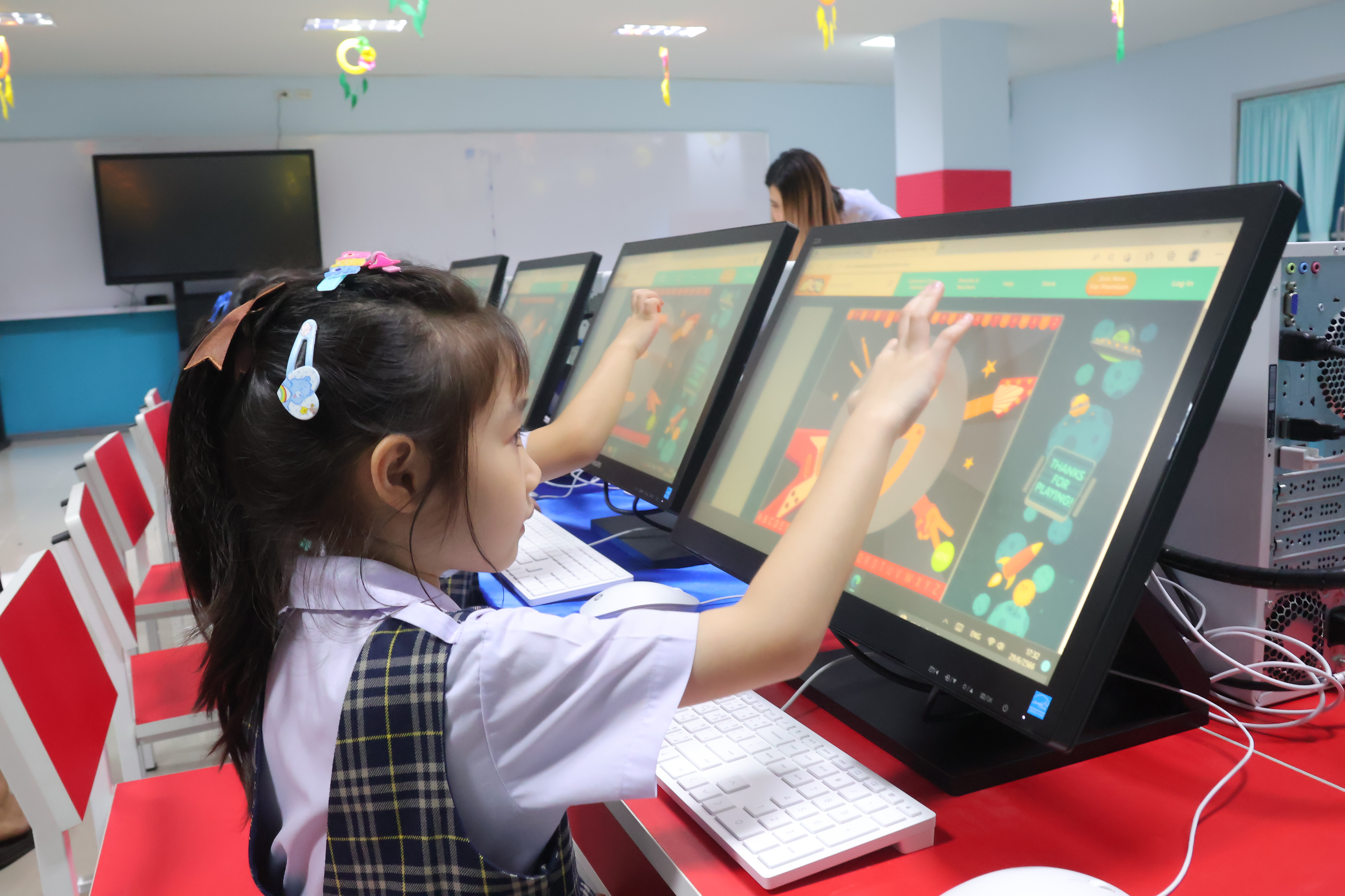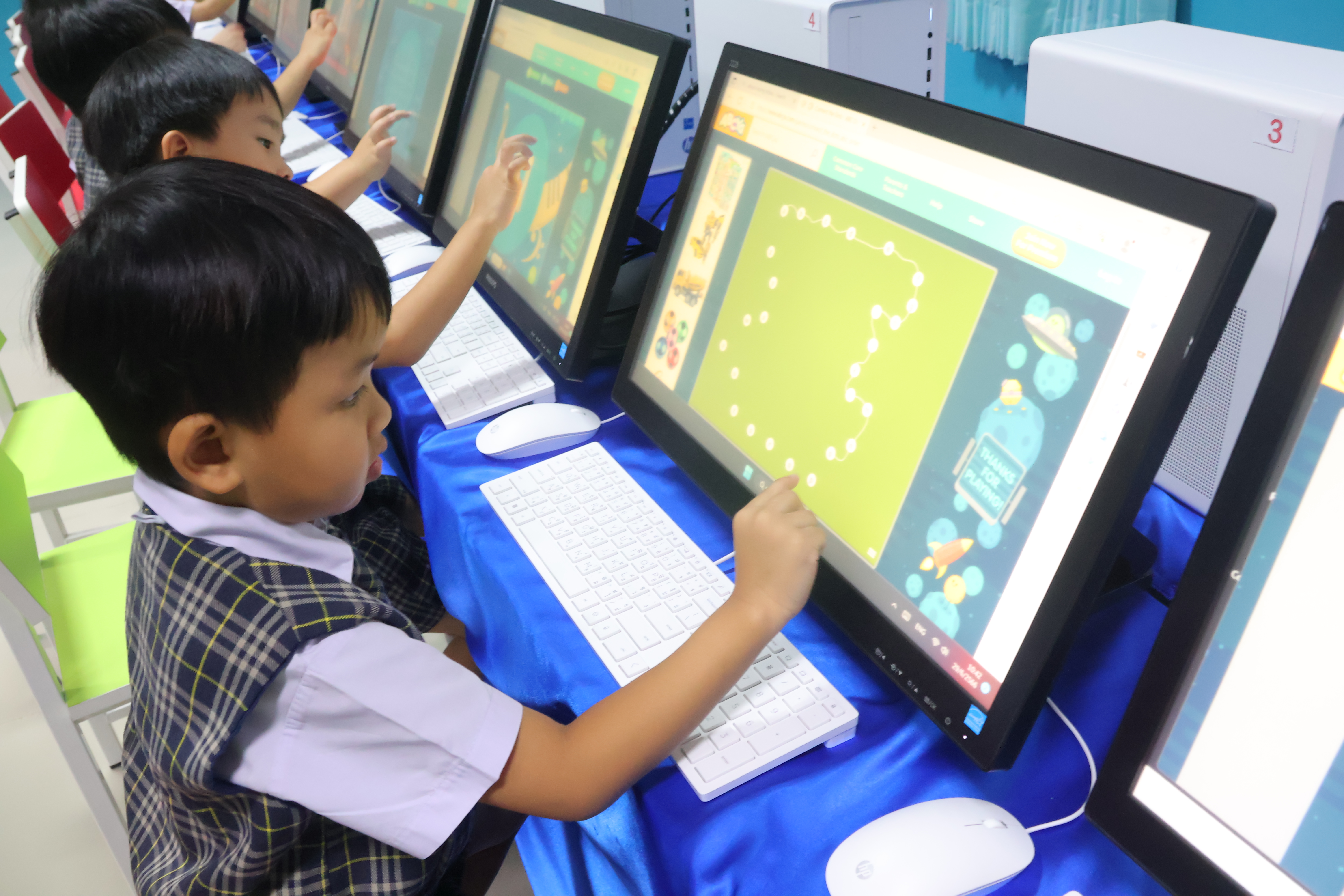 โรงเรียนกสิณธร เซนต์เจมส์ เชียงใหม่ เล็งเห็นความสำคัญของเทคโนโลยีสำหรับการศึกษา ในปีการศึกษานี้ โรงเรียนได้จัดซื้ออุปกรณ์และชุดคอมพิวเตอร์ใหม่ เพื่อเพิ่มประสิทธิภาพการเรียนการสอนให้มากยิ่งขึ้น ในวันนี้ T. Gemma ได้พานักเรียนชั้น Kg.3 ทำกิจกรรมการเรียนรู้เรื่องตัวอักษรภาษาอังกฤษ นักเรียนได้ลากเส้นและเล่นเกมความรู้บนหน้าจอแบบสัมผัสได้ เด็กๆได้ทั้งความรู้และความสนุกสนานจากคาบเรียนคอมพิวเตอร์