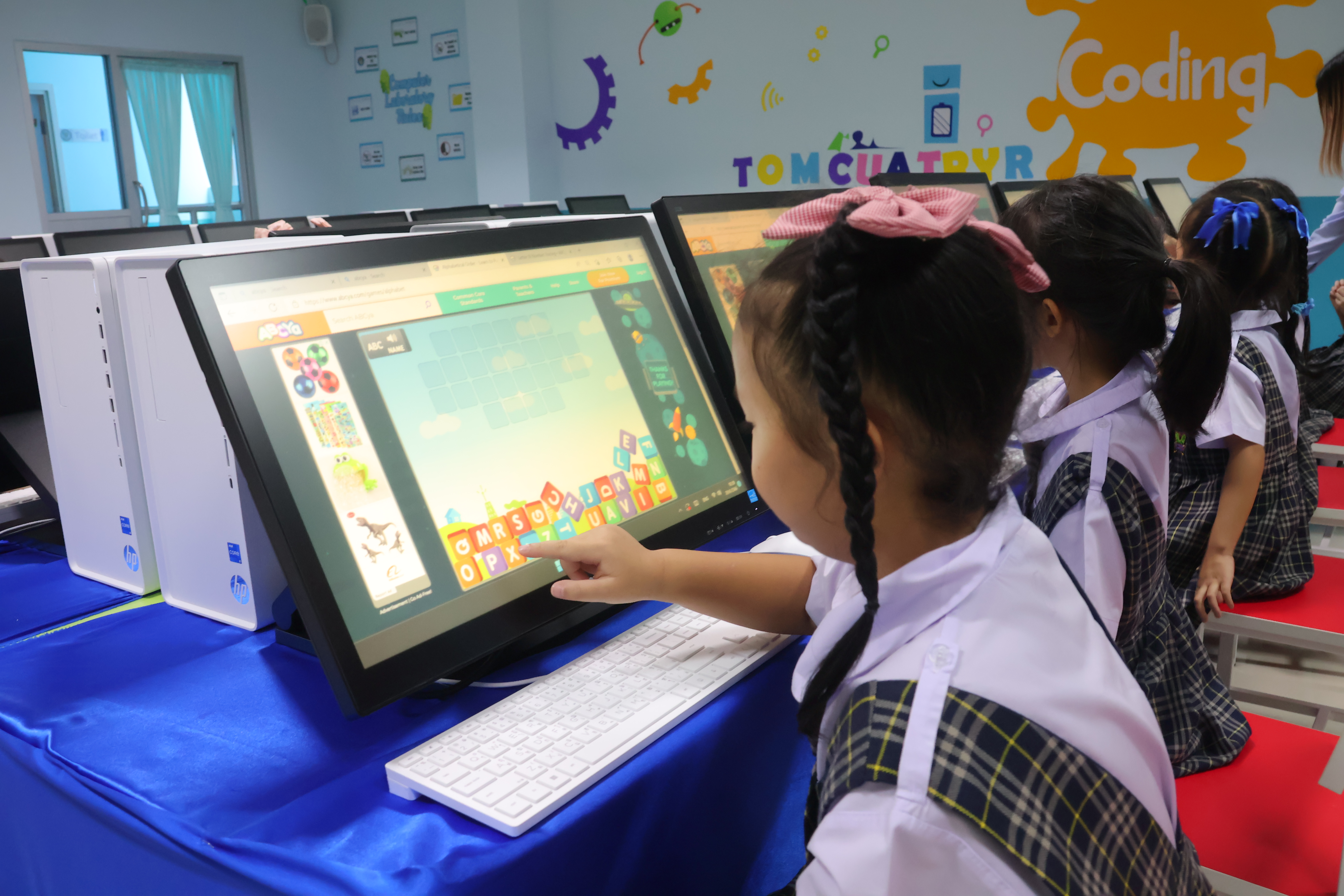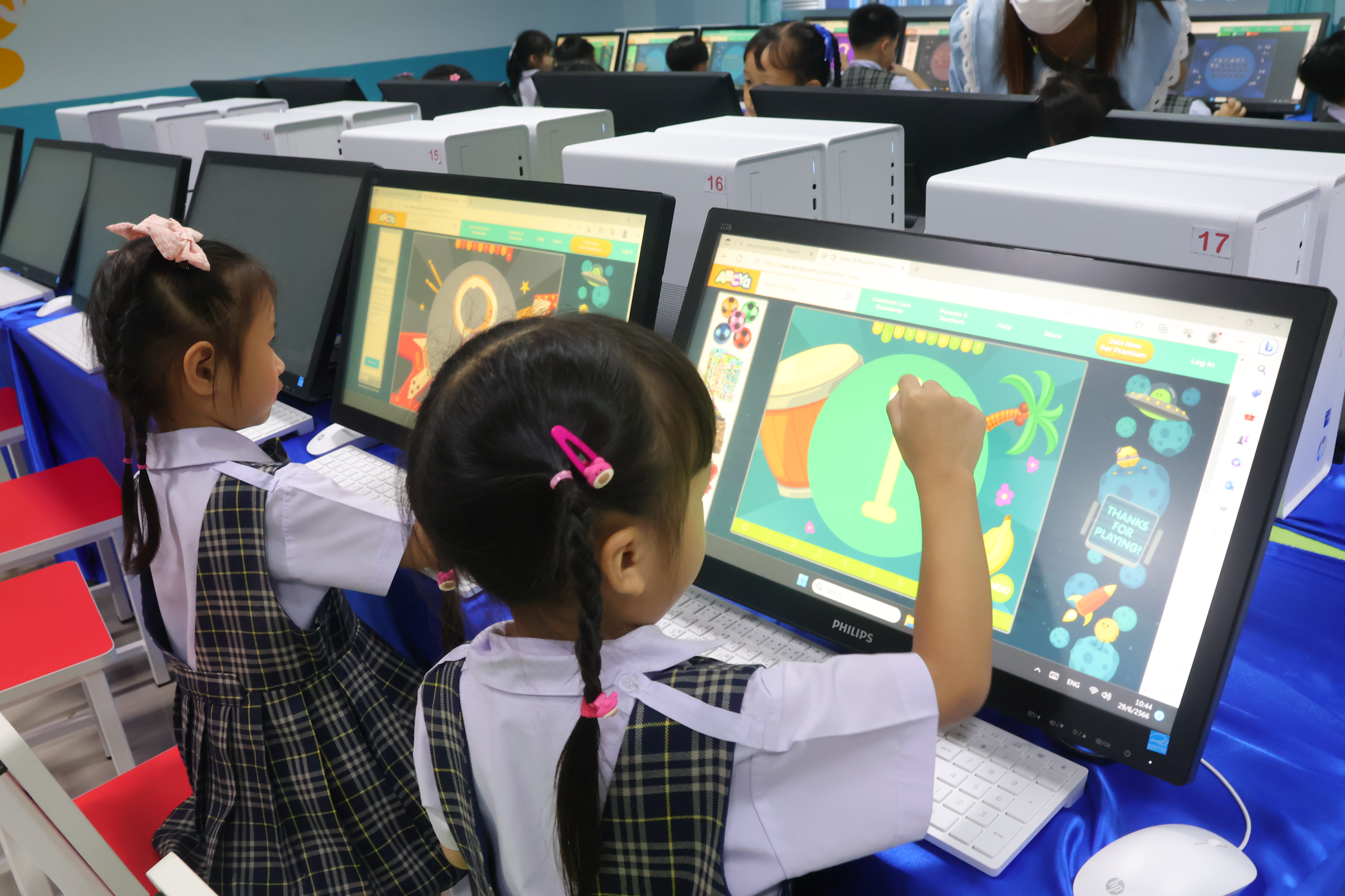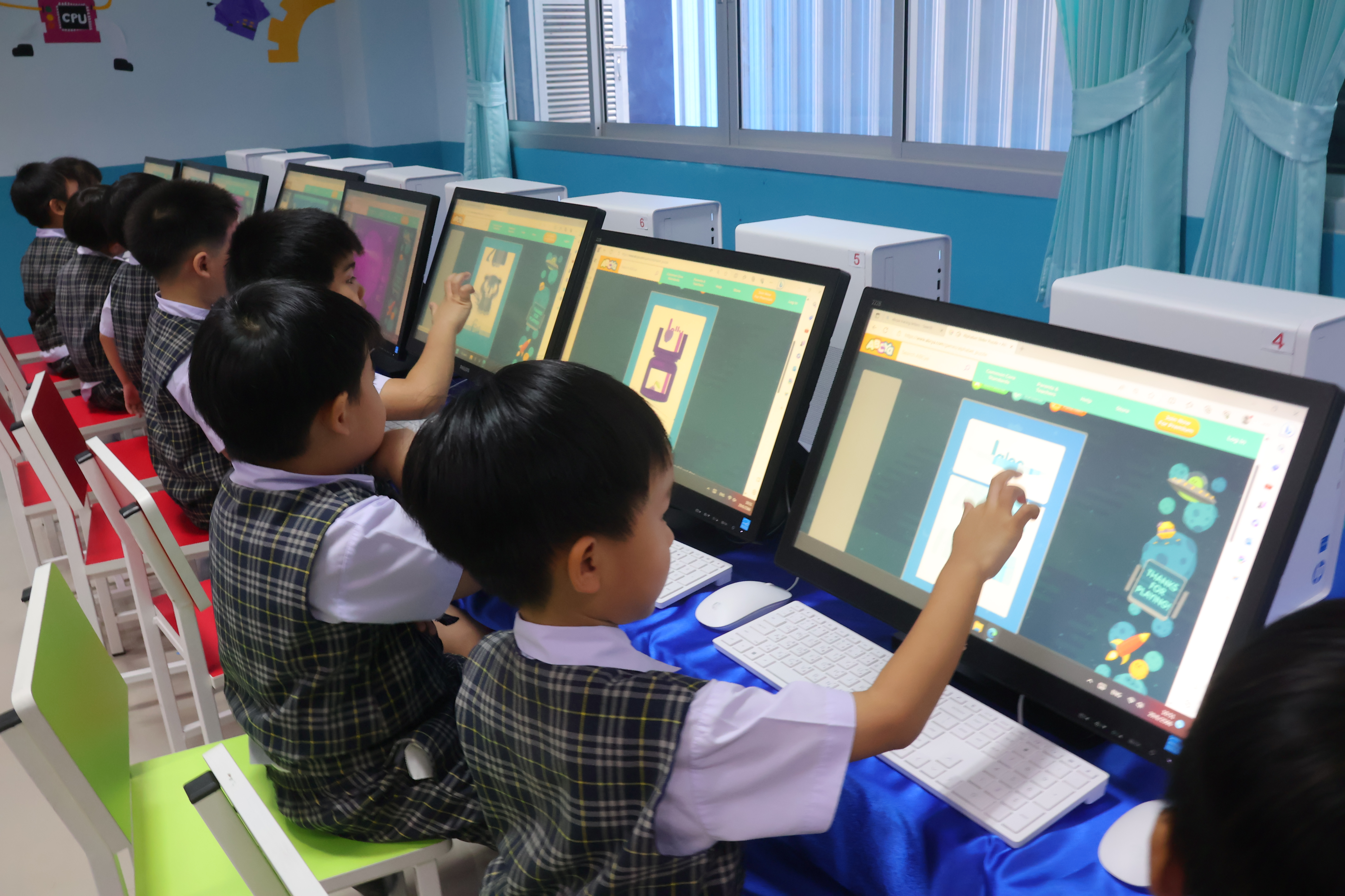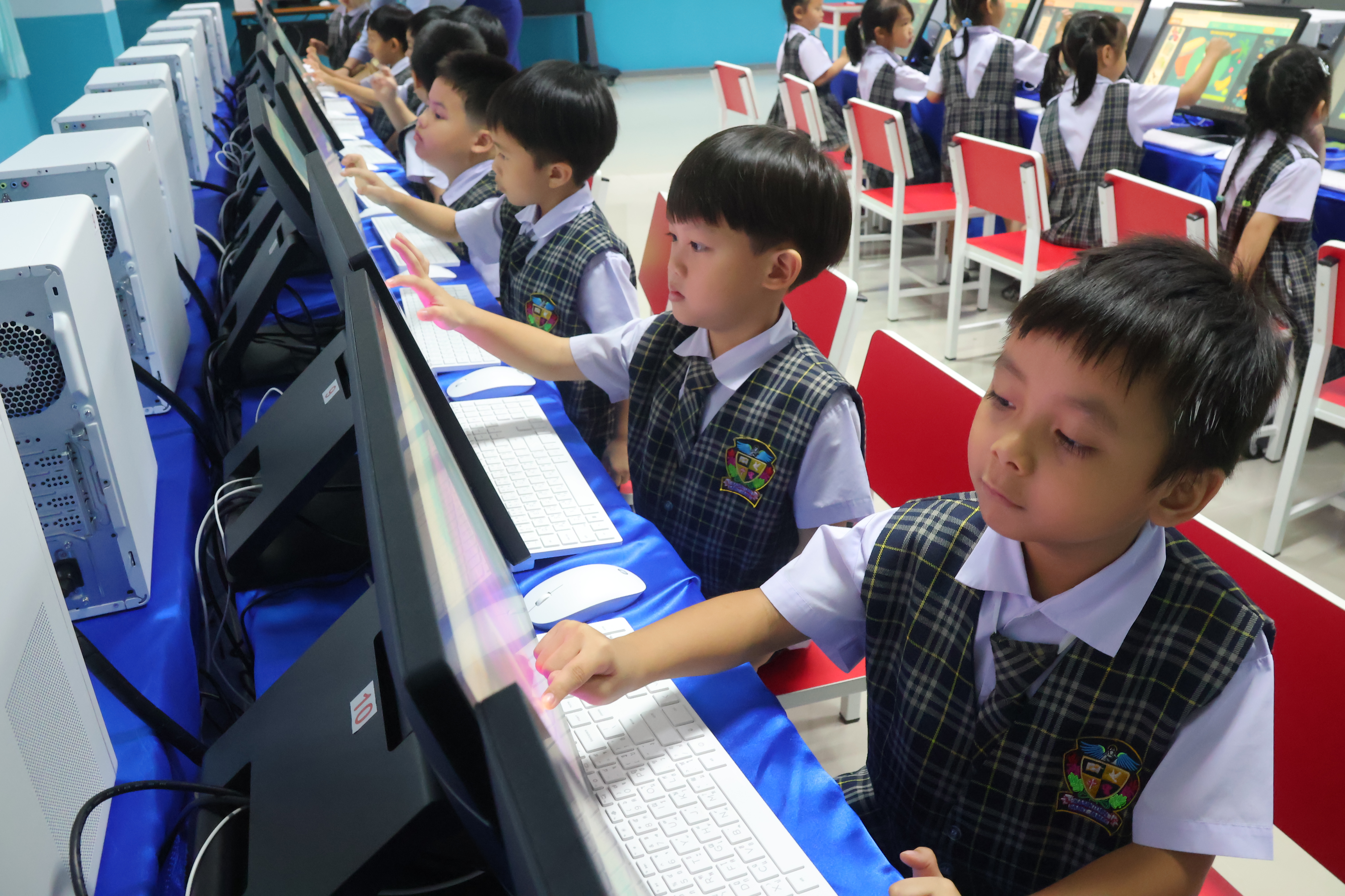 清迈卡辛通圣詹姆斯学校非常重视科技对教育的重要性。在本学年,学校购买了新的设备和计算机套件,以提高教学效果。今天,Gemma 老师带领 幼儿园三年级的学生参与了学习英文字母的活动。学生们可以在触摸屏上画线和玩知识游戏。孩子们通过电脑课程获得了知识和乐趣。