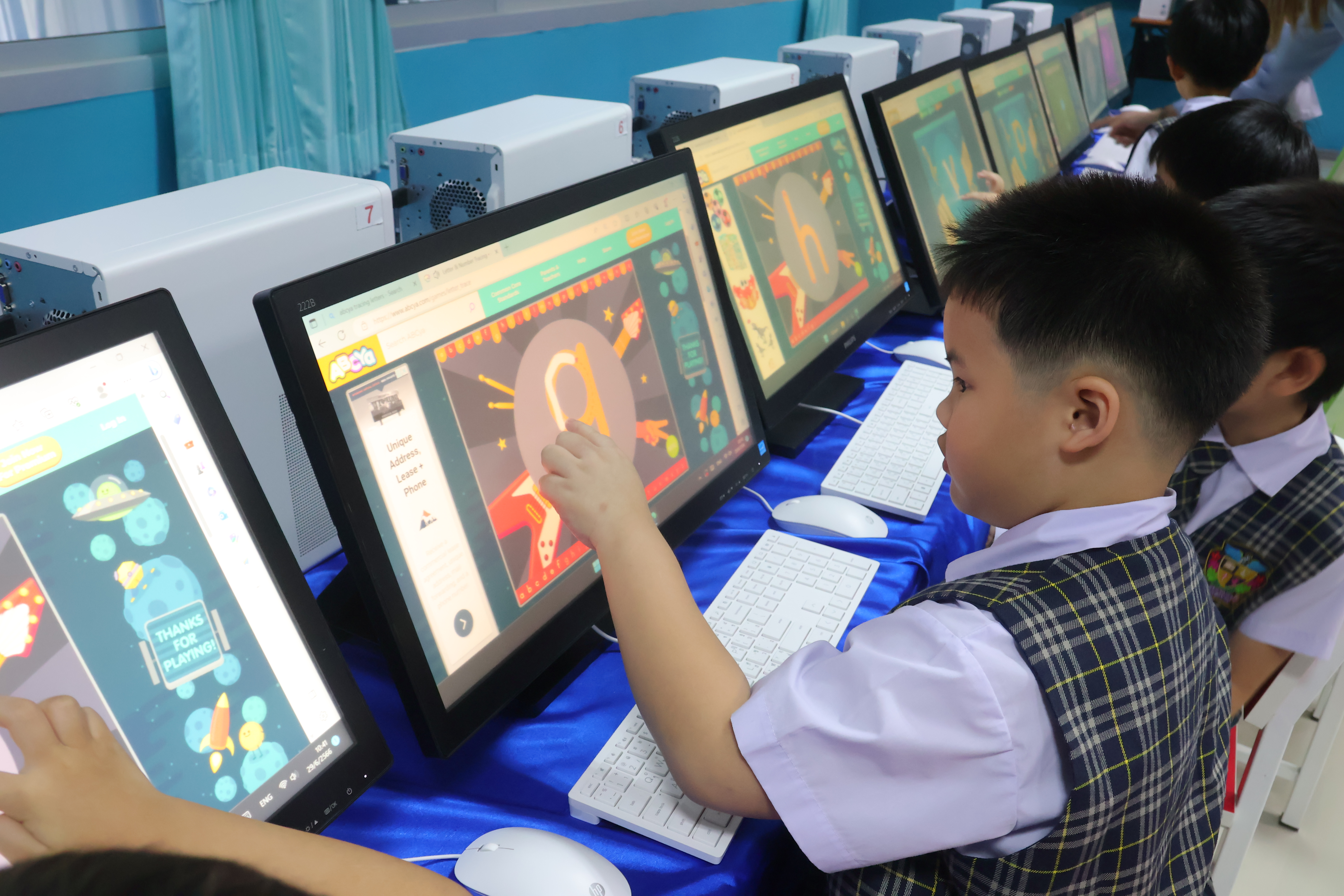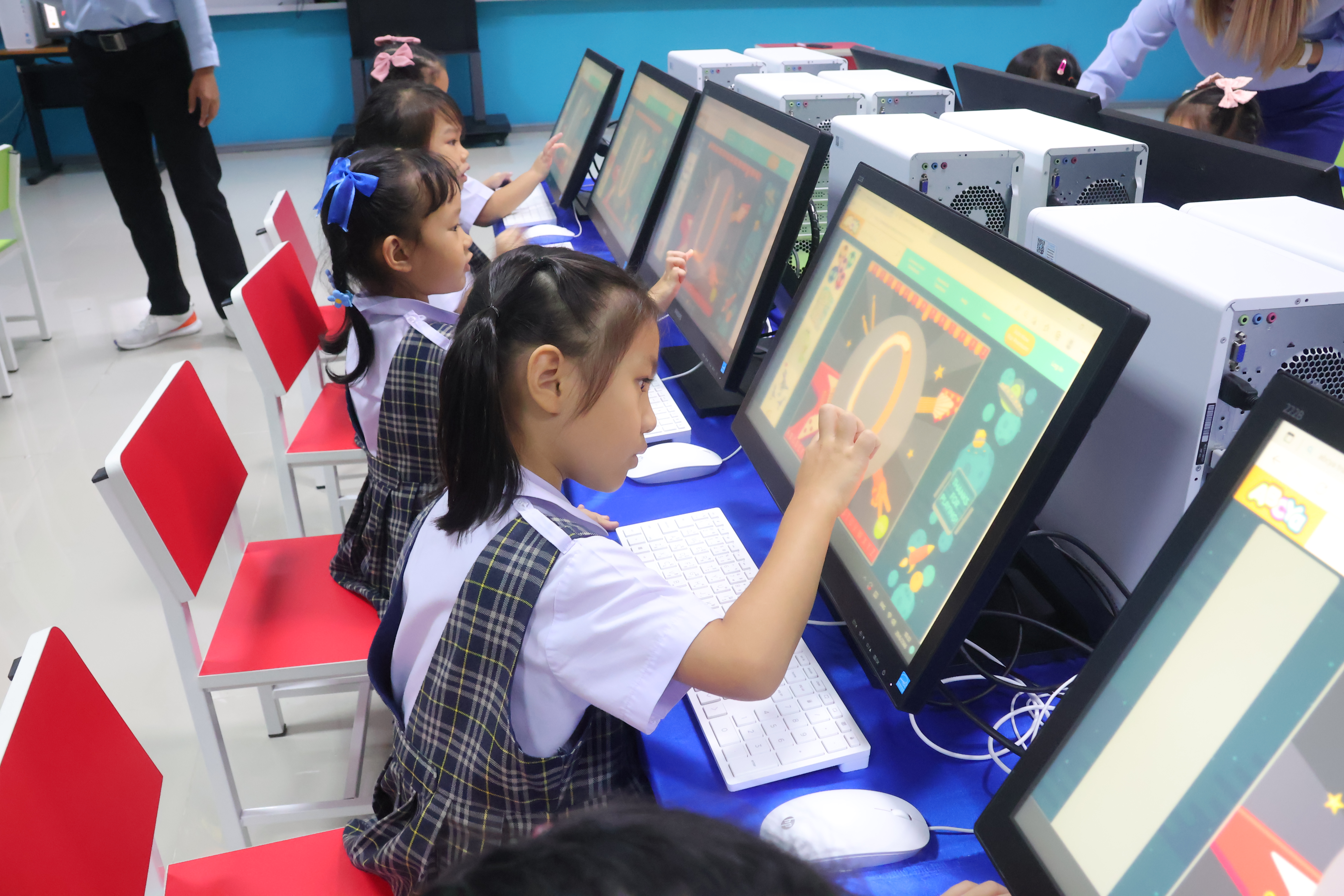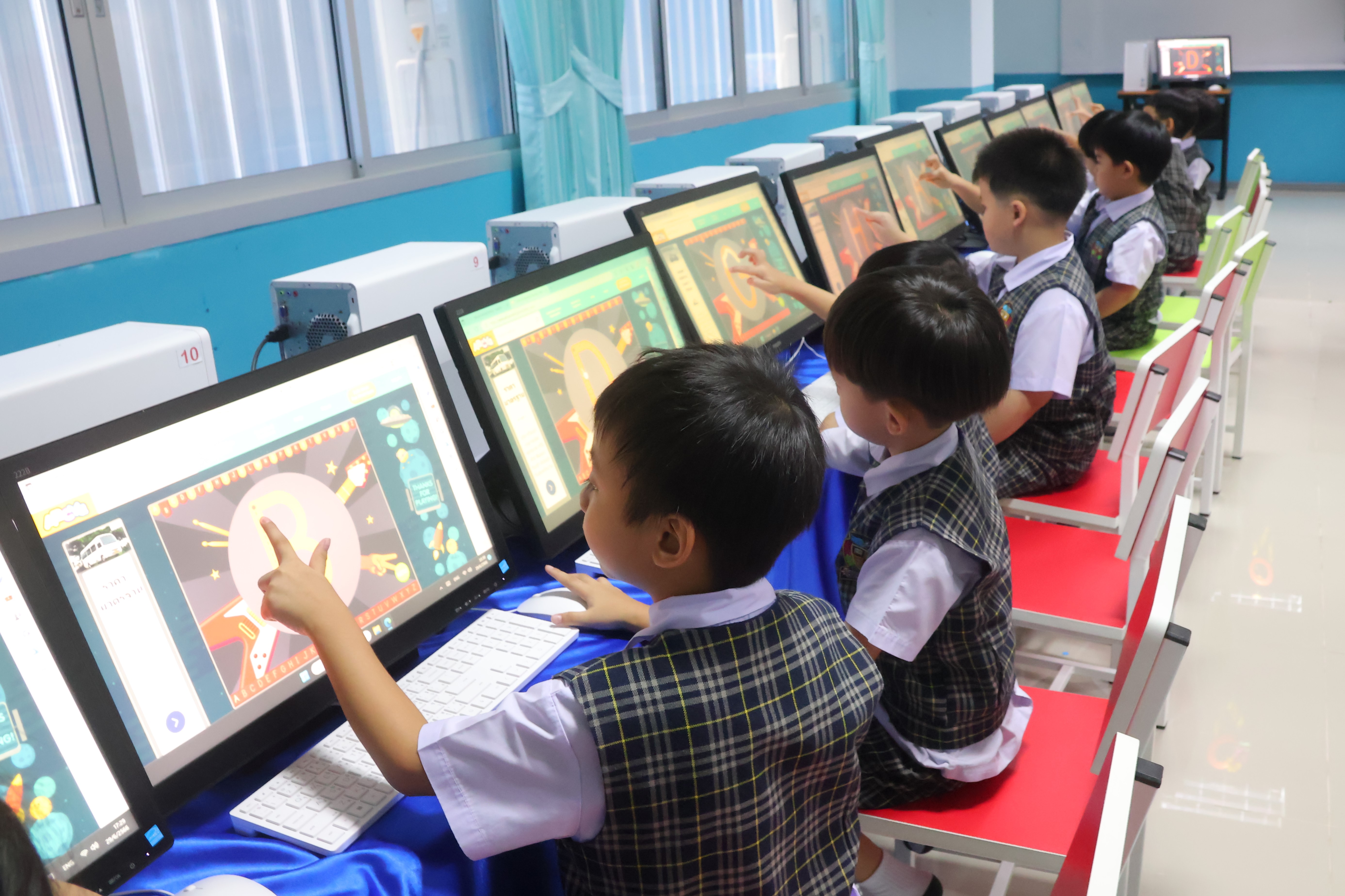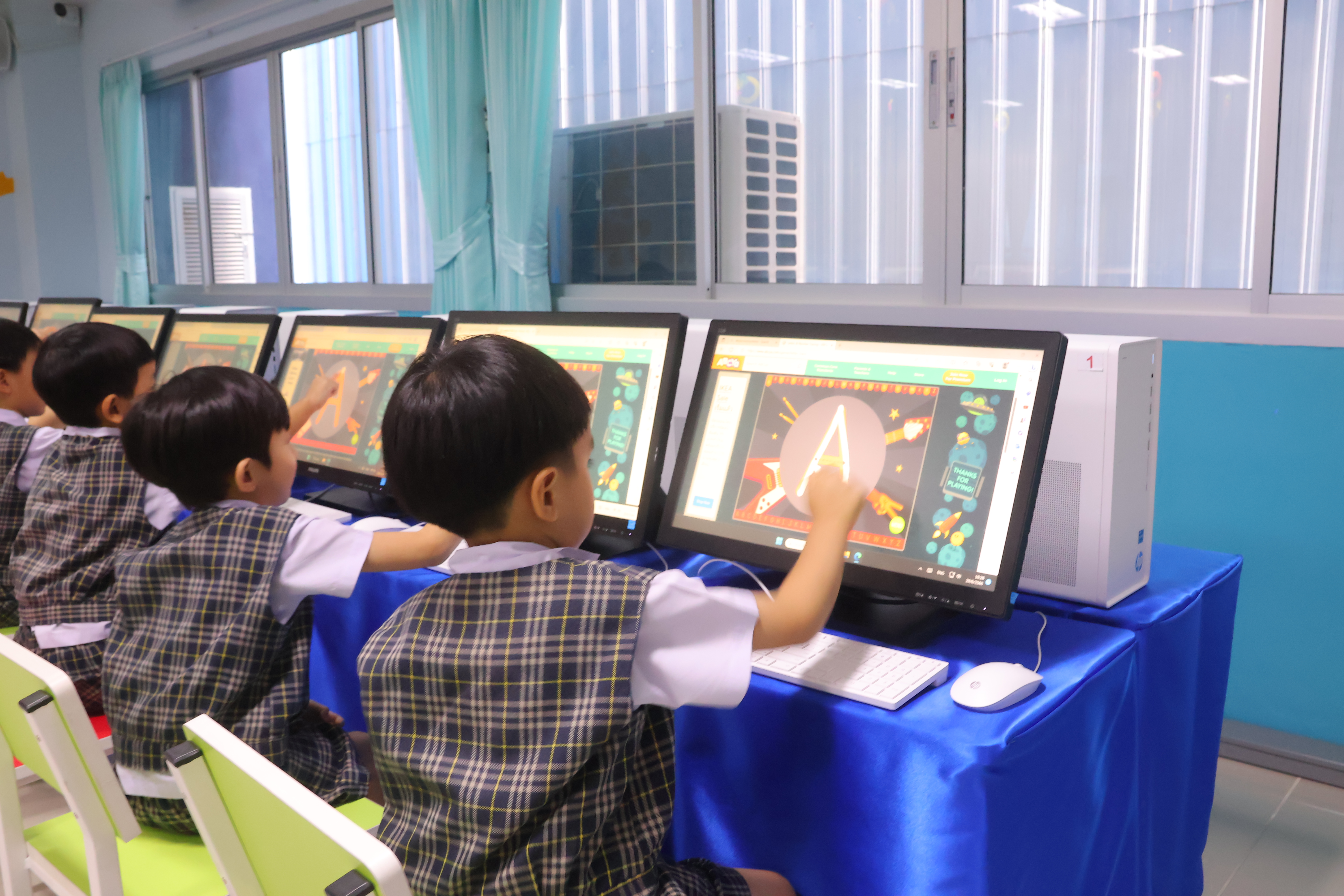Kasintorn St. James Chiang Mai School recognizes the importance of technology in education. In this academic year, the school has purchased new computer sets and equipment to enhance the effectiveness of teaching and learning. Today, T. Gemma took the Kg.3 students to engage in activities to learn about the English alphabet. The students were able to draw lines and play interactive knowledge games on a touch screen. The students learn while having fun during the computer class.