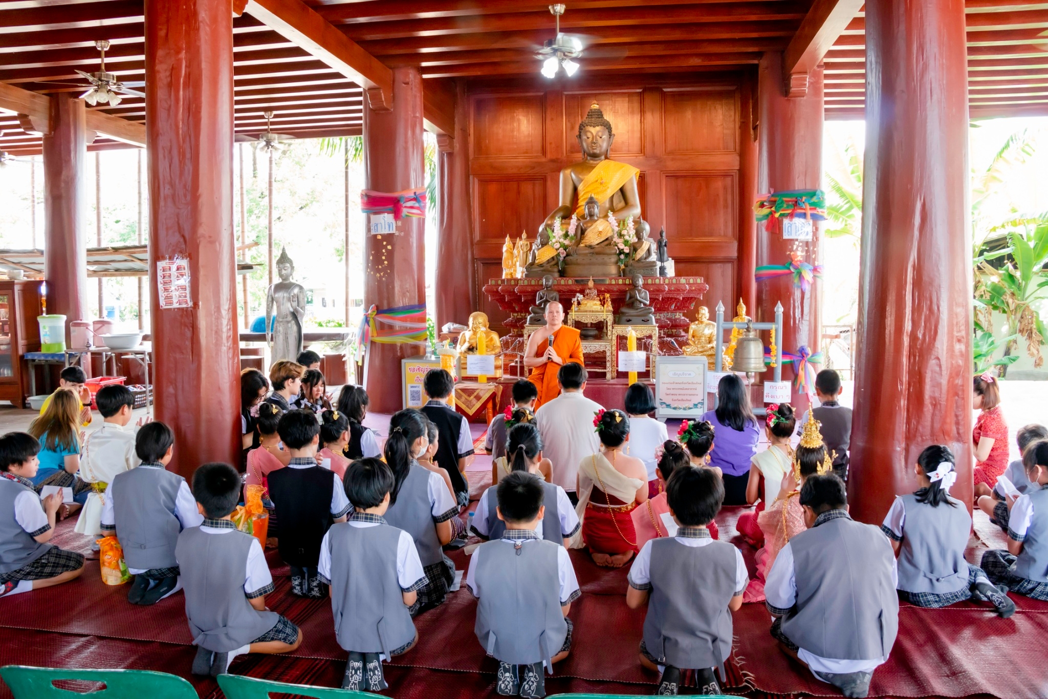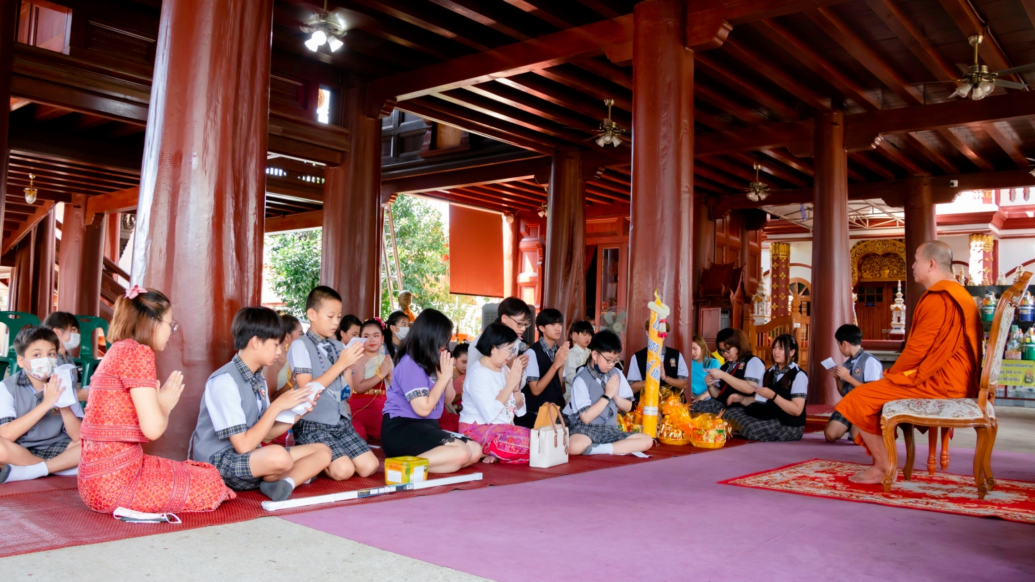 Ceremony of Candle Procession and Alms Offering on the Occasion of Buddhist Lent in the Year 2566. Wednesday, 26th July 2566. Kasintorn Saint James Chiang Mai School, along with the school administrators, teachers, students, and parents, participated in the ceremony of candle procession and alms offering on the occasion of Buddhist Lent Day. This event aimed to preserve the beautiful traditions of Thailand and promote spiritual blessings at Wat Pa Daet and Wat Ko Klang.