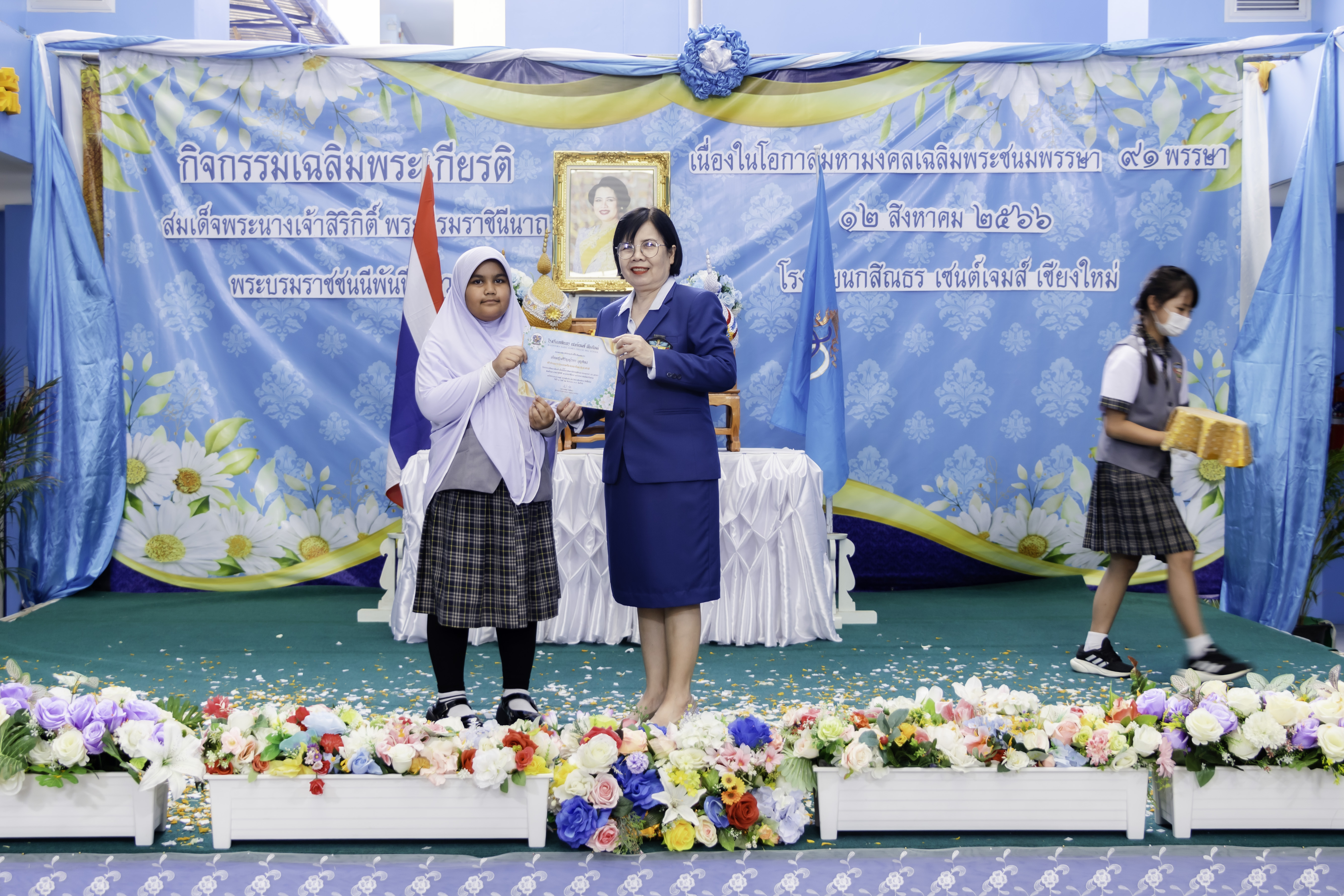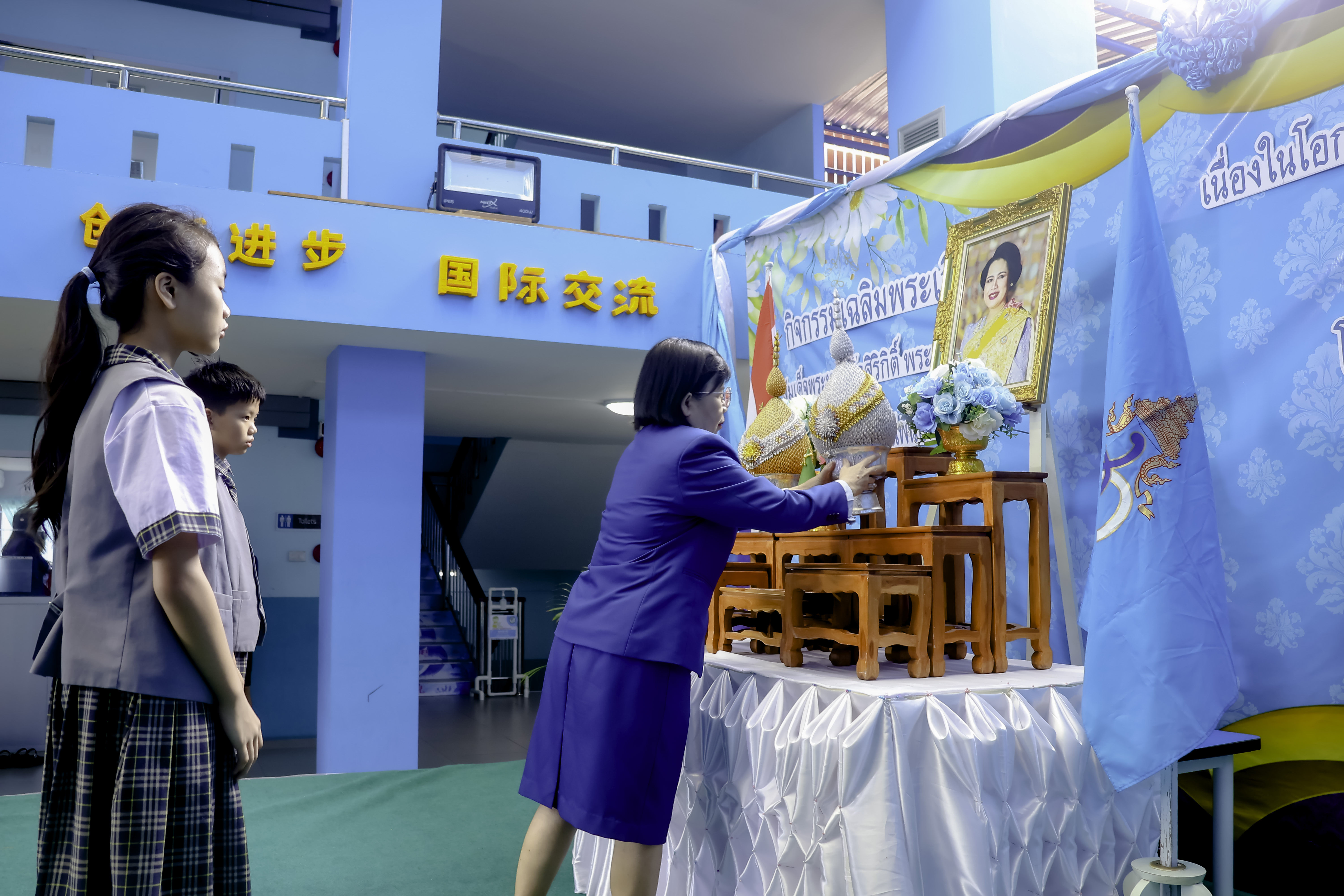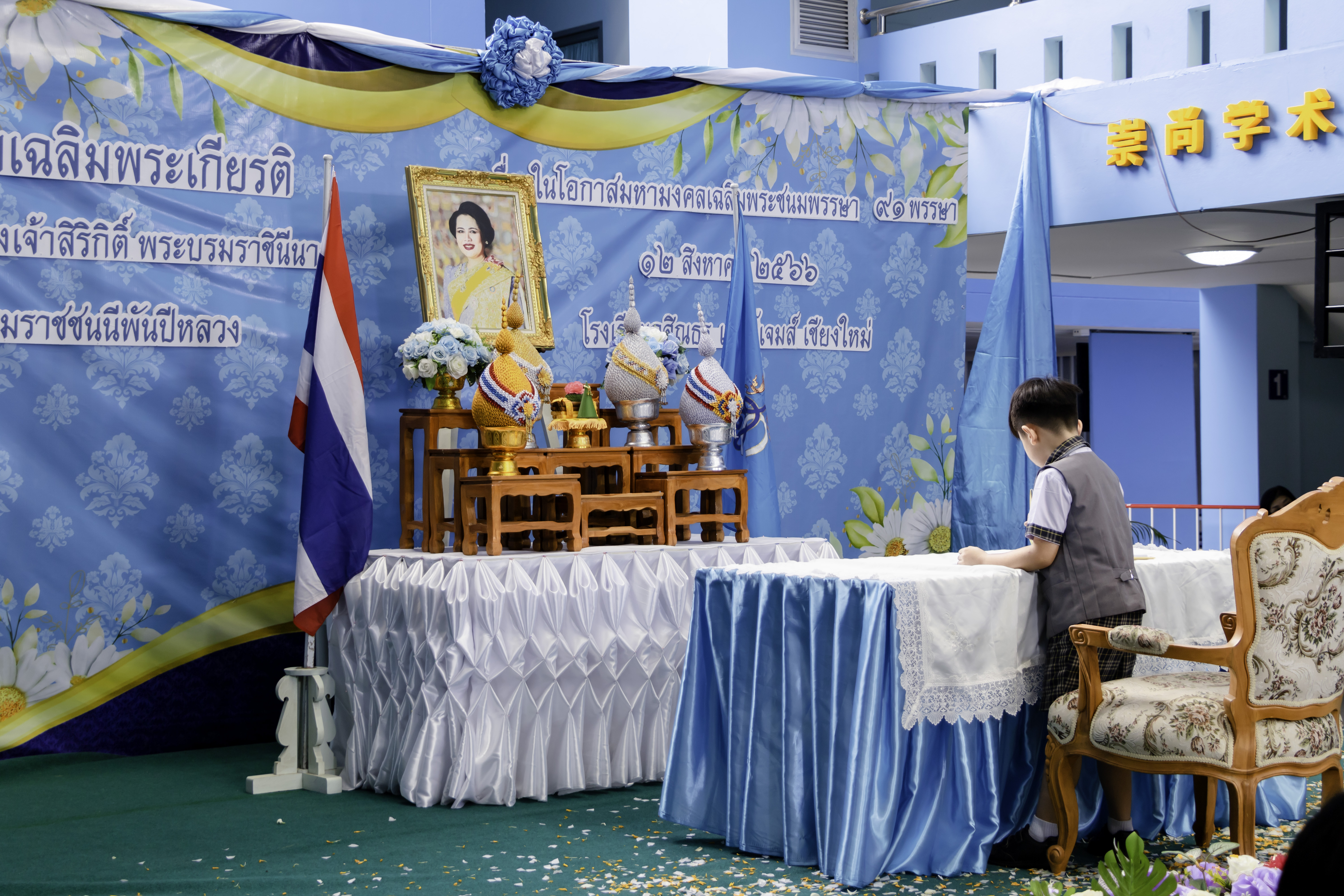 清迈卡辛通圣詹姆斯。举办活动庆祝尊贵的诗丽吉女王陛下和诗琳通公主殿下的诞辰以及母亲节活动,同时还有种植女王陛下纪念树的活动,以使每位学生都能表达对的王室的尊敬和对陛下长时间以来为王国幸福而辛勤付出的感激之情。