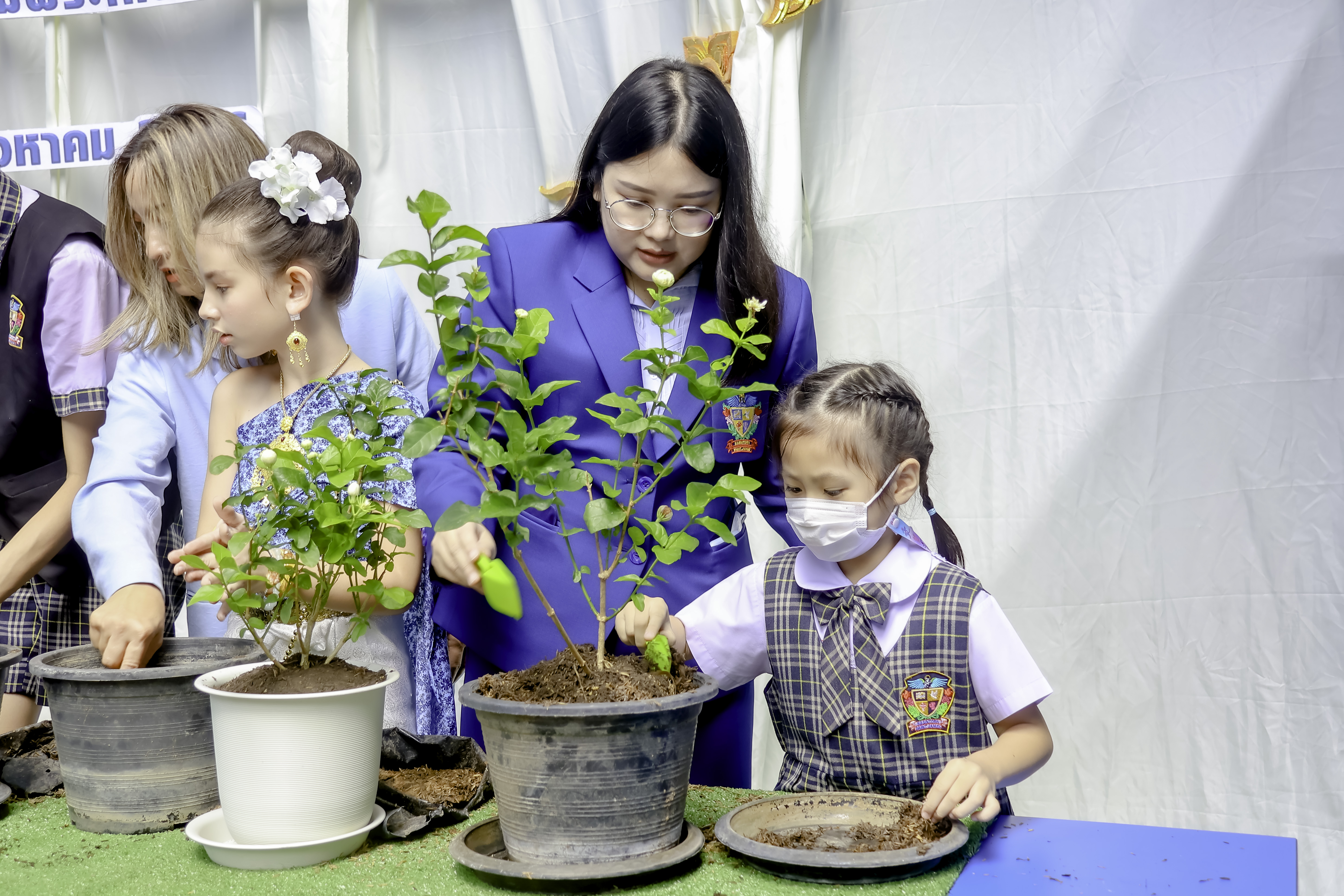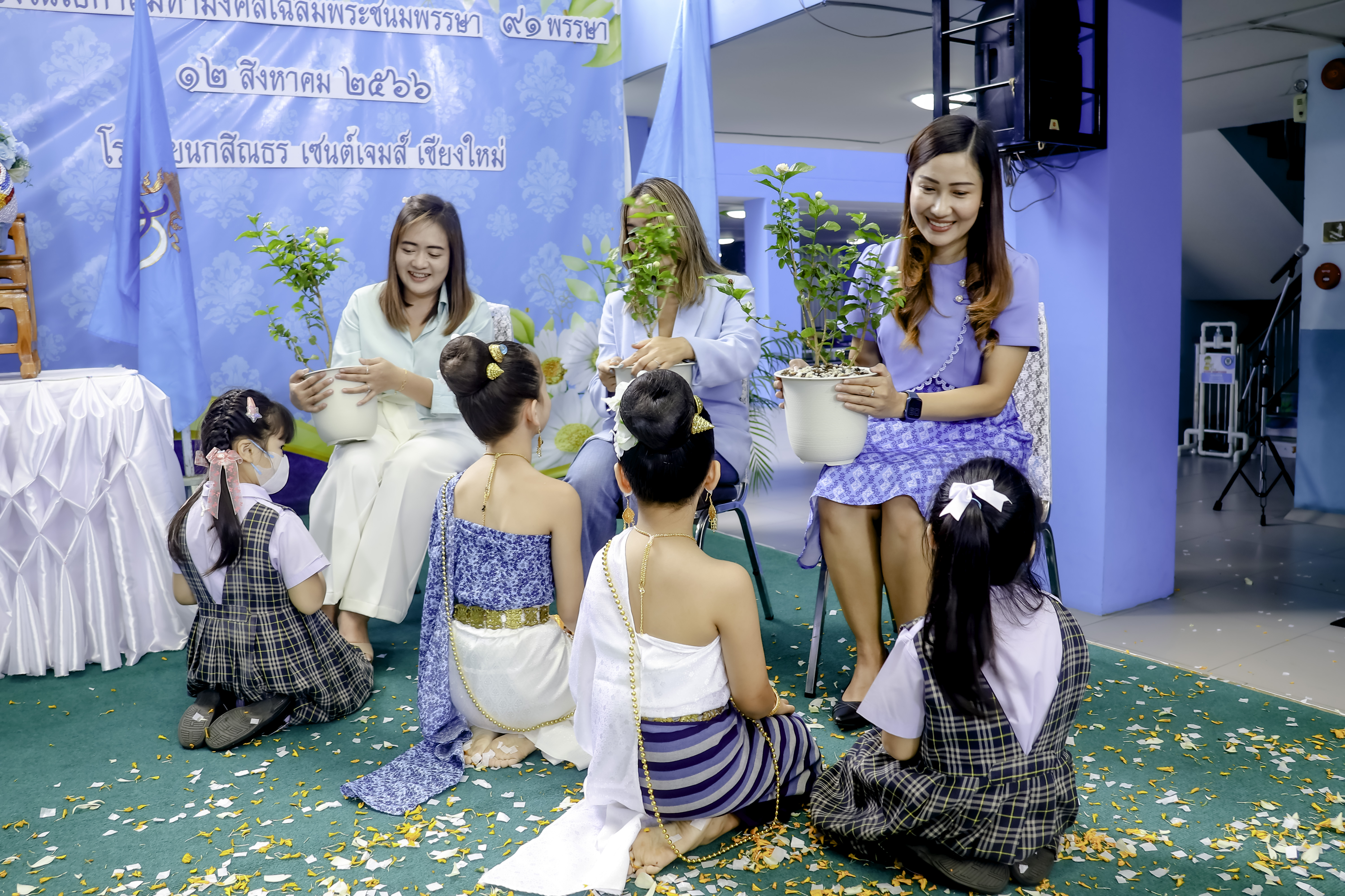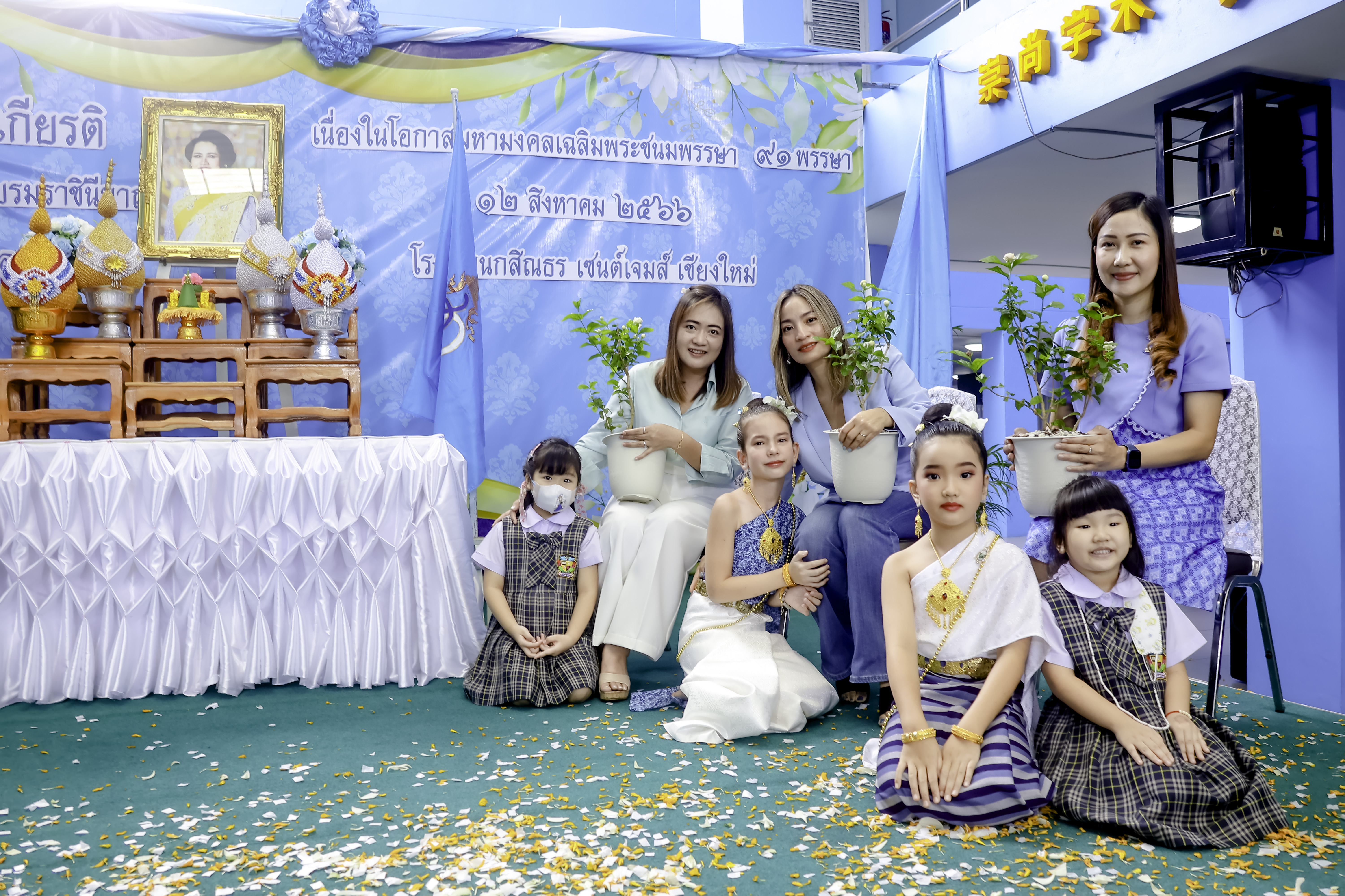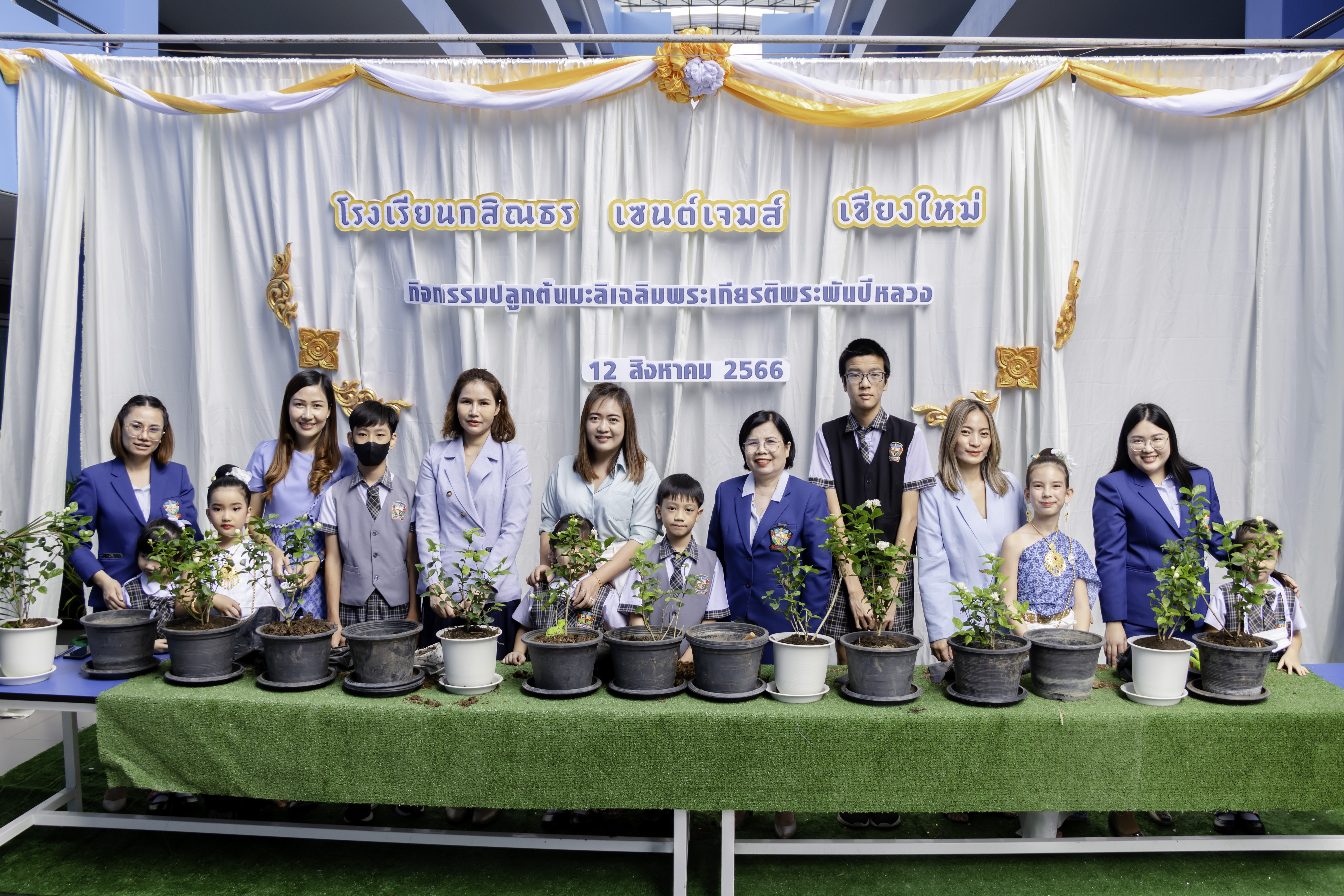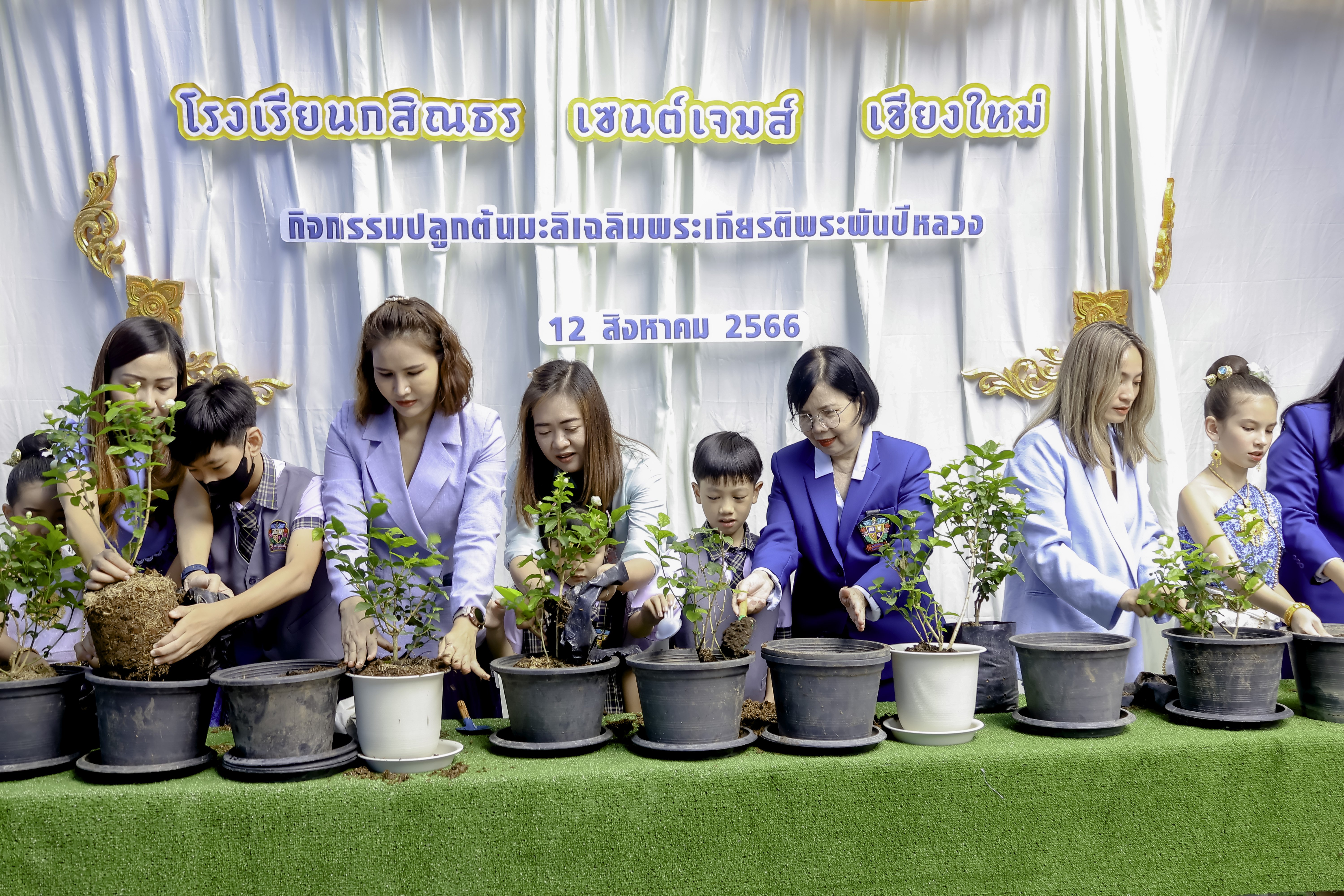 Kasintorn Saint James Chiang Mai School organized a ceremony to celebrate the auspicious occasion of the anniversary of Her Majesty Queen Sirikit, the Queen Mother's birthday, as well as National Mother's Day. In addition, there was a jasmin planting activity to allow all students to express their profound respect and gratitude for Her Majesty's dedicated royal duties for the well-being of the people.