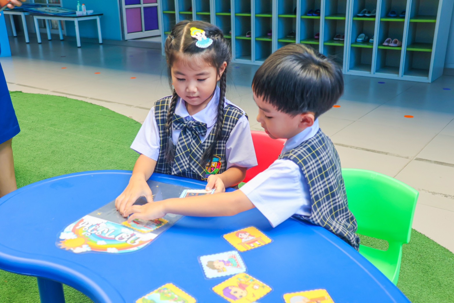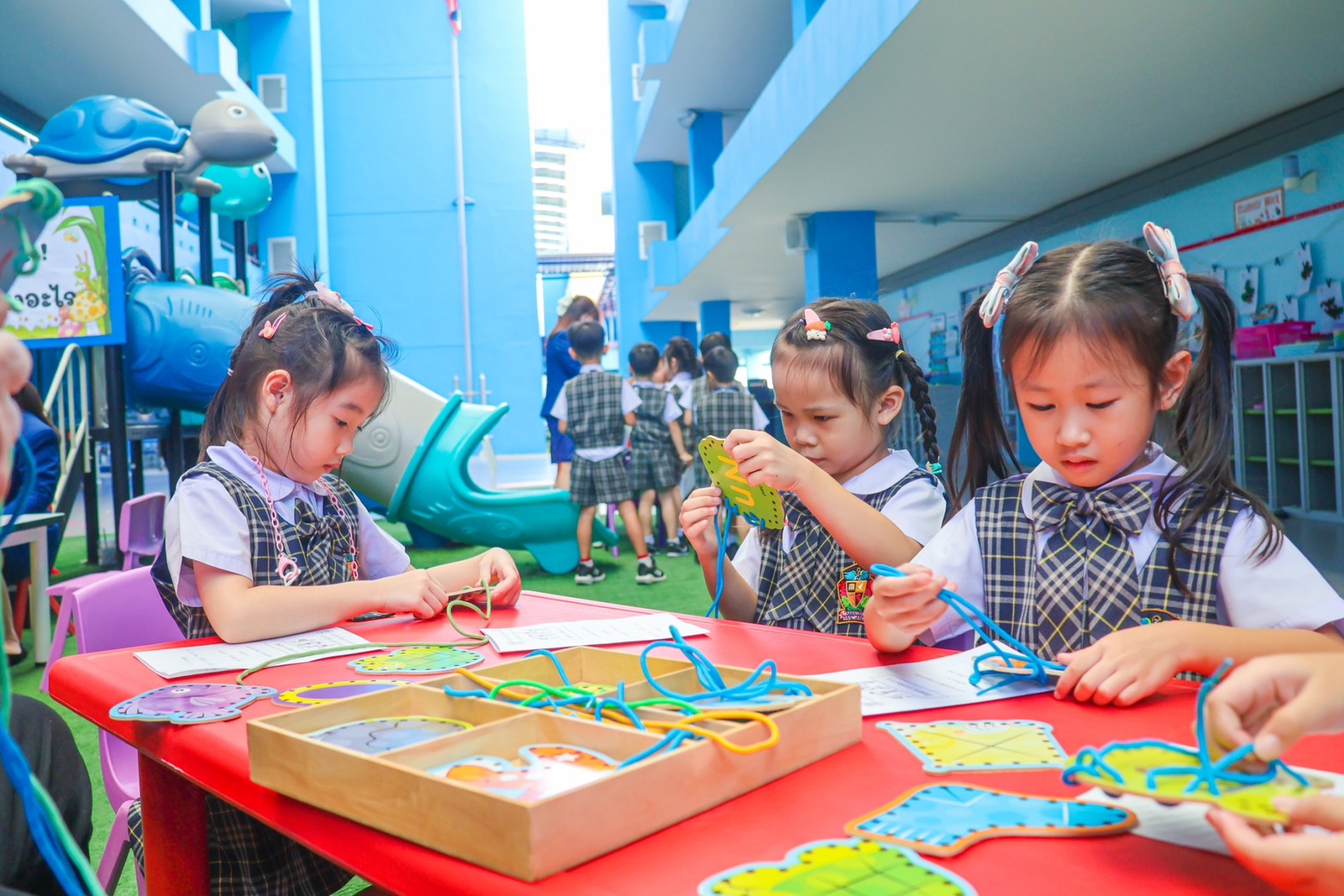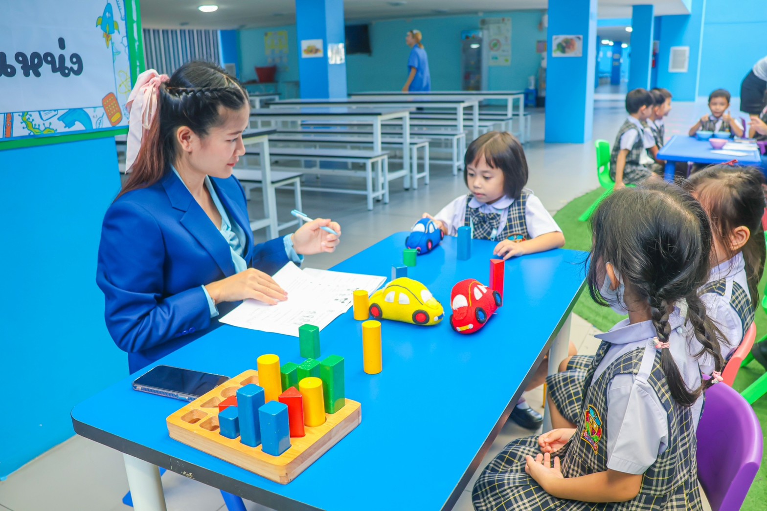 Kasintorn Saint James School Chiang Mai School conducts developmental assessments for kindergarten 3 (KG.3) children using a structured learning approach. All children participate in activities according to the designated schedule. Teachers assigned to each group individually assess the children using tools, media, and equipment suitable for their developmental stage and natural learning tendencies. The assessment of preschool development focuses on real-life evaluation, covering aspects such as overall development, knowledge, abilities, and children's efforts, with the aim of recording and collecting data on each child.