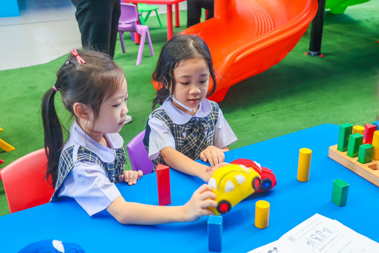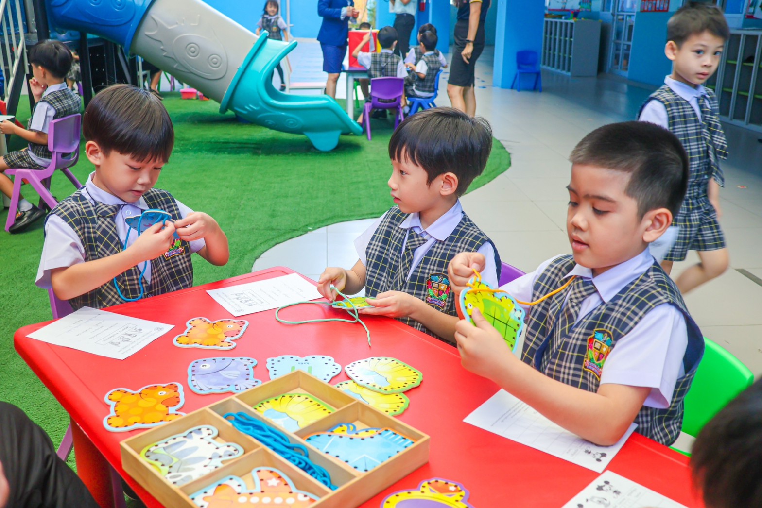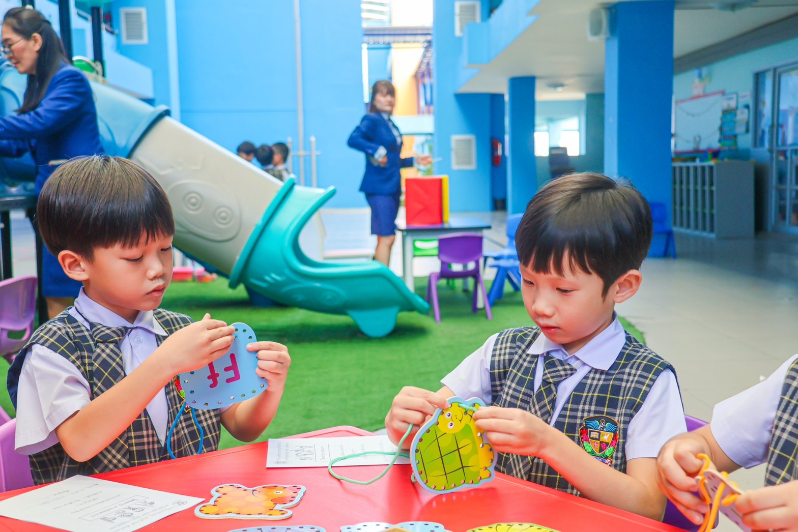 Kasintorn Saint James School Chiang Mai School conducts developmental assessments for kindergarten 3 (KG.3) children using a structured learning approach. All children participate in activities according to the designated schedule. Teachers assigned to each group individually assess the children using tools, media, and equipment suitable for their developmental stage and natural learning tendencies. The assessment of preschool development focuses on real-life evaluation, covering aspects such as overall development, knowledge, abilities, and children's efforts, with the aim of recording and collecting data on each child.