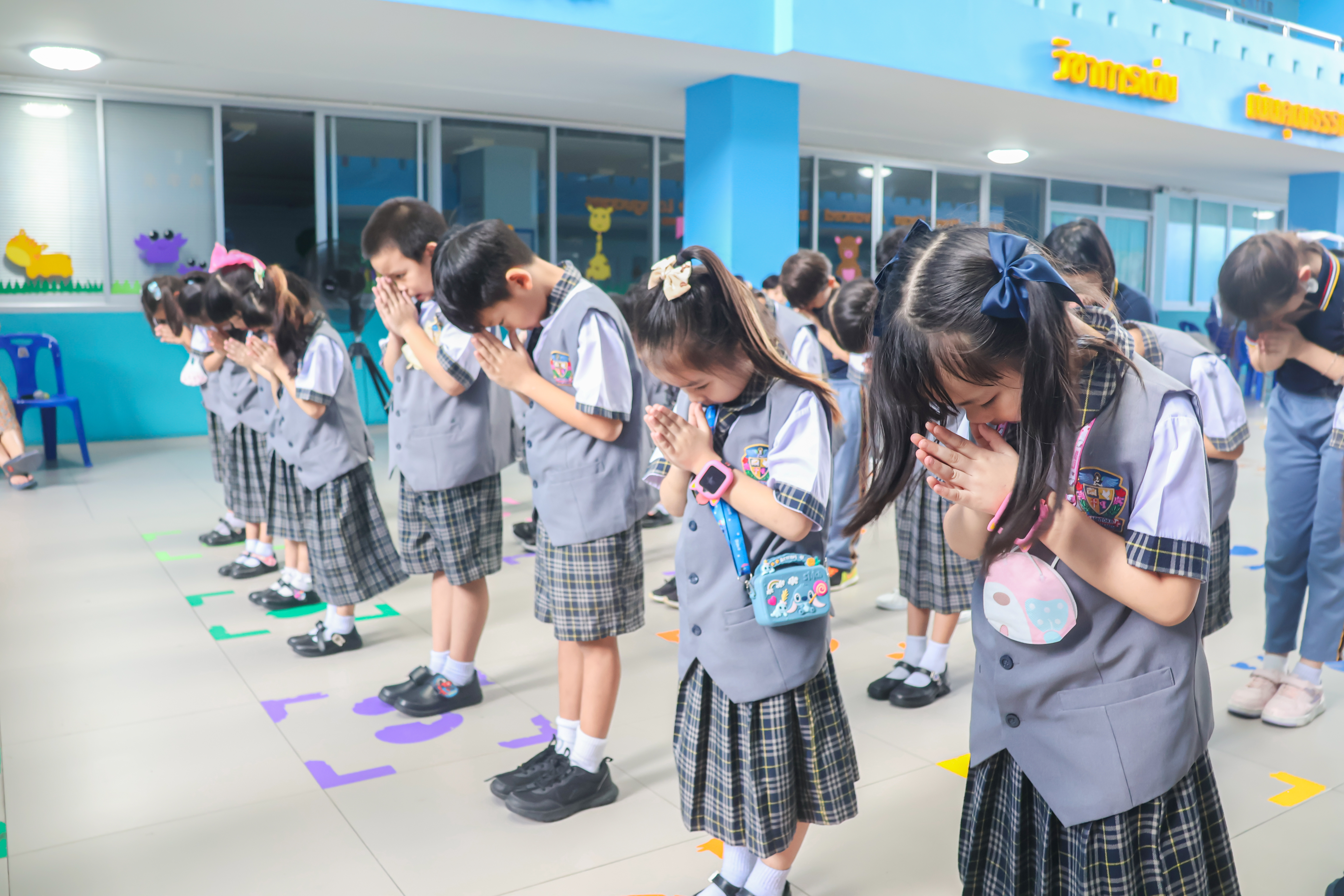 Kasintorn Saint James Chiang Mai School organized an activity to promote discipline within the school, aiming to instill proper Thai etiquette in students. This was designed based on the learning foundations to enable students to practice and apply these principles in real life.