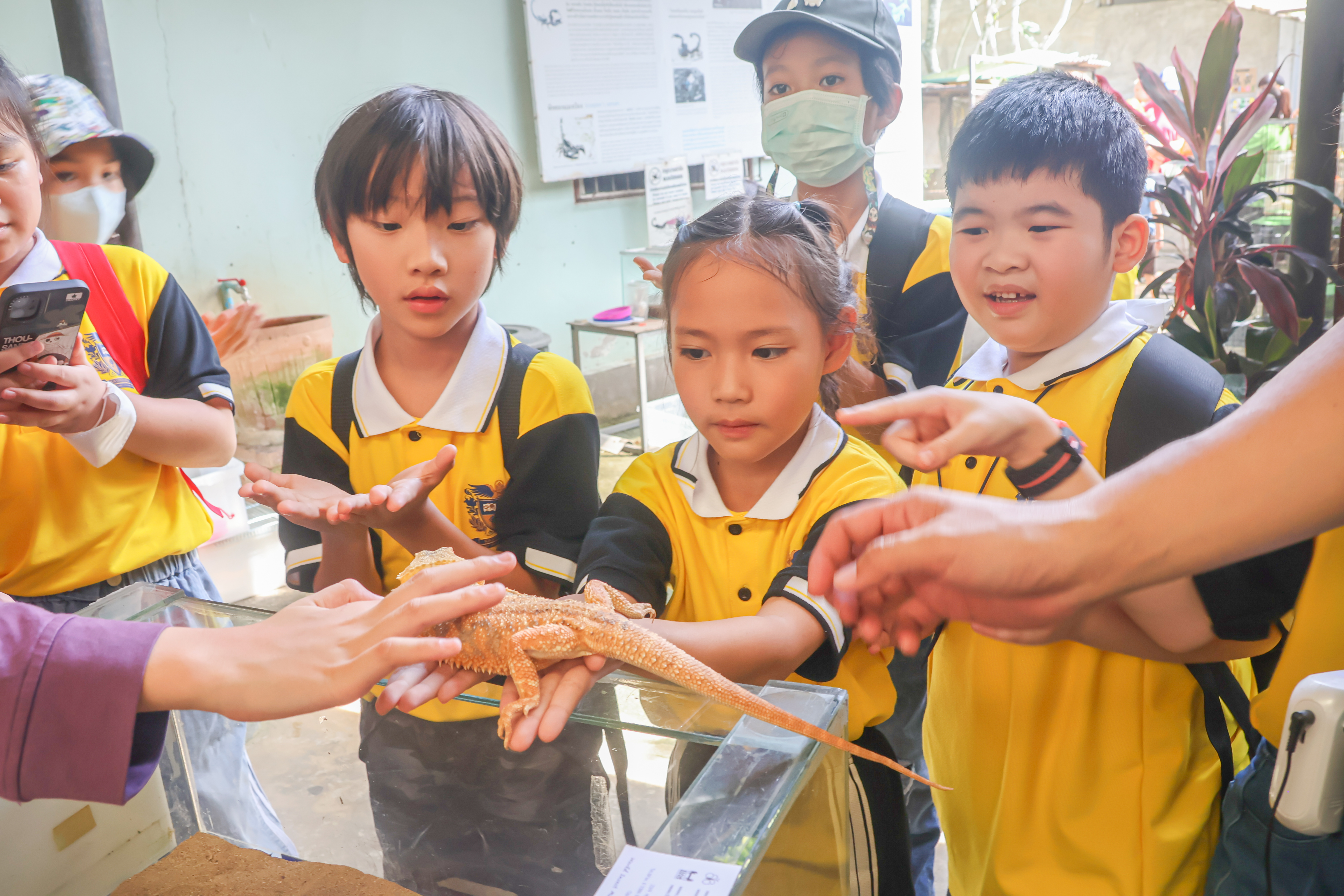 年的课外生态考察 小学一年级到六年级的学生在课外活动时间有机会接触和学习与昆虫近距离的生活,感受了泰国昆虫博物馆中可爱的氛围。