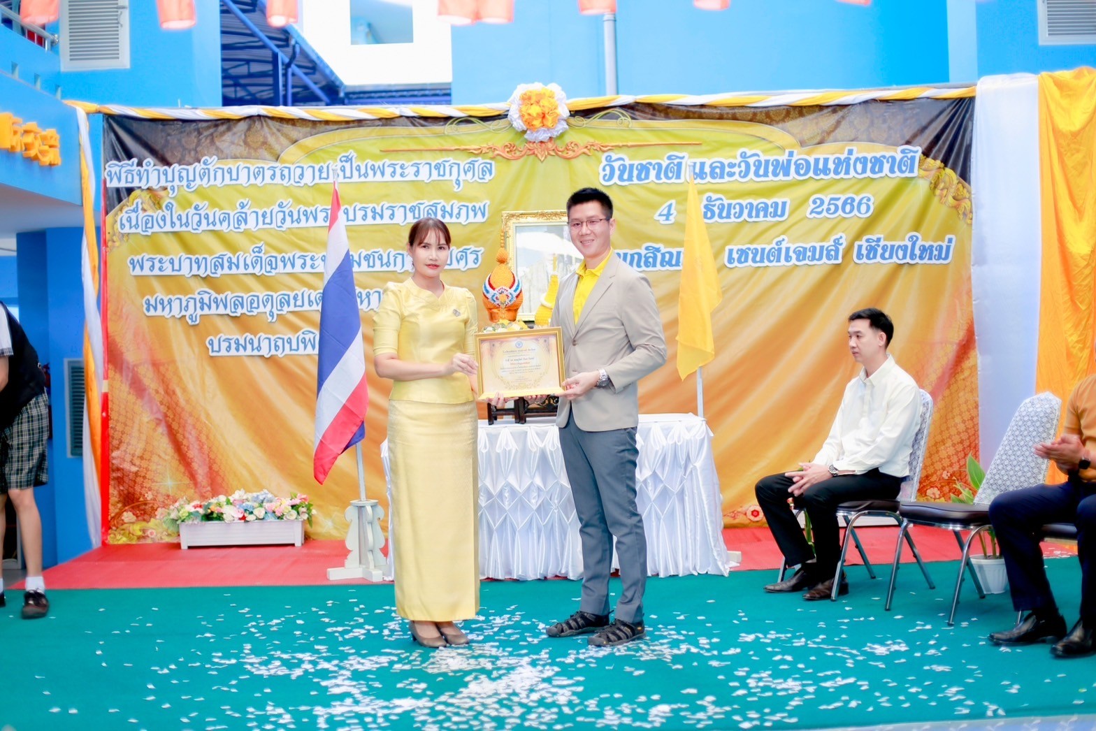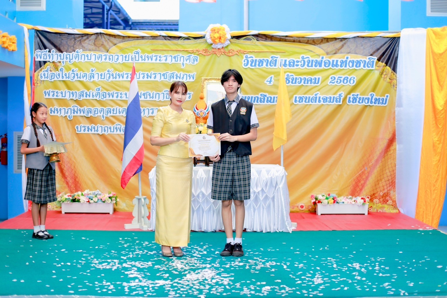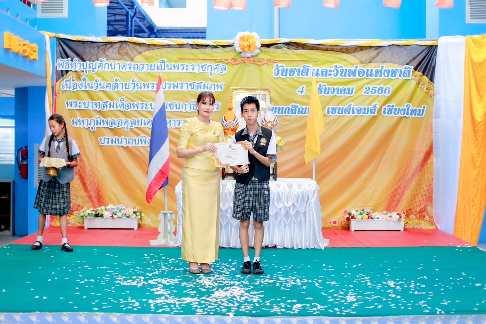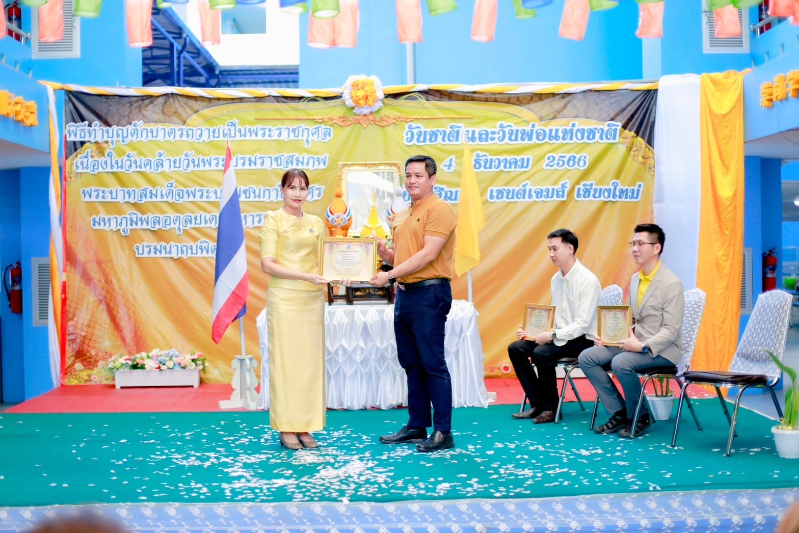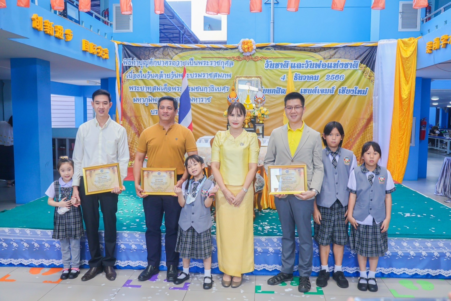 清迈圣詹姆斯学校,于泰国九世皇国王陛下的诞辰之际,举行了活动。缅怀陛下之恩泽。并为学生家长颁发了2023学年“杰出父亲”荣誉证书。