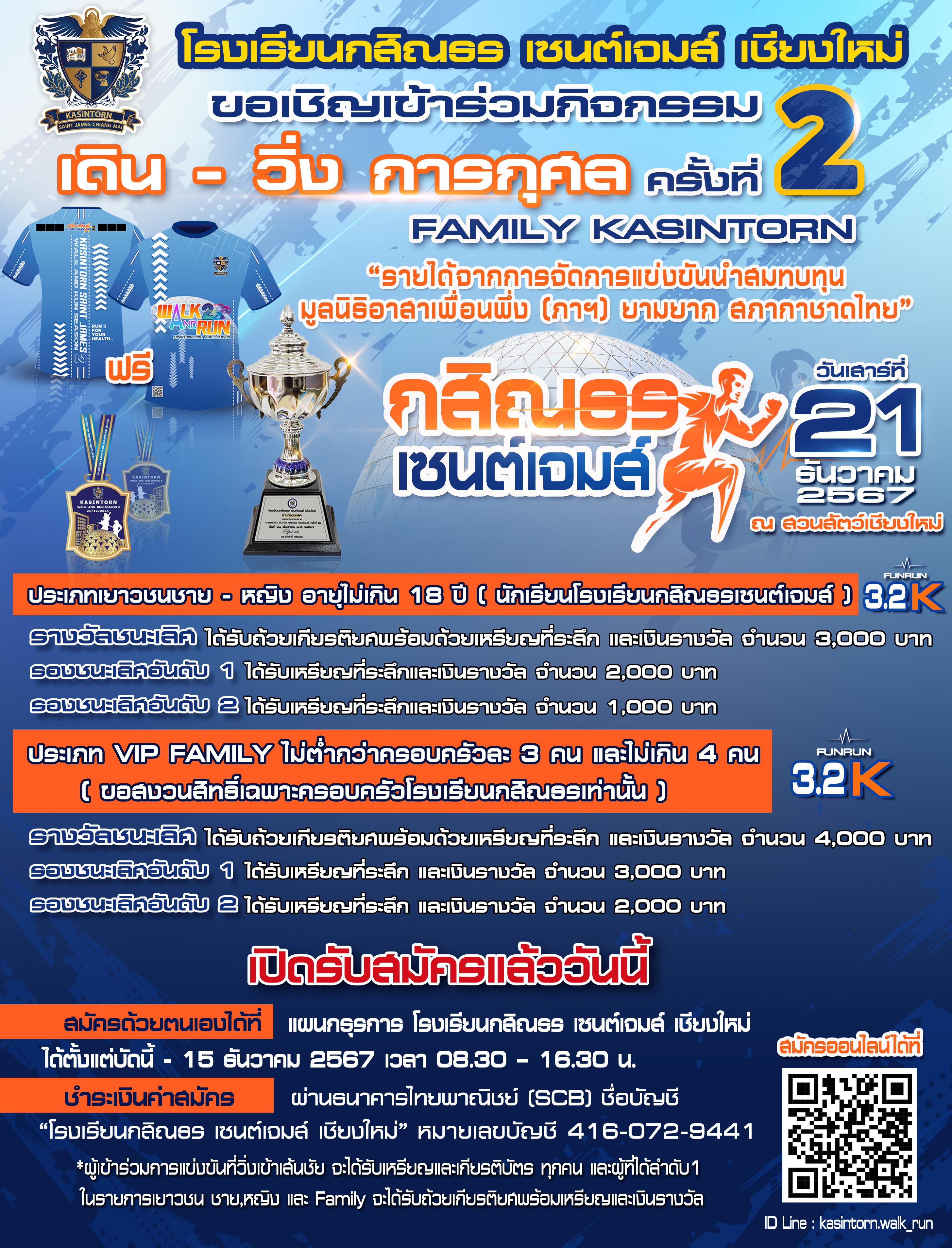 📣🏃ขอเชิญผู้ปกครองและบุคคลภายนอก ร่วมกิจกรรมเดิน-วิ่ง กสิณธร เซนต์เจมส์ ในวันเสาร์ที่ 21 ธันวาคม 2567 ณ สวนสัตว์เชียงใหม่🐯🦁🌈