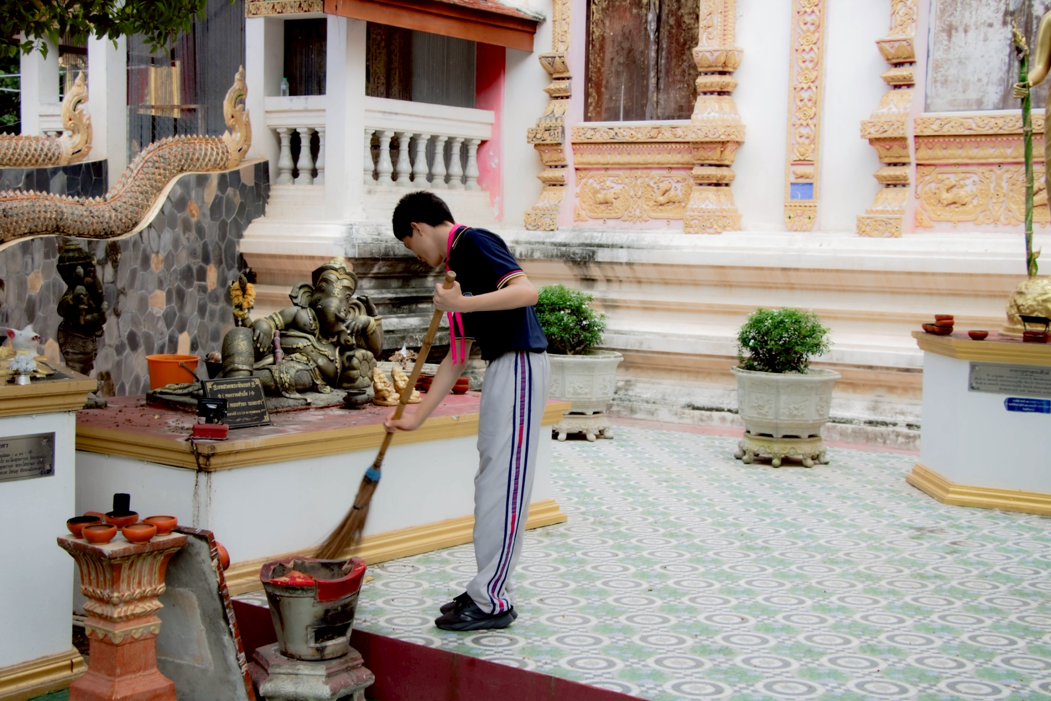 🐅Scouts, Girl Guides, and their leaders participated in community service activities both within the school premises and at outside locations, specifically at Wat Don Chai.