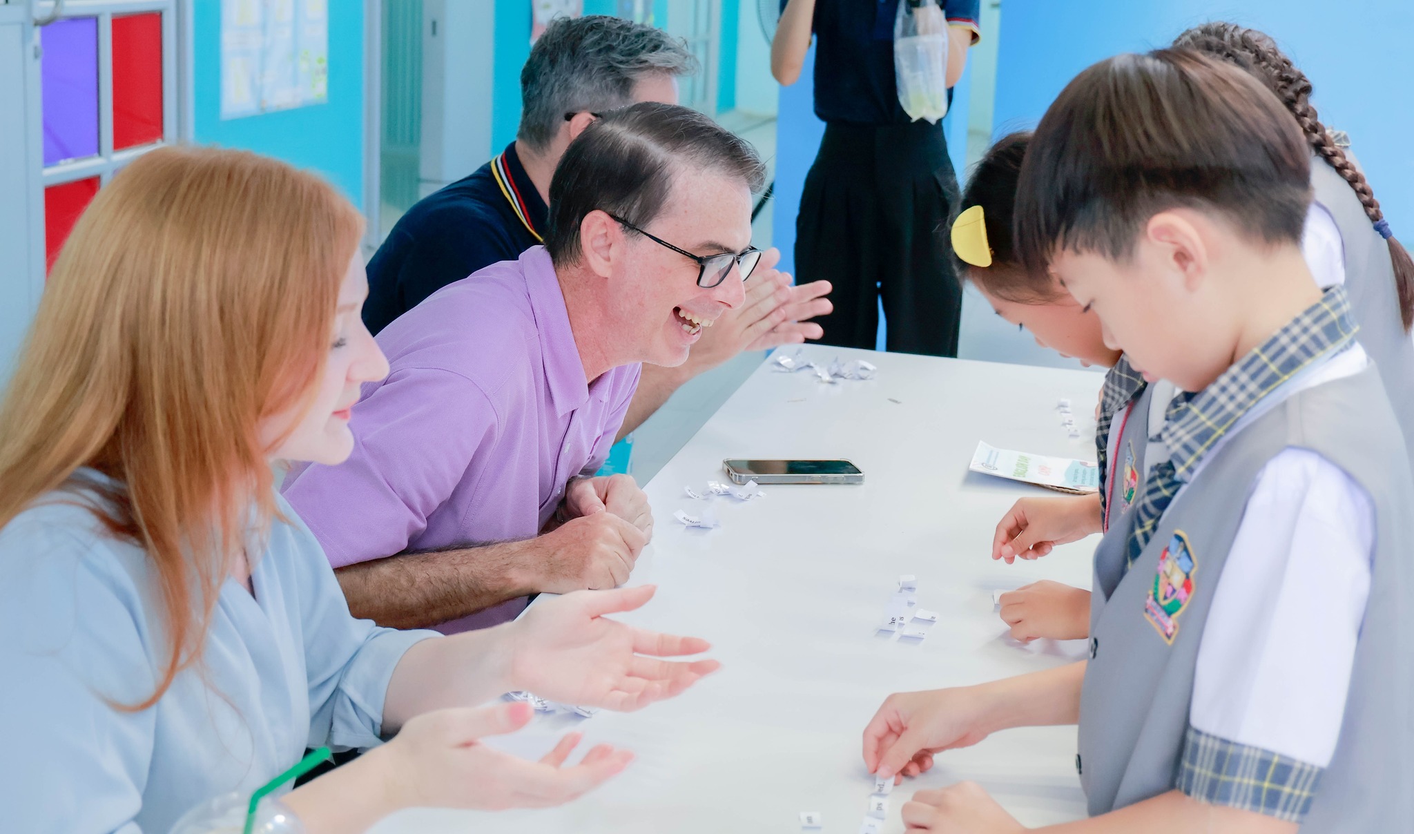 🧠💡通过这次活动,学生们获得了与母语教师认真练习和使用英语的机会,从而增强了他们的实践经验,培养了自主学习新知识的技能,并进一步提升了自身能力。学生们在不同的活动站中学习和使用英语,这些活动站包括: