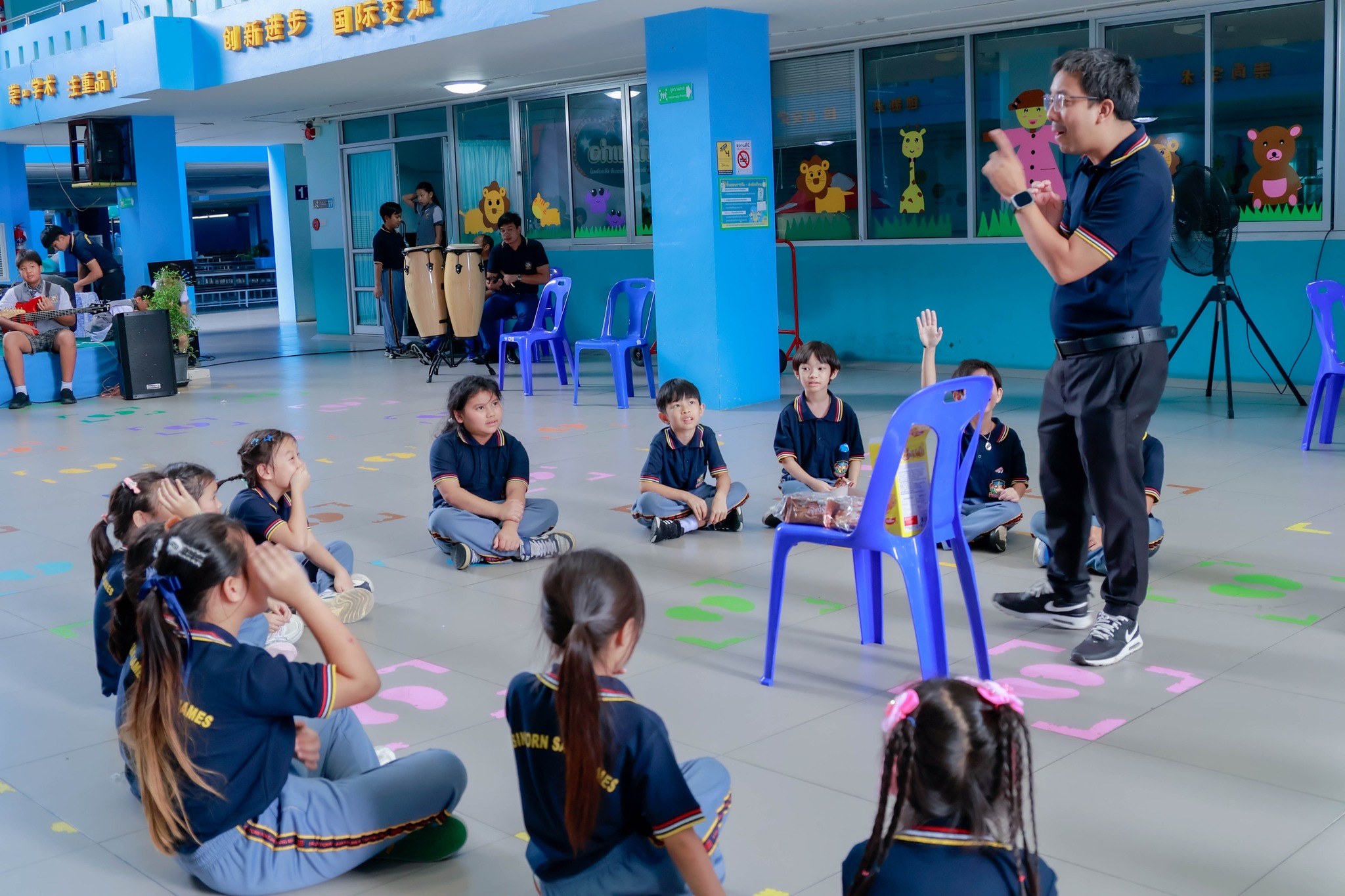 🧠💡เพื่อพัฒนาศักยภาพนักเรียนสร้างโอกาสให้นักเรียนได้ฝึกฝนและใช้ภาษาอังกฤษกับครูเจ้าของภาษาอย่างจริงจัง ซึ่งถือเป็นการสร้างเสริมประสบการณ์ไปพร้อมกับมีทักษะในการแสวงหาความรู้ใหม่ๆด้วยตนเอง อีกทั้งเพิ่มพูนทักษะความสามารถให้ดียิ่งขึ้น โดยนักเรียนได้เรียนรู้และใช้ทักษะภาษาอังกฤษผ่านการเข้าฐานกิจกรรมเรียนรู้ต่างๆ อาทิเช่น🏃♀️💨 PLAY AND LEARN , 🌀TWISTER , 🧱WORD STACK CHALLENGE , 🏁RACE และภาษาจีนหรรษา ภายในฐานกิจกรรมนักเรียนได้ฝึกทักษะการพูด การฟัง การอ่าน การเขียนภาษาอังกฤษ อีกด้วยค่ะ🥳👍