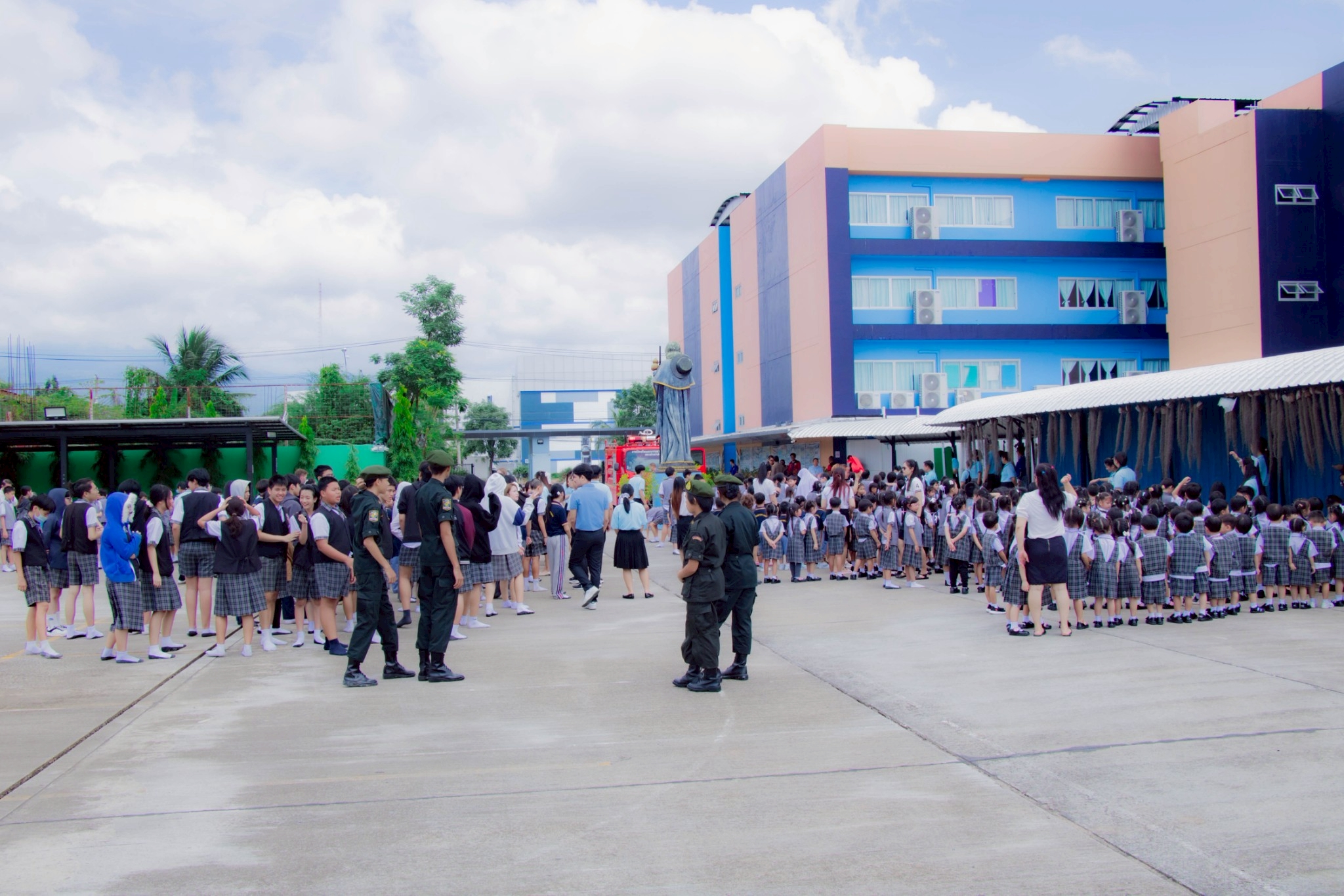 泰国清迈卡辛通圣詹姆斯学校举办了一场防灾演习🚨,该活动获得了Pa Daet 街道办事处🏘️、清迈府警察局交通科🚓以及清迈本田安全驾驶培训中心🏍️的大力支持。 此次演习旨在帮助学校的学生、教师和员工了解灾害发生的原因🧯、掌握基本的防灾工具和设备的使用方法,以及熟悉灾害发生时,安全撤离建筑物的路线🏃♀️。