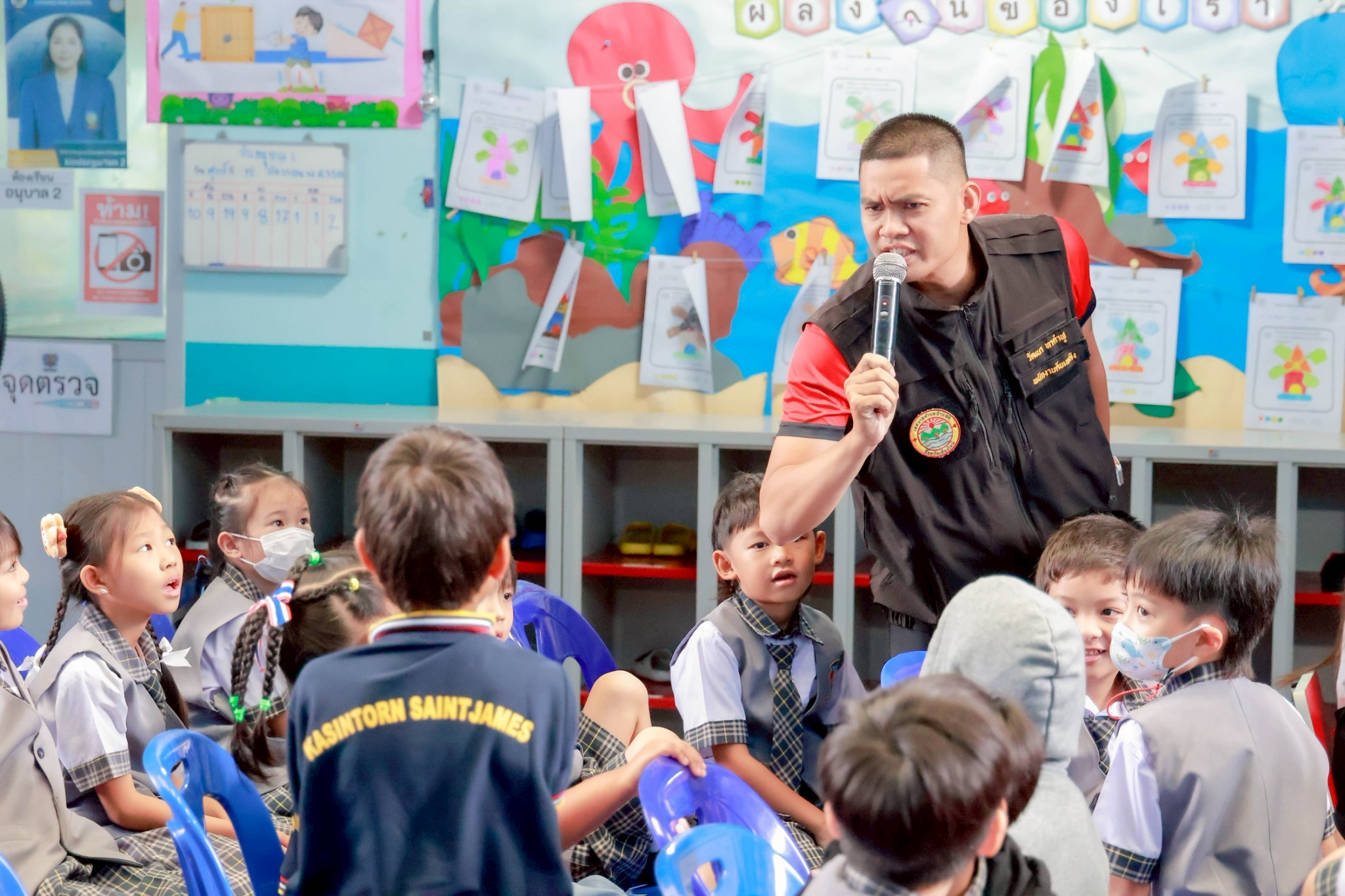 Kasintorn Saint James Chiang Mai School, in collaboration with the Pa Daet Subdistrict Municipality, the Chiang Mai Provincial Police Traffic Division, and the Honda Safe Driving Center Chiang Mai, has organized an emergency response drill. The objective is to educate students, teachers, and staff about the causes of accidents, equip them with basic prevention techniques using various tools and equipment, and familiarize them with safe evacuation routes from buildings during an emergency.🏃♀️