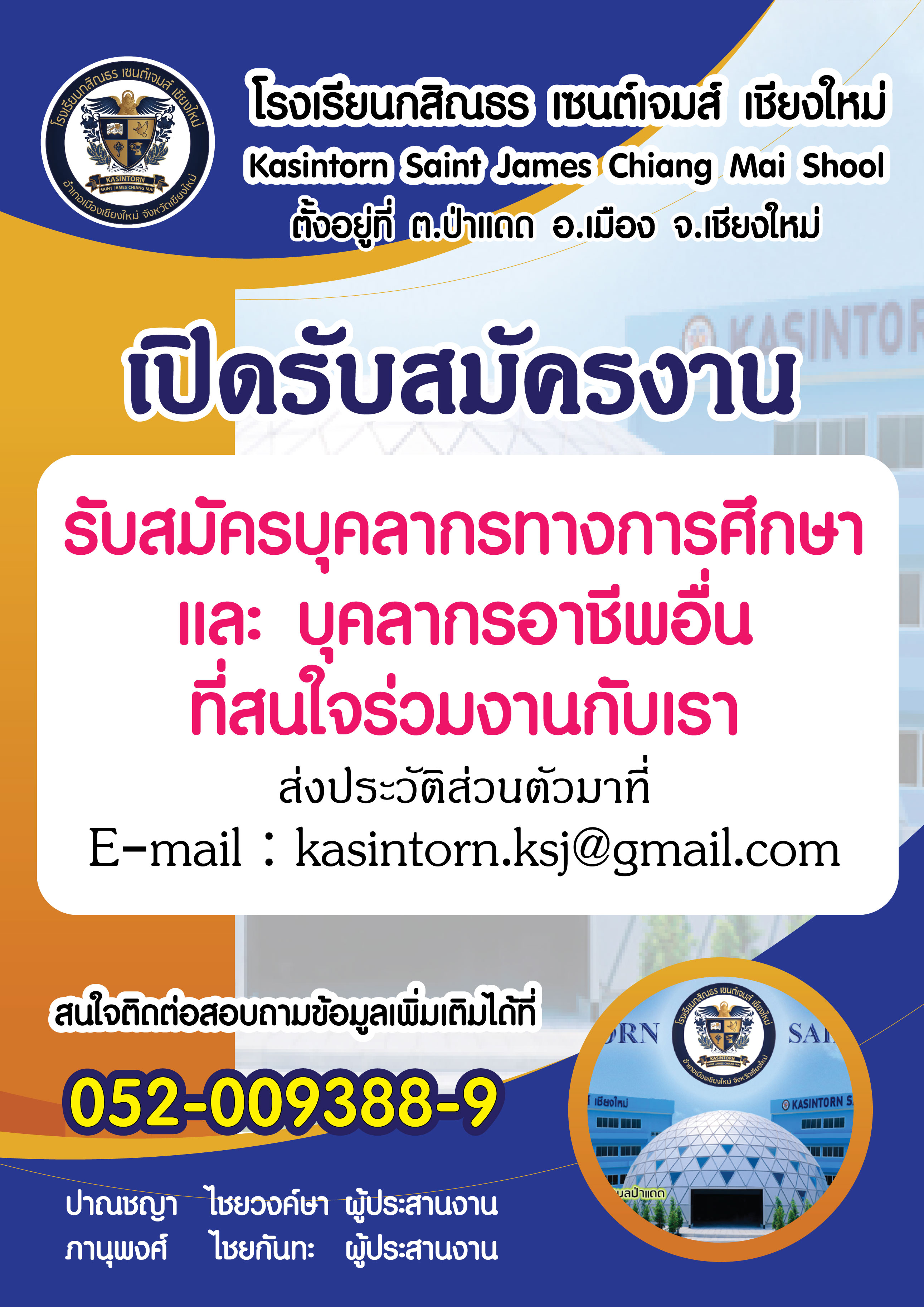 สมัครได้ที่ โรงเรียนกสิณธร เซนต์เจมส์ เชียงใหม่ เลขที่ 88/88 หมู่ 7